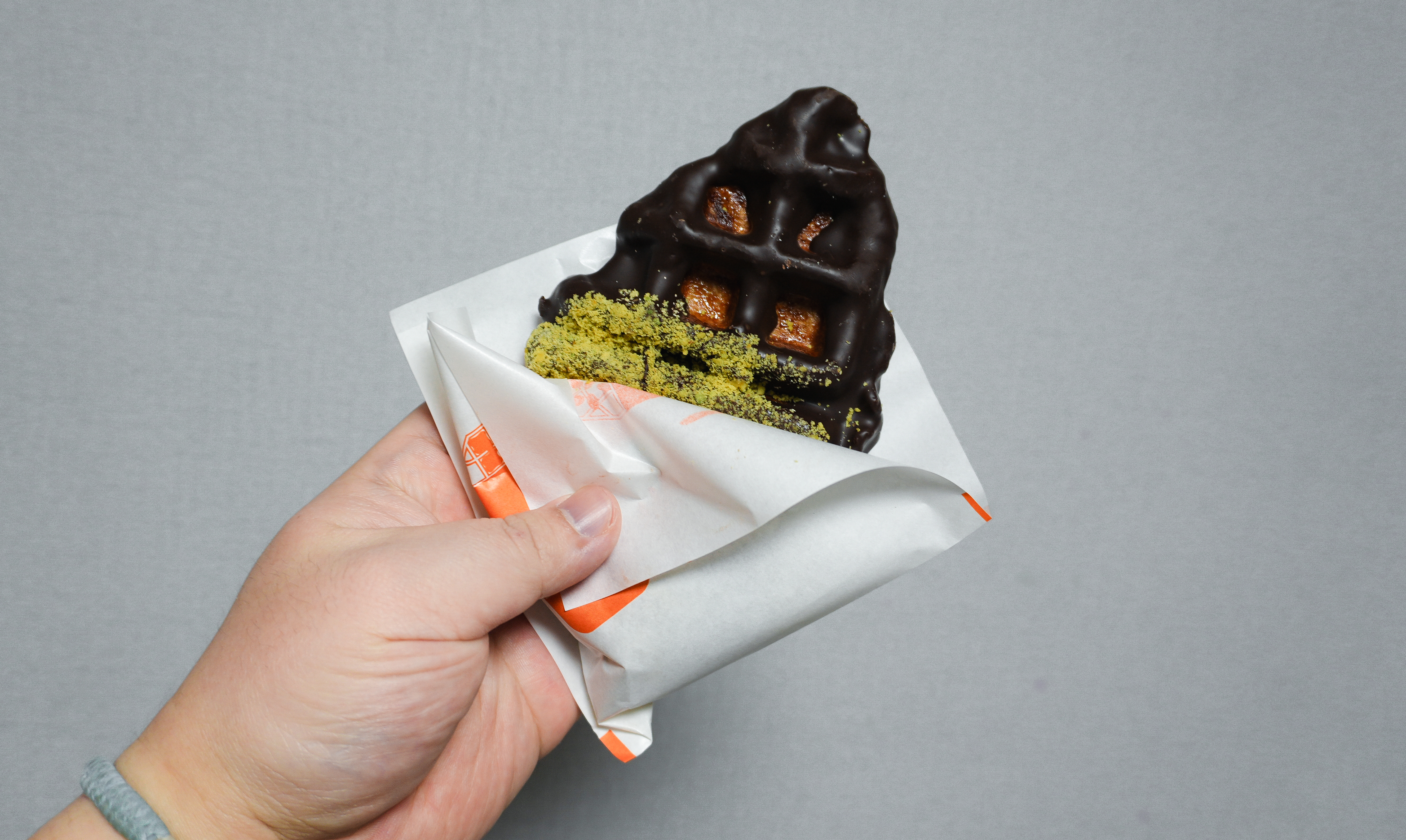 와플샵의 와플과 크로플은 16가지 종류나 되어서 고민이 많이 되곤 하는데, 저는 와플샵에서 가장 많이 팔리는 제품들을 먹어보았습니다. 크로플은 종종 먹어보긴 했는데, 와플샵의 크로플은 처음 먹어봅니다. 와플샵의 크로플은 전체적으로 두께감이 있었고, 겉은 바삭하고 속은 촉촉한 느낌의 디저트였습니다.