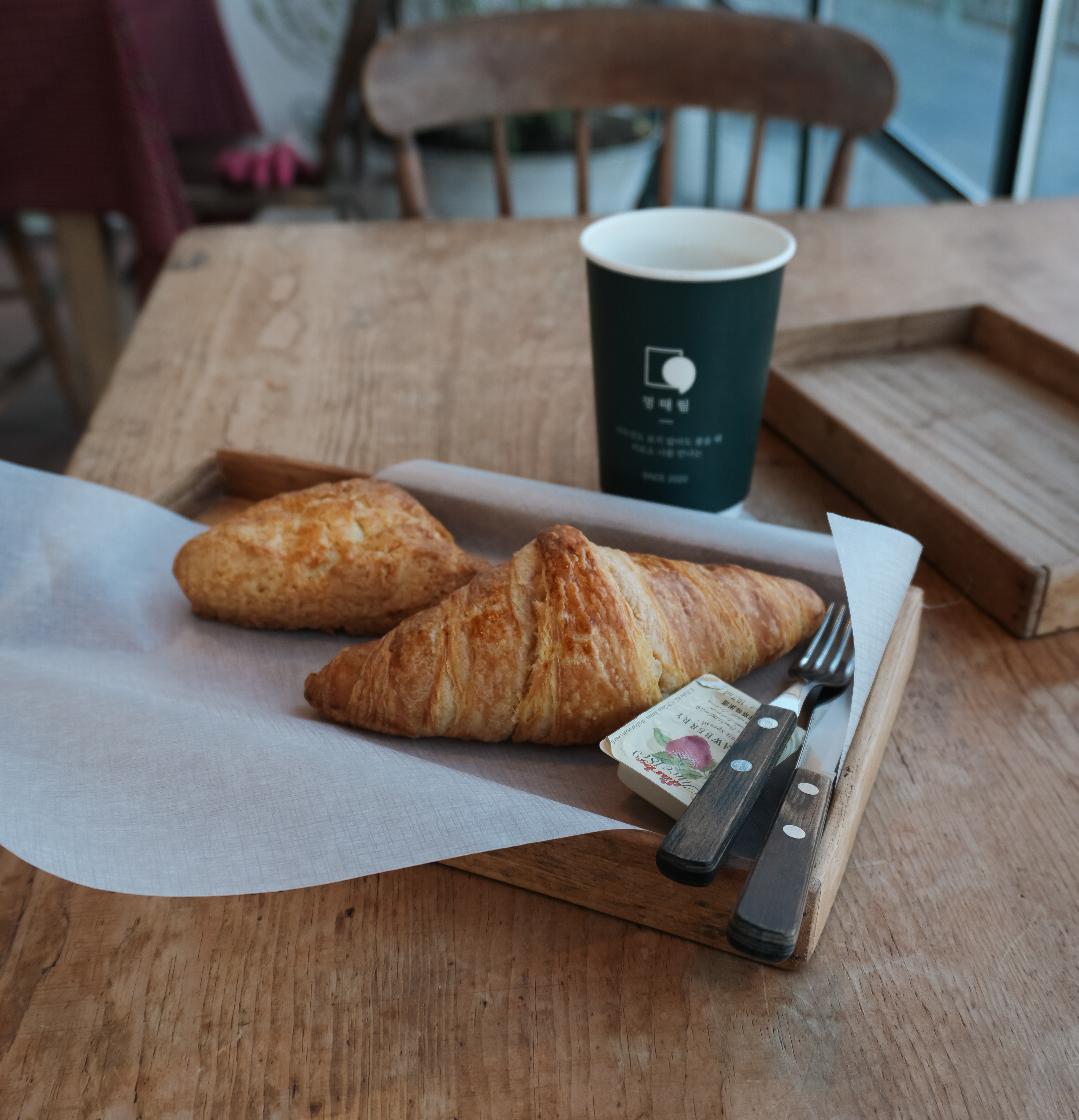 저는 일단 아메리카노와 스콘, 크로와상 주문하고 카페 이곳저곳 사진 찍을만한 스팟을 둘러보았습니다. 멍때림 방문을 계획하고 계신 분들이 있을 수 있으니 공간별로 나누어 소개해드리는 것이 좋을 것 같습니다.