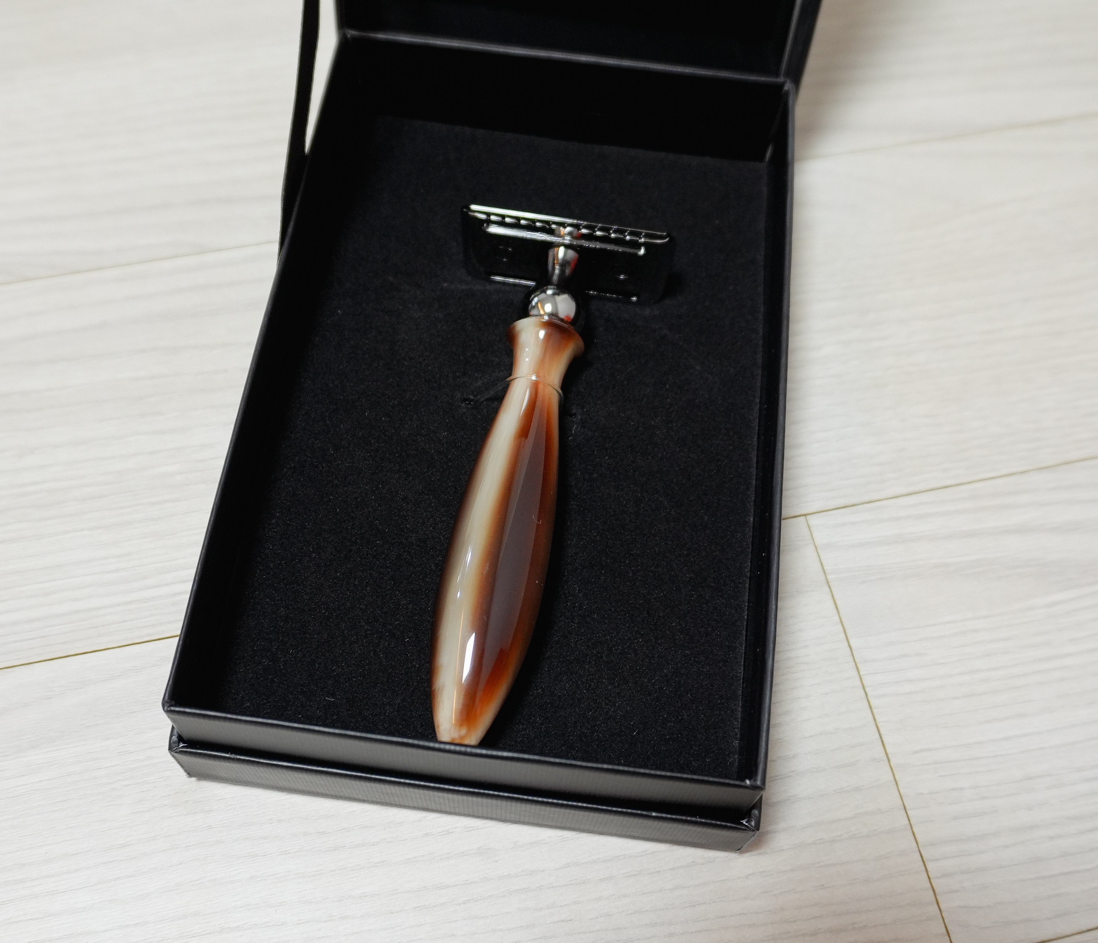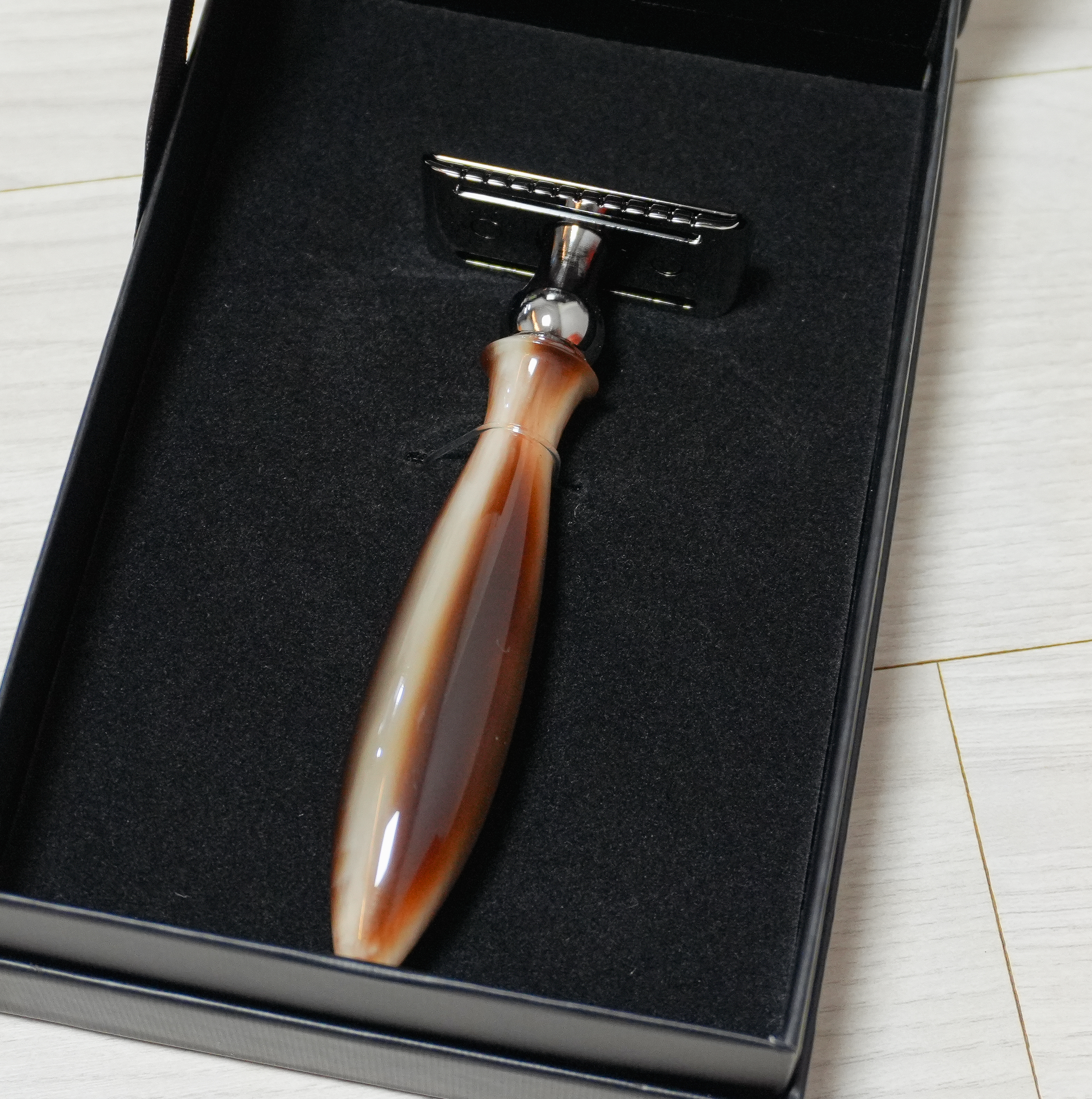 제가 이번에 소개해드릴 프리미엄 OX 모델물소뿔에서 영감을 받아 제작되었는데, 하이레진으로 핸드메이드 제작한 차별화된 디자인의 면도기입니다. 특히 중점적으로 소개해드리고 싶은 부분이 있다면, 이전에 사용하던 바르베로의 면도기들도 좋았지만,