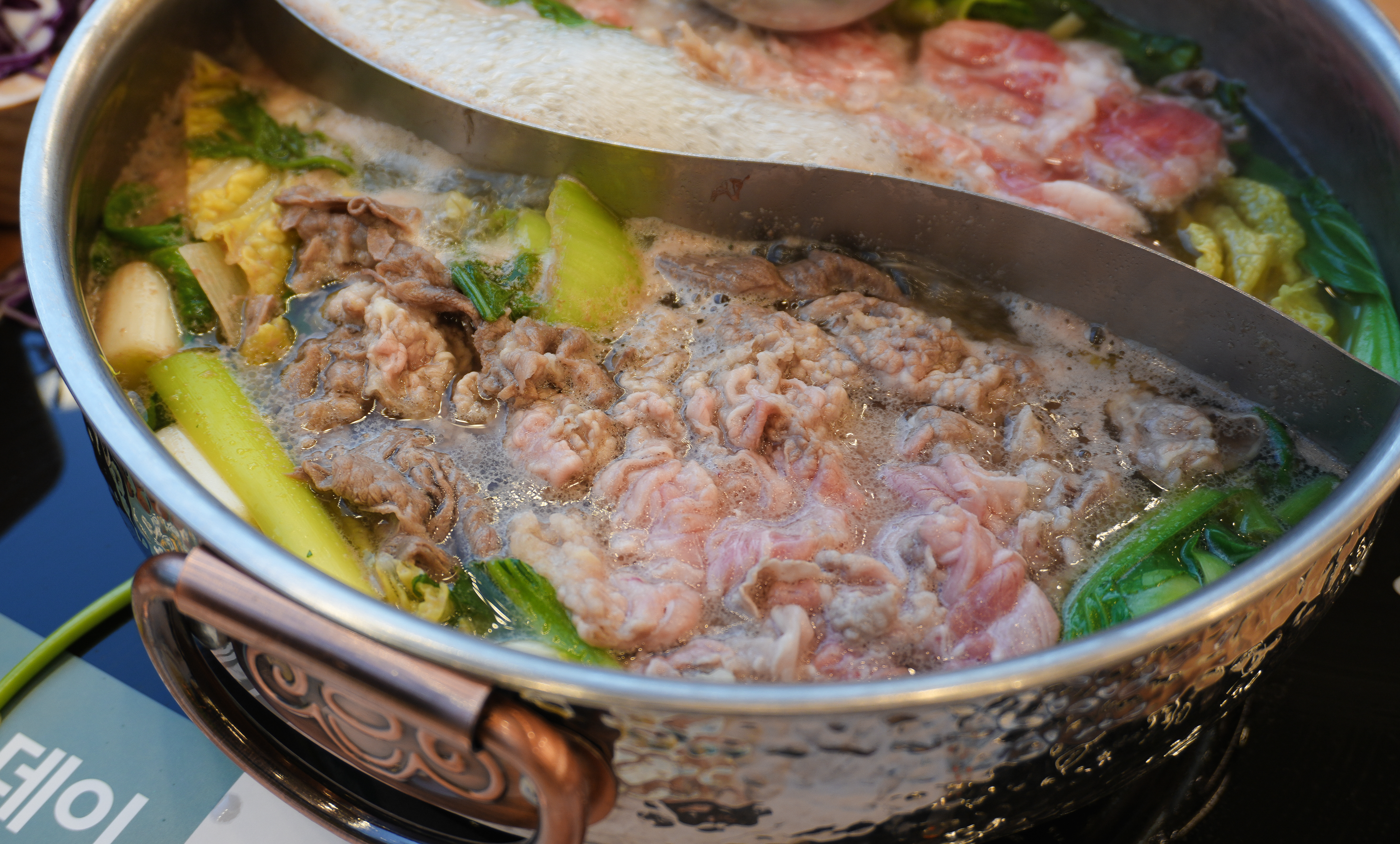 가져온 목심, 양지, 설도와 채소들을 끓고있는 양지육수에 넣어서 먹었습니다. 솔직히 샤브샤브 자체만 놓고보면 저는 개인적으로 '샤브20(링크)'이 좀 더 낫지 싶은데, 아무래도 새로 생긴 프랜차이즈라서 깔끔한 분위기는 샤브올데이가 압도적으로 좋았습니다.