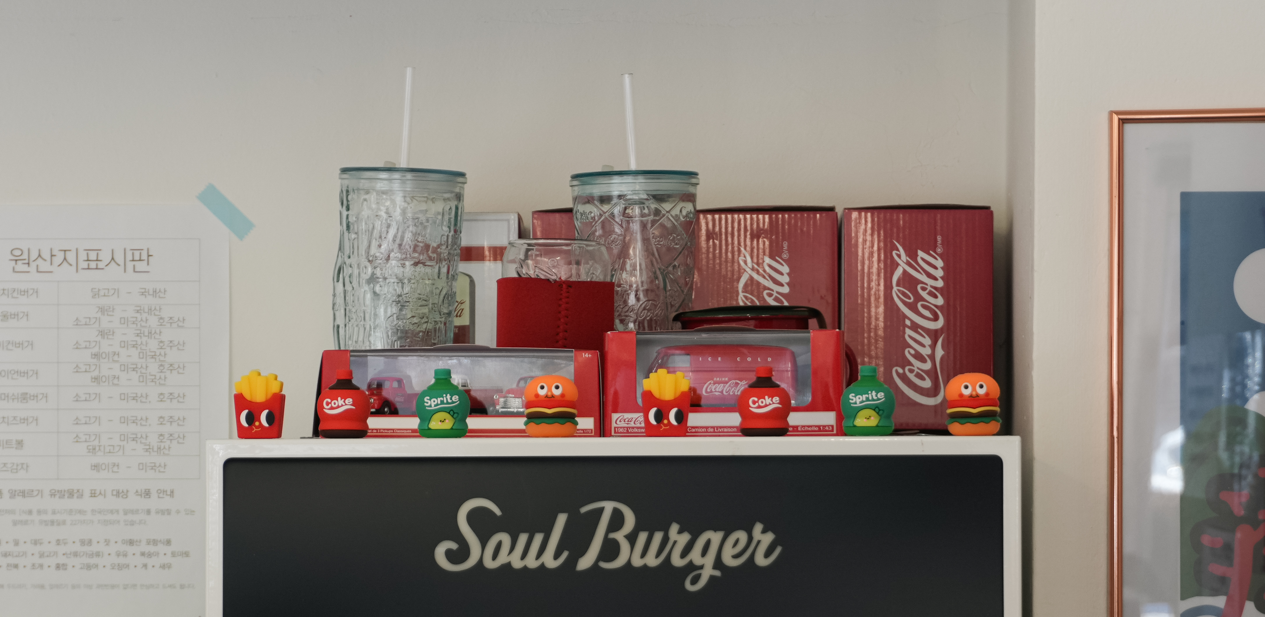 강화도 소울버거 매장의 분위기는 신규 매장이라 그런 건지 전체적으로 깔끔한 느낌이었고, 사장님이 코카콜라를 좋아하시는지 코카콜라에 관련된 상품들이 곳곳에 진열된 모습을 볼 수 있었습니다.