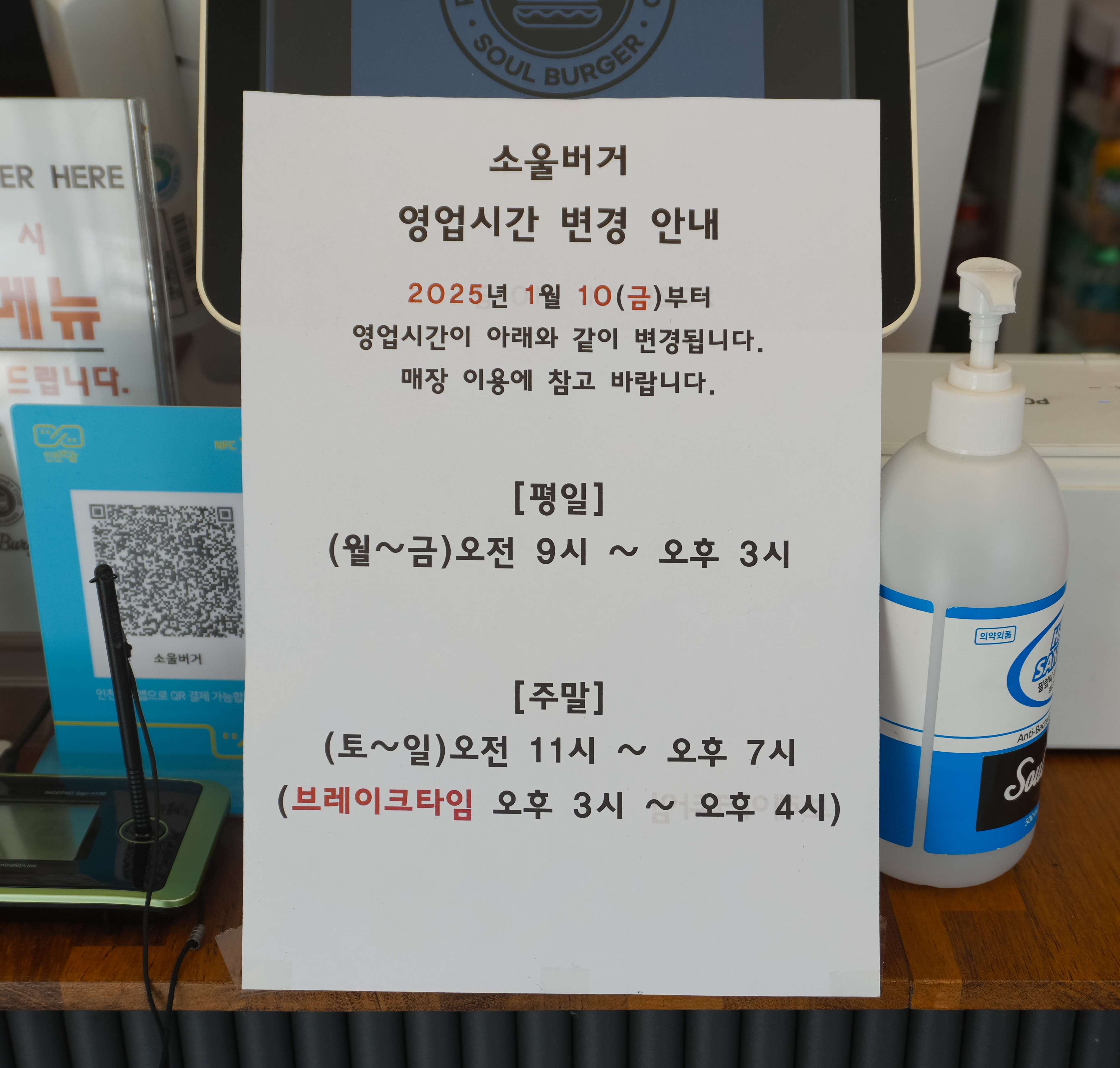 소울버거의 위치는 인천 강화군 강화읍 국화리 190-23, 1층에 위치한 가게입니다. 강화 소울버거의 영업시간은 평일 09:00~15:00 까지이며, 주말 11:00~19:00 까지였습니다. 주말의 경우 15:00~16:00 까지는 브레이크타임이라고 합니다.