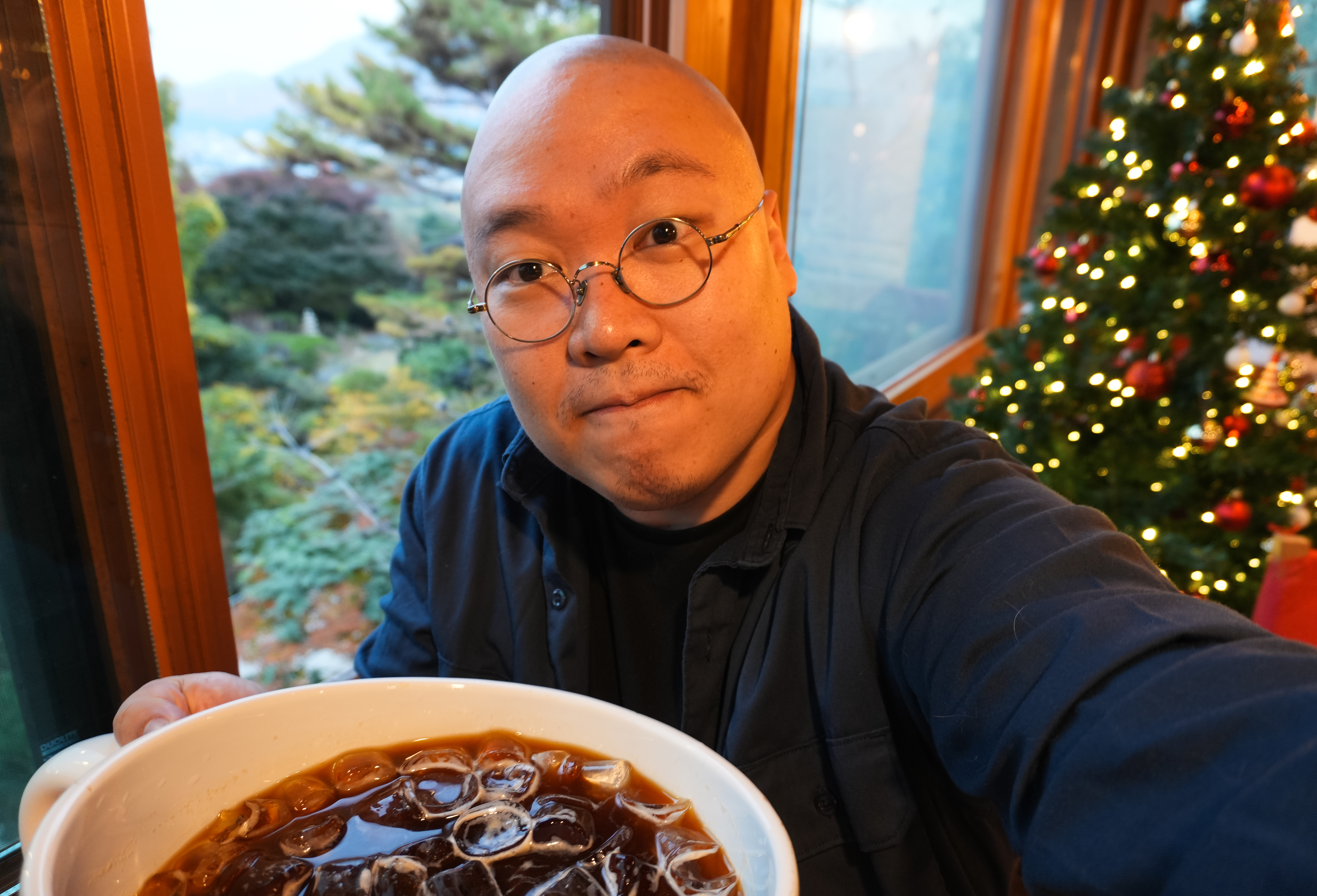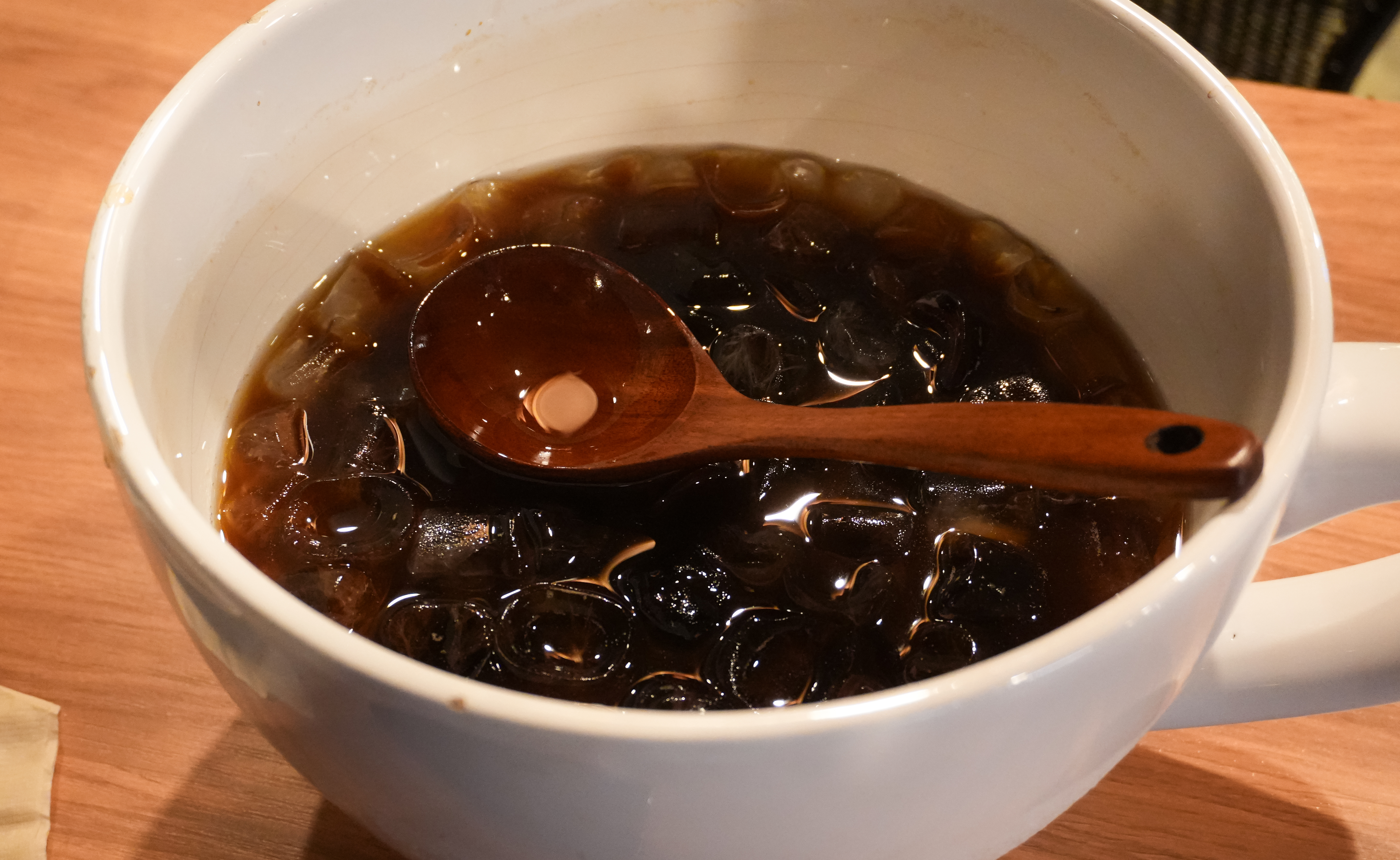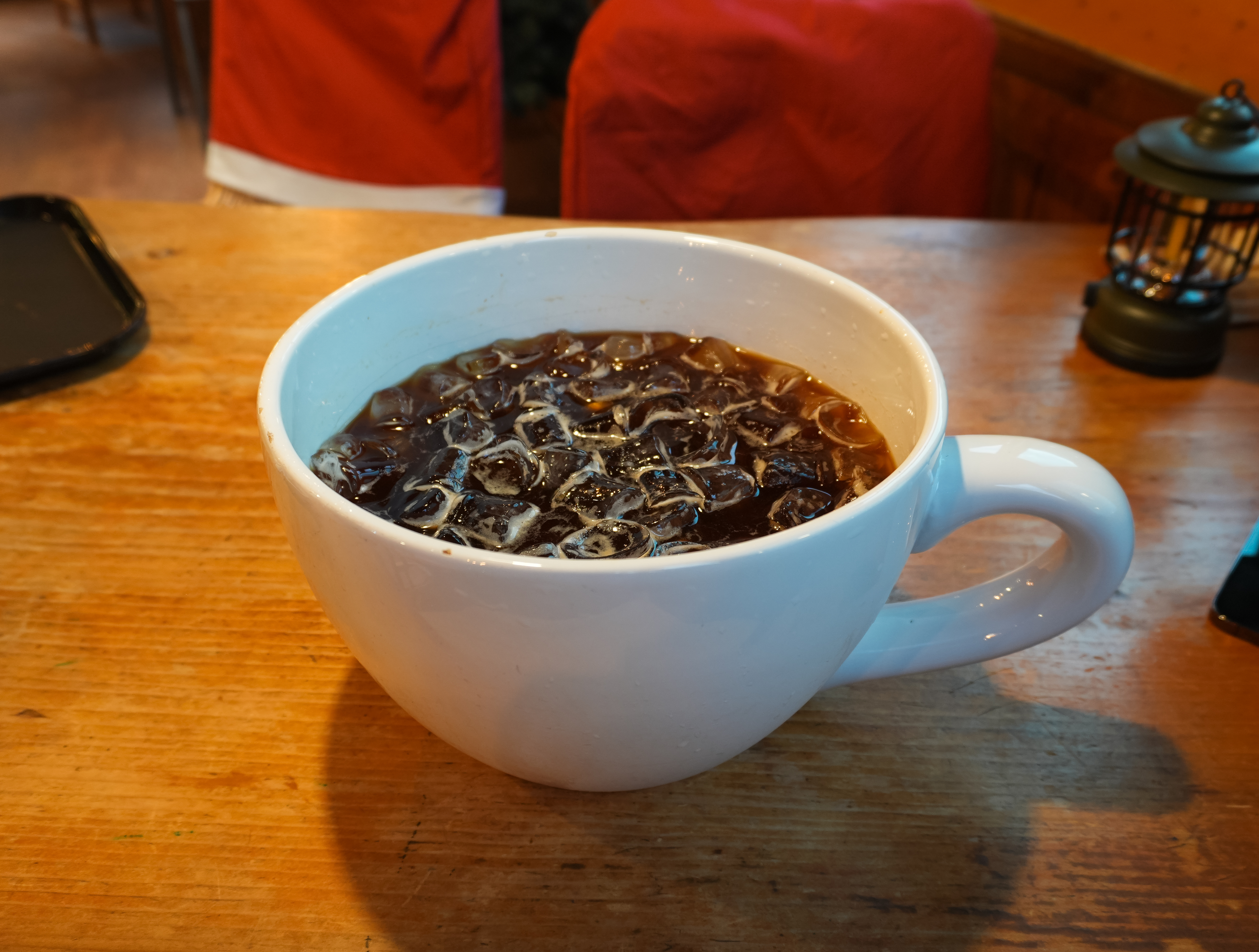 물론 한 손으로도 들어봤는데, 거의 젖 먹던 힘까지 쥐어짜서 들어야 했습니다. 물론 큰 컵 자체로 마셔도 되겠지만(?) 따로 잔을 주셔서, 인증샷만 찍고 작은 잔에다 덜어 마셨습니다. 얼음이 들어가 녹으니까 마셔도 마셔도 줄지를 않는 마법 같은(?) 일이 발생했죠.