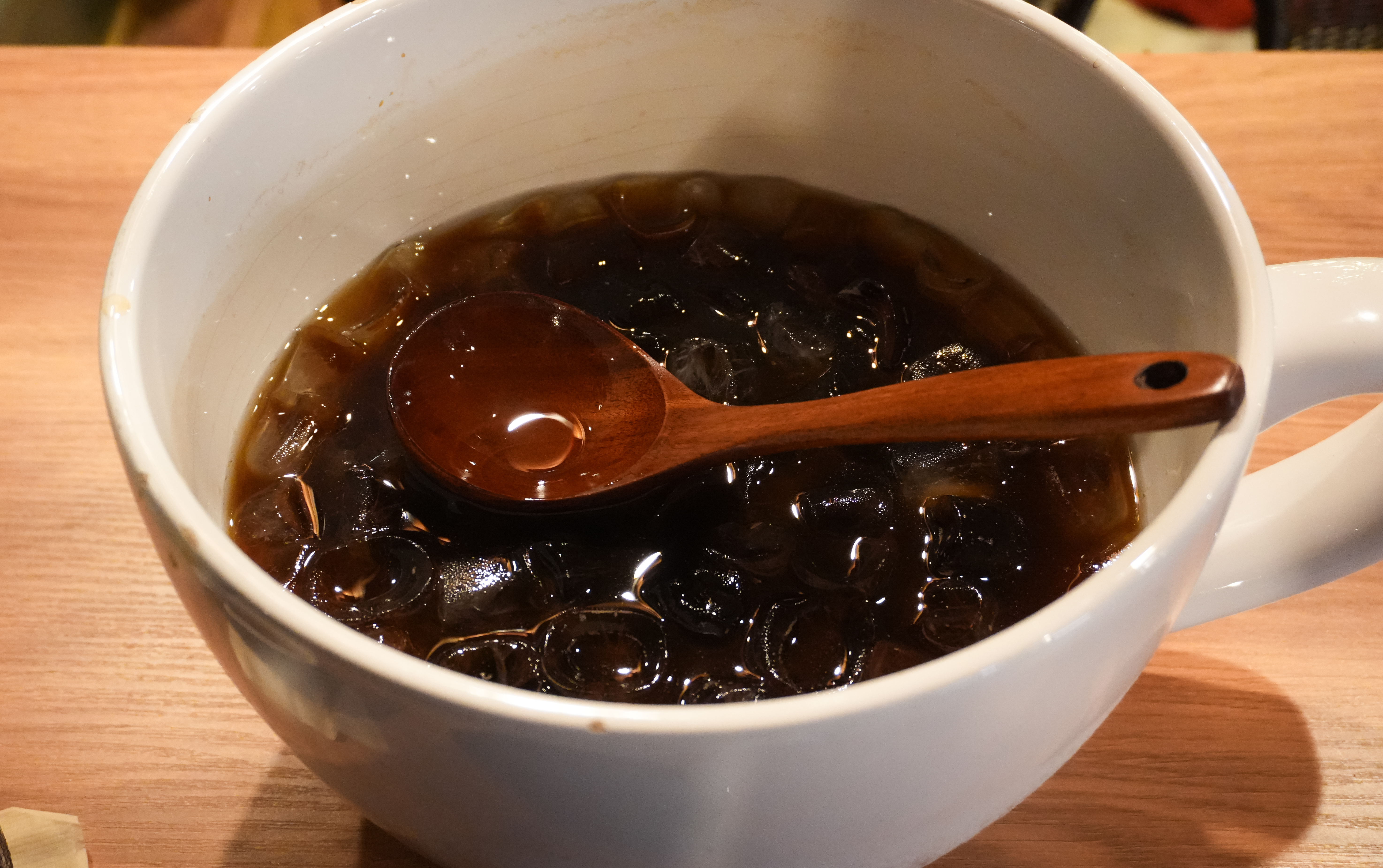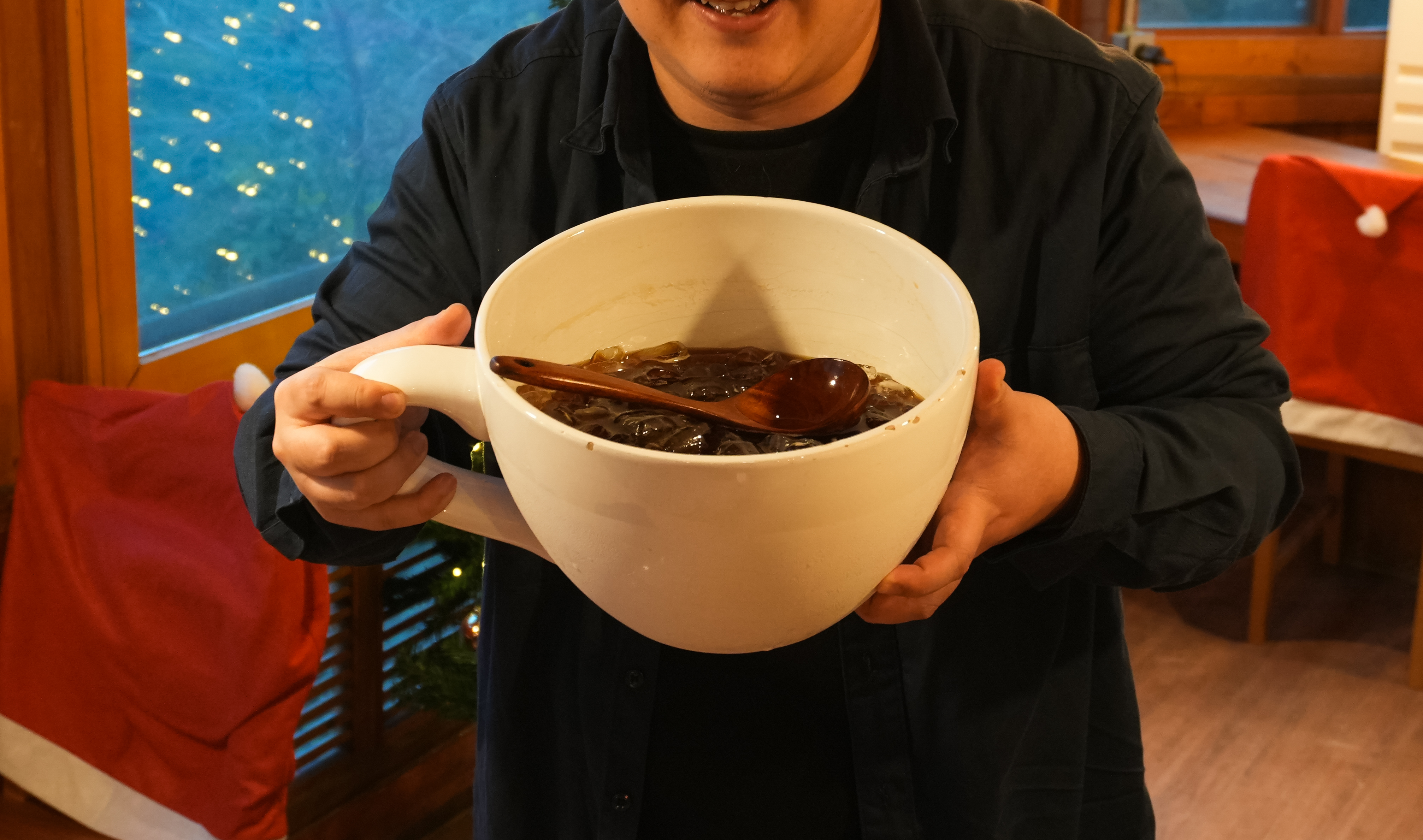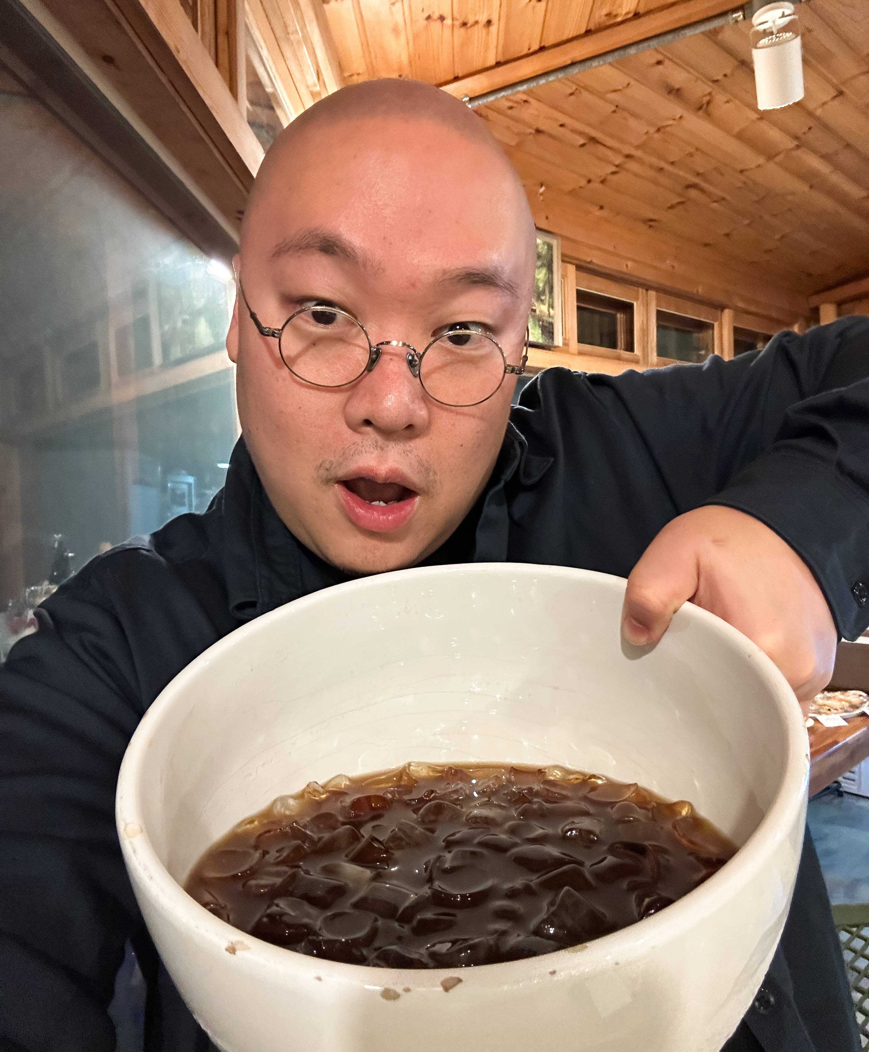 물론 한 손으로도 들어봤는데, 거의 젖 먹던 힘까지 쥐어짜서 들어야 했습니다. 물론 큰 컵 자체로 마셔도 되겠지만(?) 따로 잔을 주셔서, 인증샷만 찍고 작은 잔에다 덜어 마셨습니다. 얼음이 들어가 녹으니까 마셔도 마셔도 줄지를 않는 마법 같은(?) 일이 발생했죠.