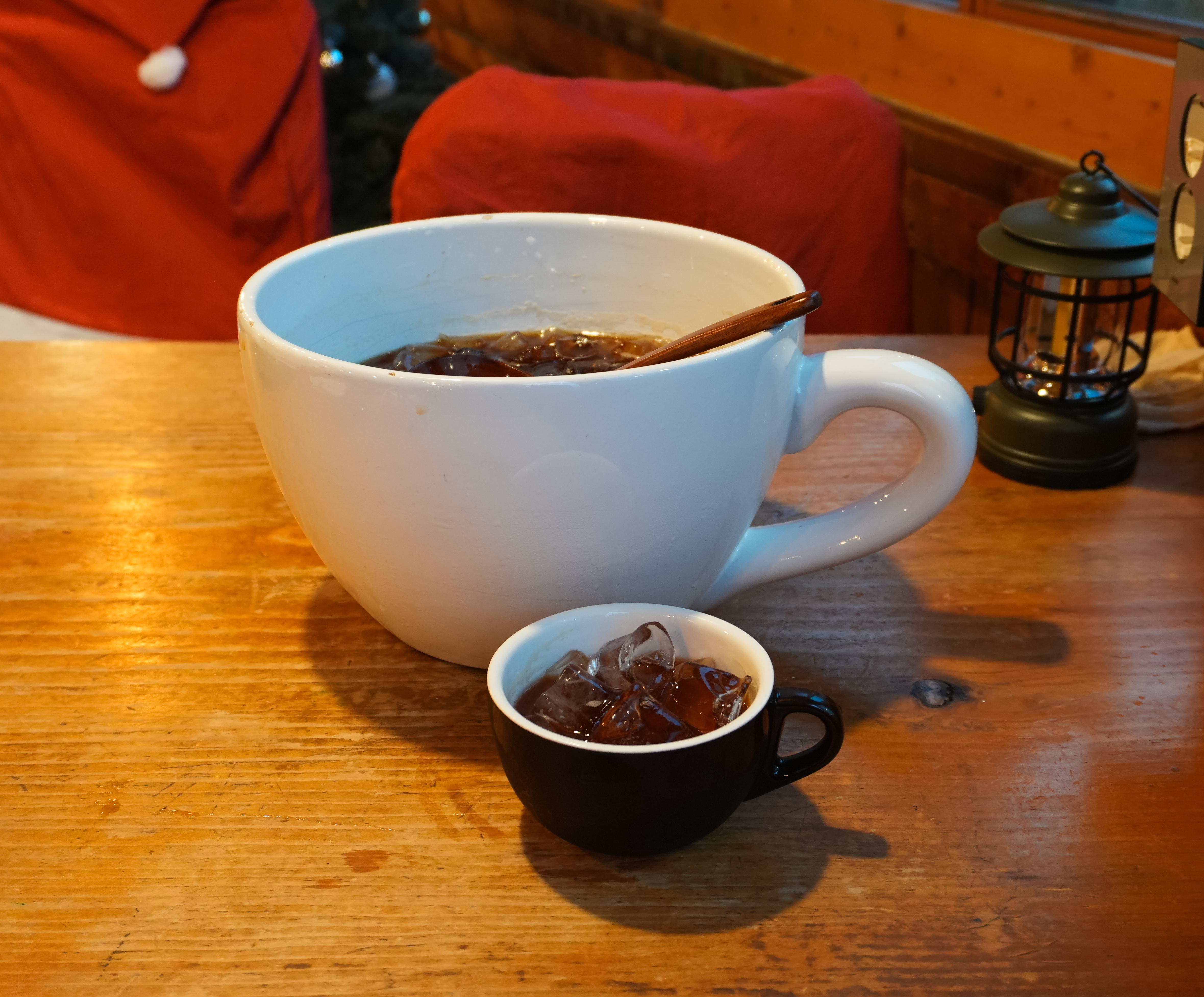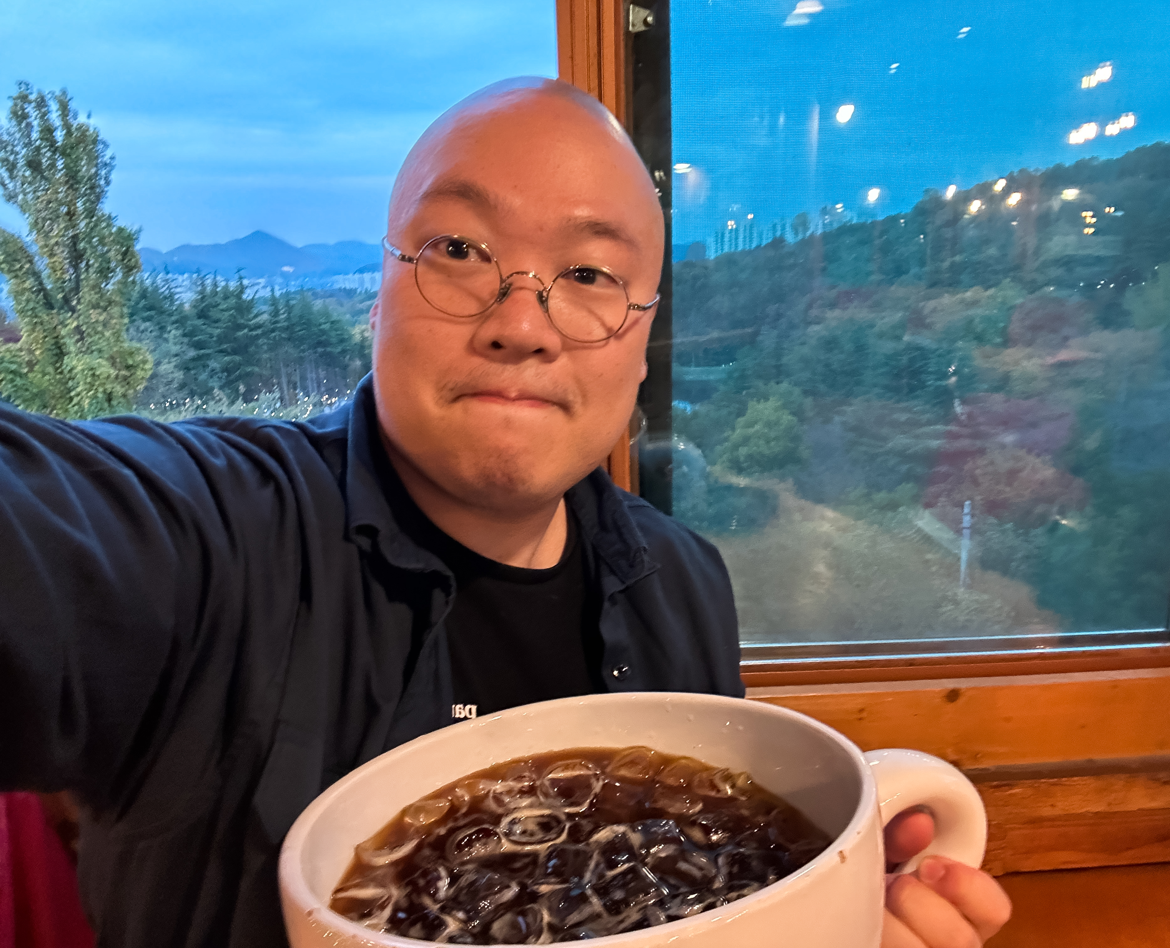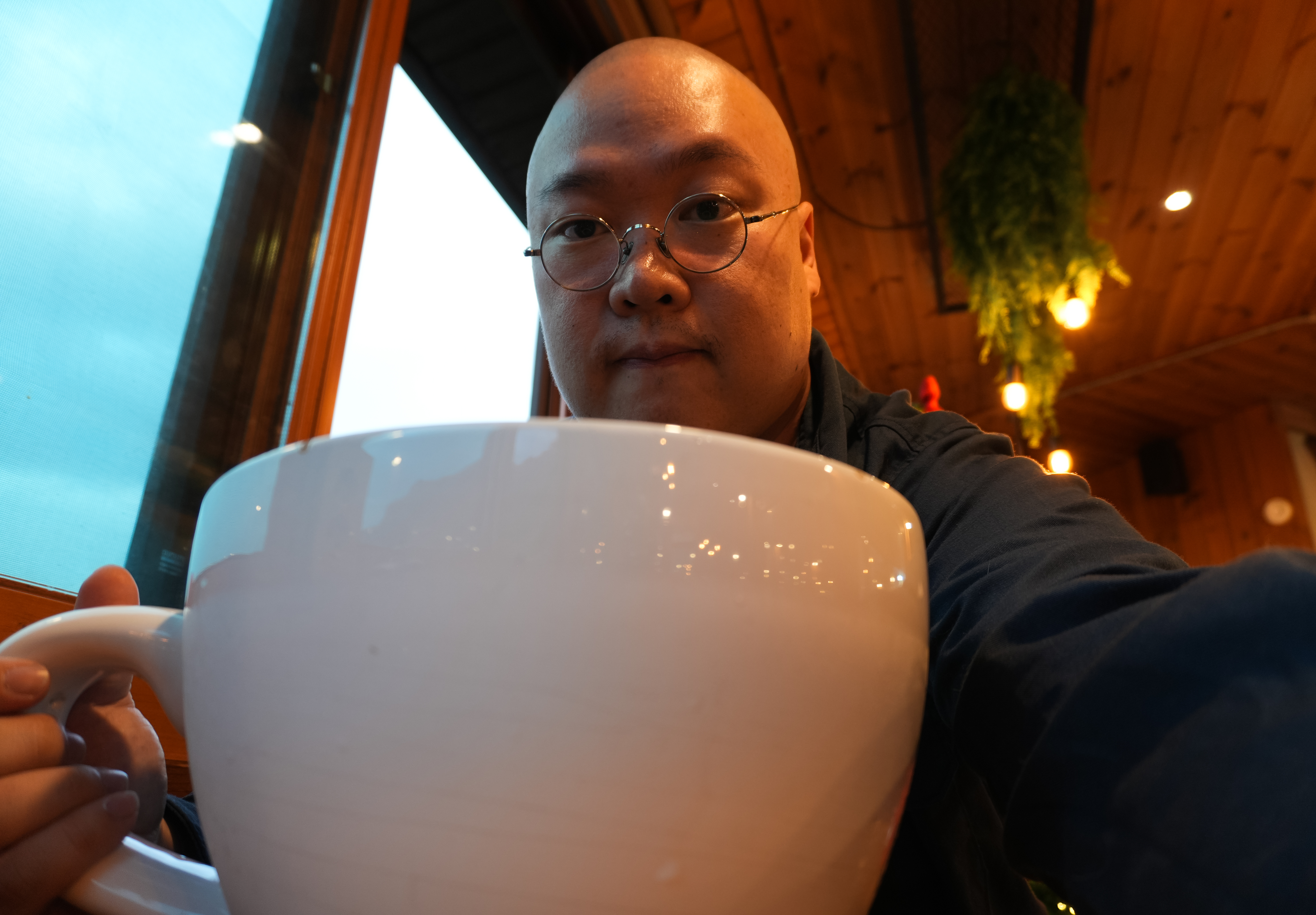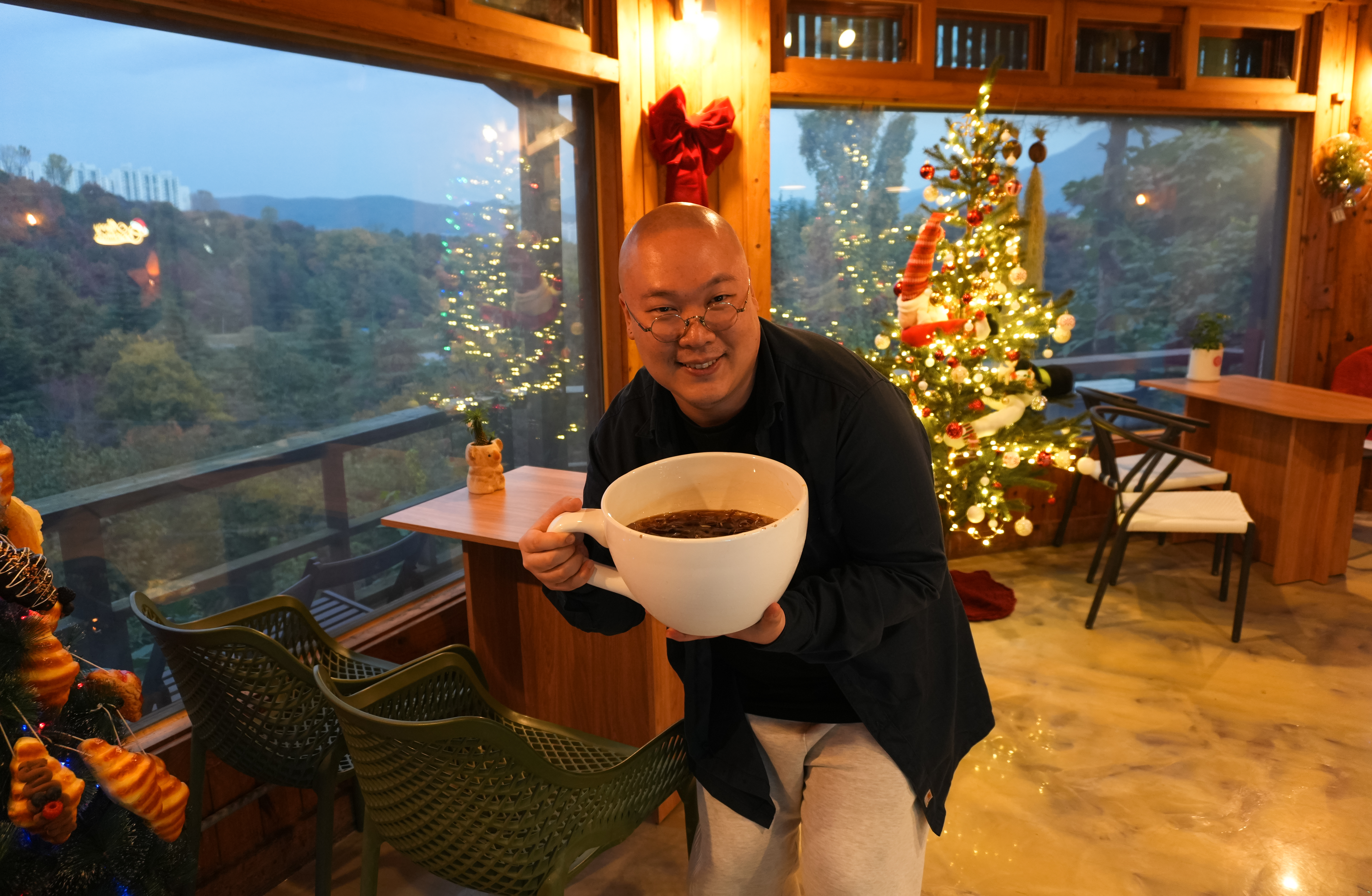 우드앤숲의 다라이카노는 정말 거대한 컵에 아메리카노와 음료가 담겨 나왔는데, 컵 자체가 너무 커서 한 손으로는 절대 들 수가 없었고, 양손으로 받쳐서 들어야 했습니다. 호기심에 구입하신 분들이 몇 분 계셨는데, 저는 혼자 가서 사진을 다른 분들에게 부탁해서 촬영해야 했습니다.