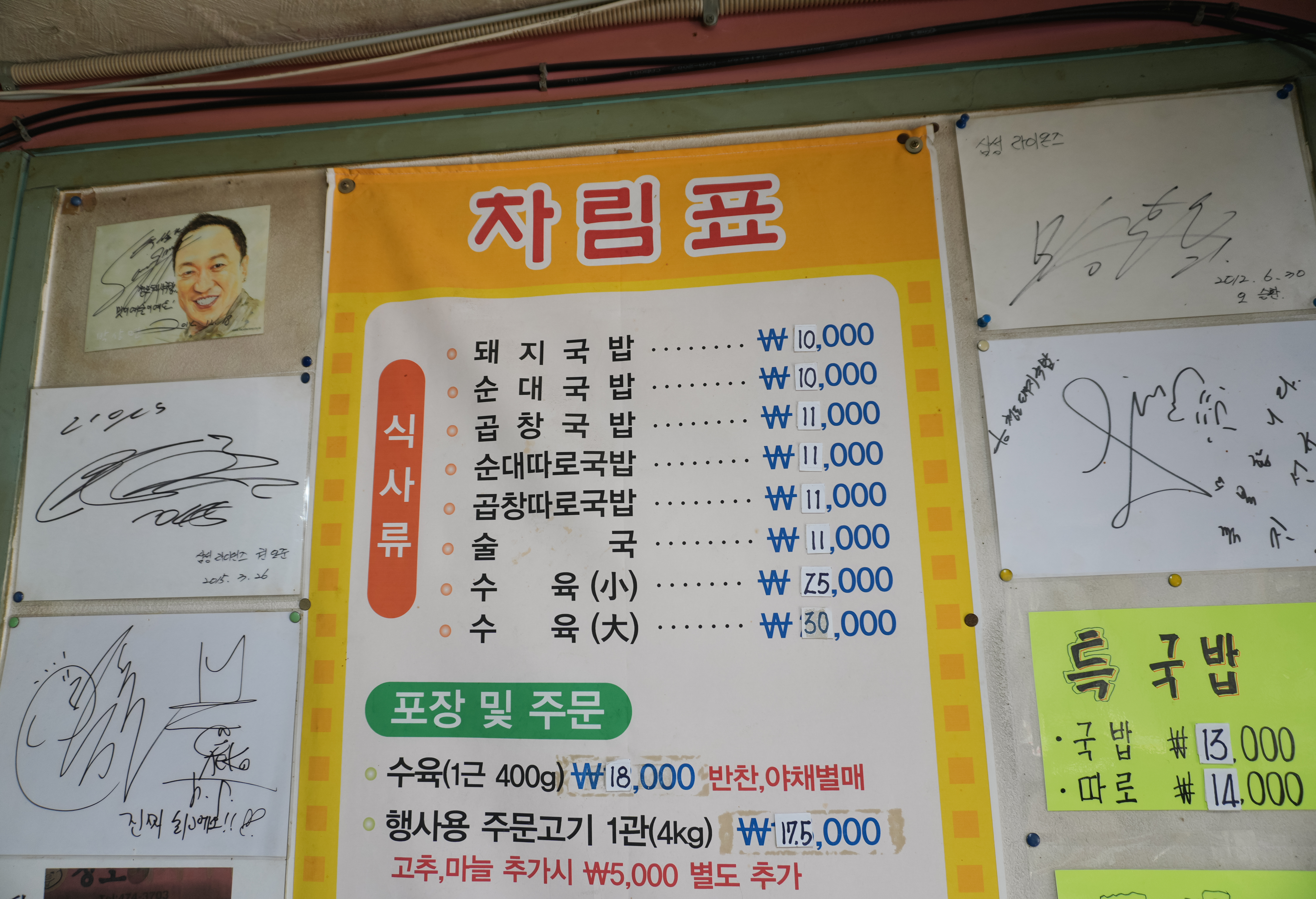 청도돼지국밥의 메뉴는 돼지국밥, 순대국밥, 곱창국밥, 순대따로국밥, 곱창따로국밥, 술국, 수육이 있었습니다. 그 밖에도 특국밥으로도 주문할 수 있었고, 순대한접시 따로 주문할 수도 있었습니다. 저희는 돼지국밥 2그릇을 주문했습니다.