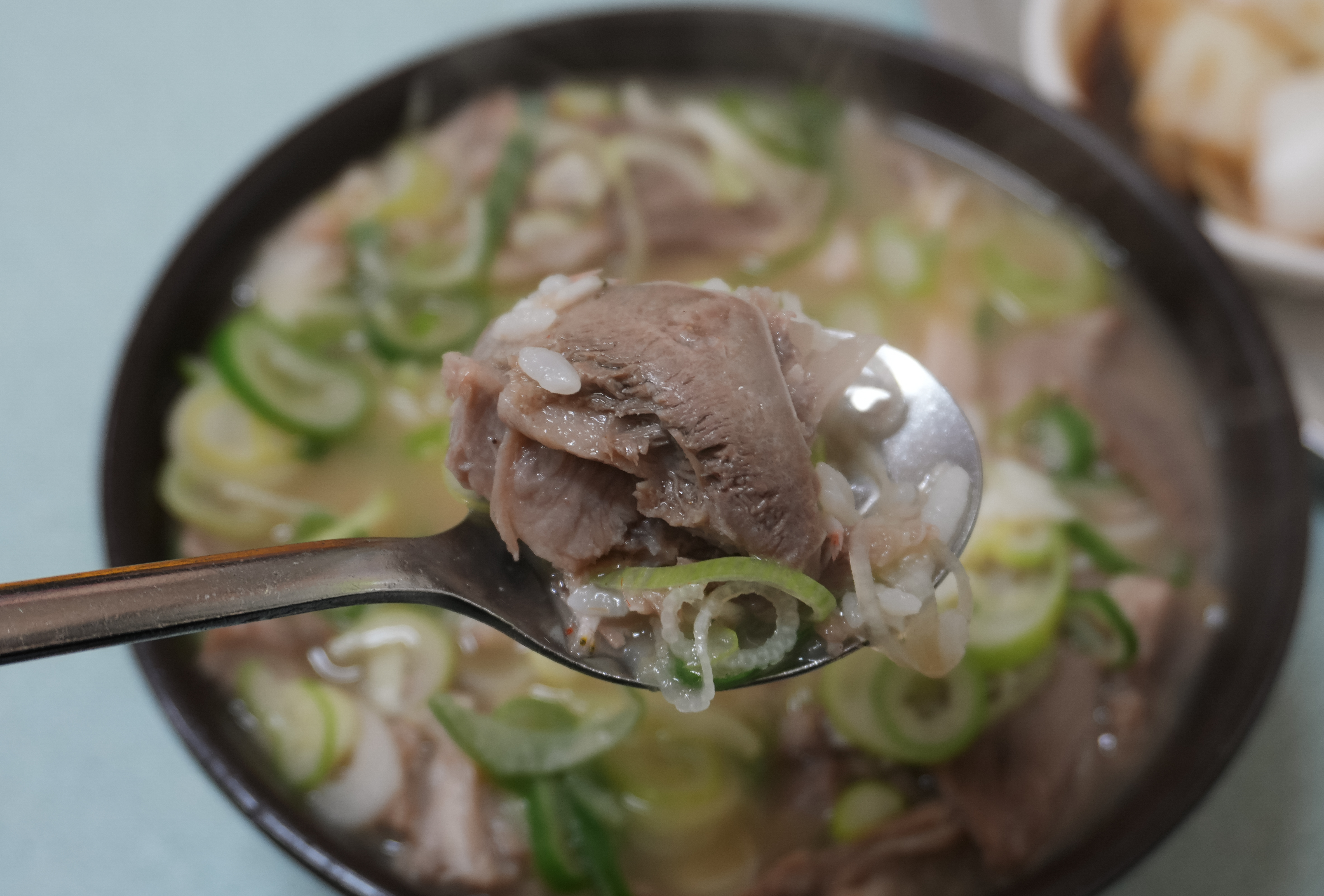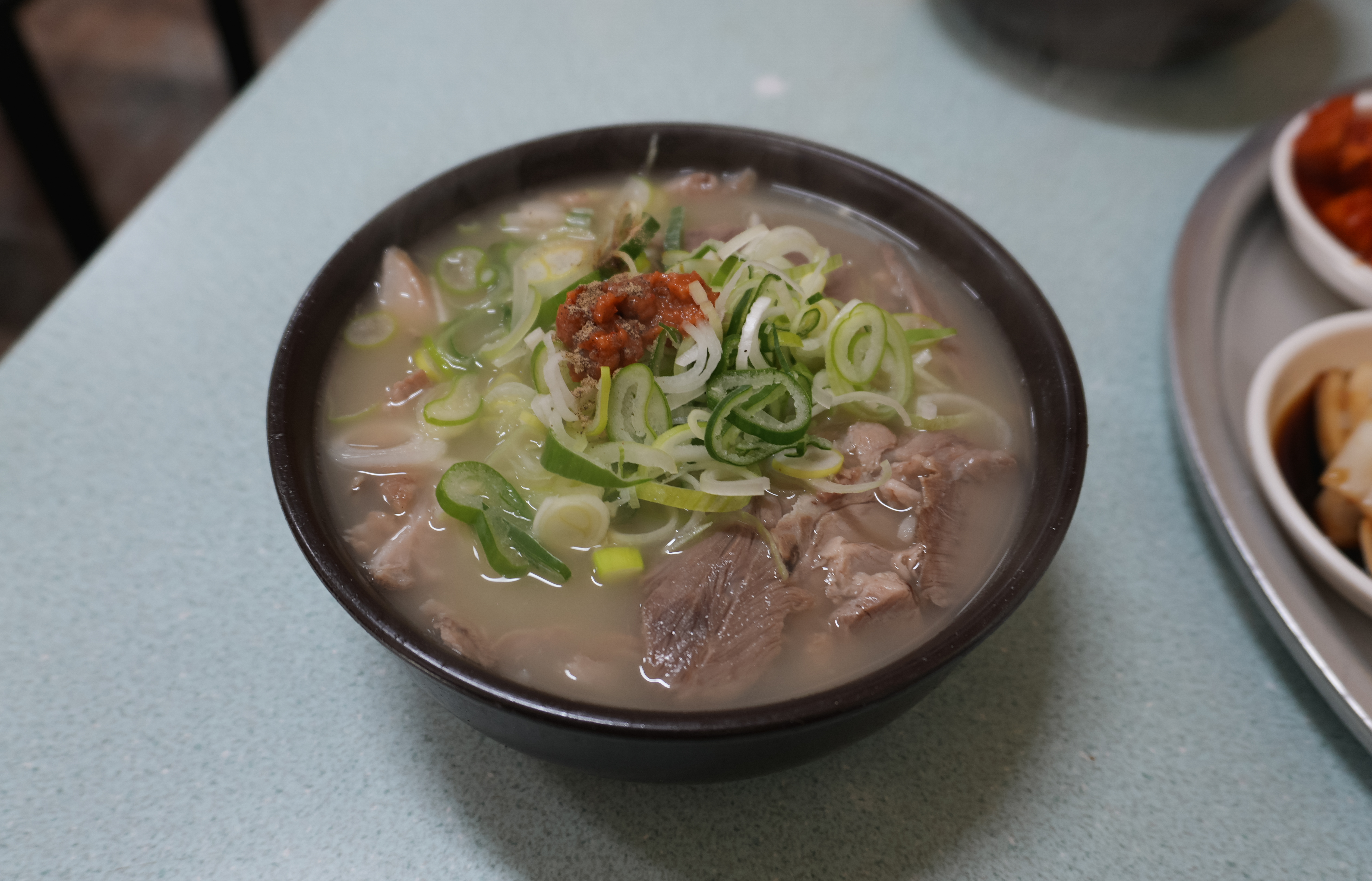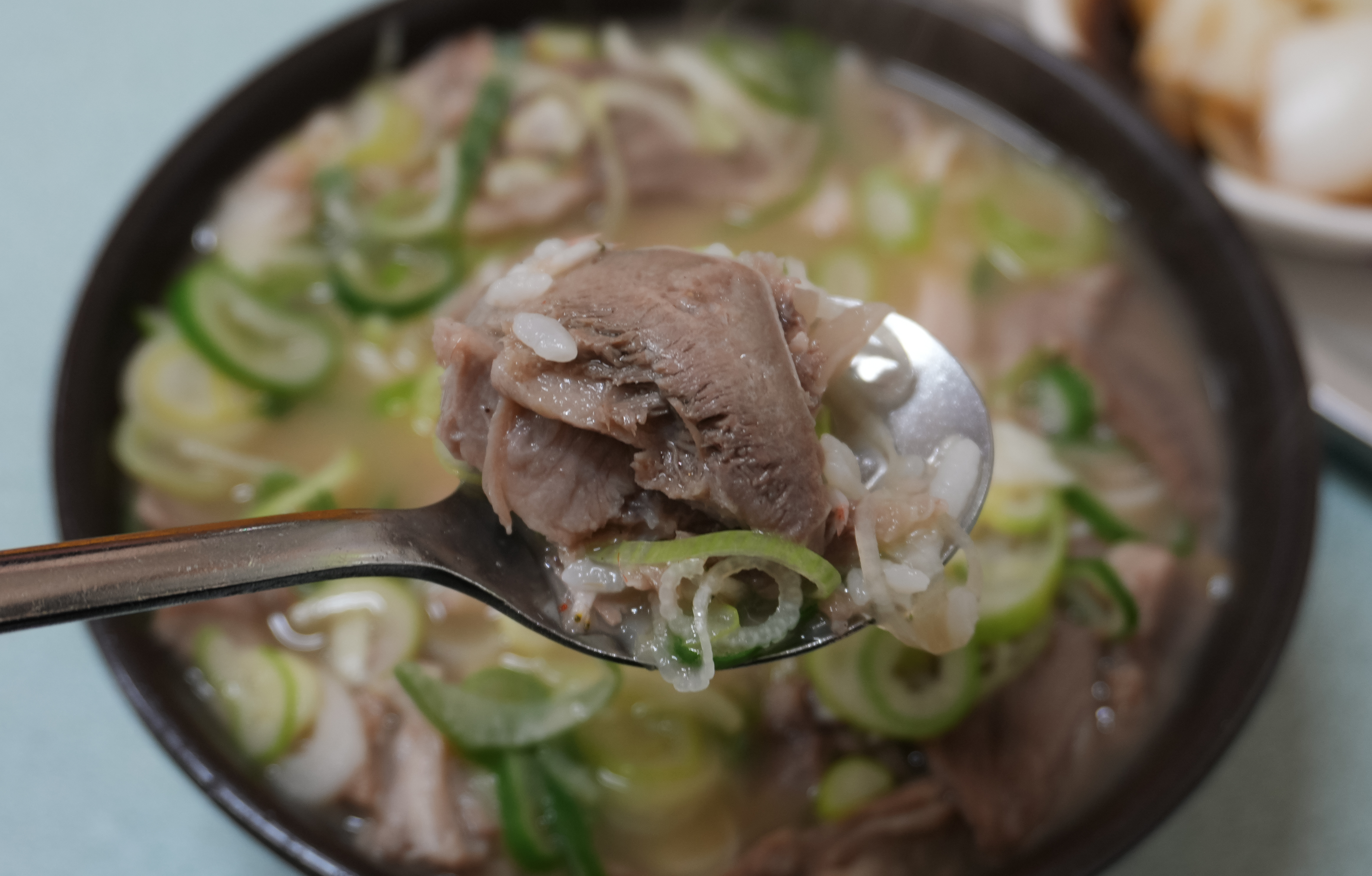 청도돼지국밥의 돼지국밥은 토렴식으로 나와서 밥이 말아져 나왔습니다. 돼지국밥에 들어간 고기는 앞에서 설명드린 것처럼 부드럽고 맛있었고, 국물도 진하고 맛있었습니다. 저는 개인적으로 먹어본 돼지국밥 중에는 이곳의 돼지국밥이 가장 부드럽기도 하고, 종종 생각날 정도로 맛있는 국밥이라고 생각합니다.