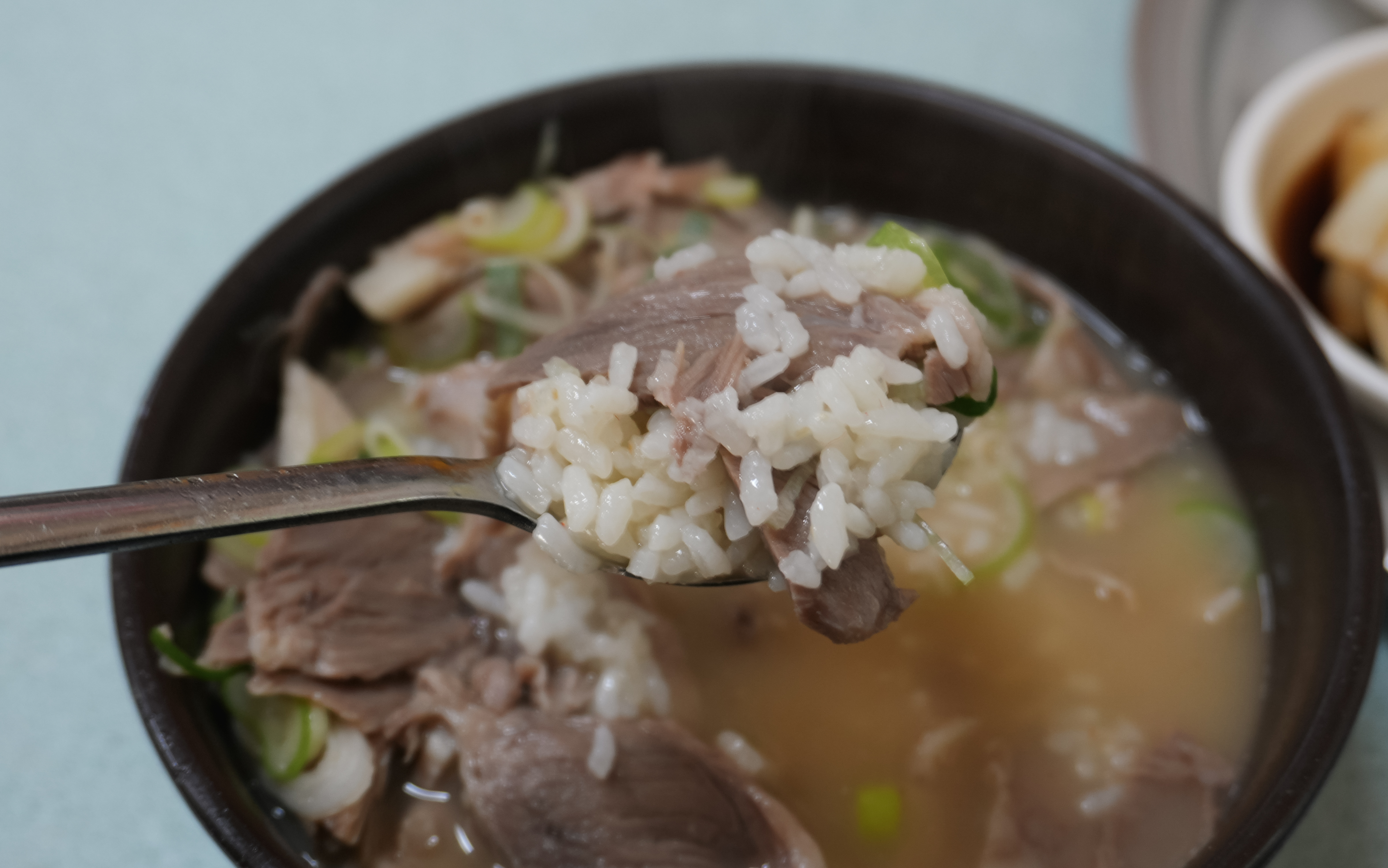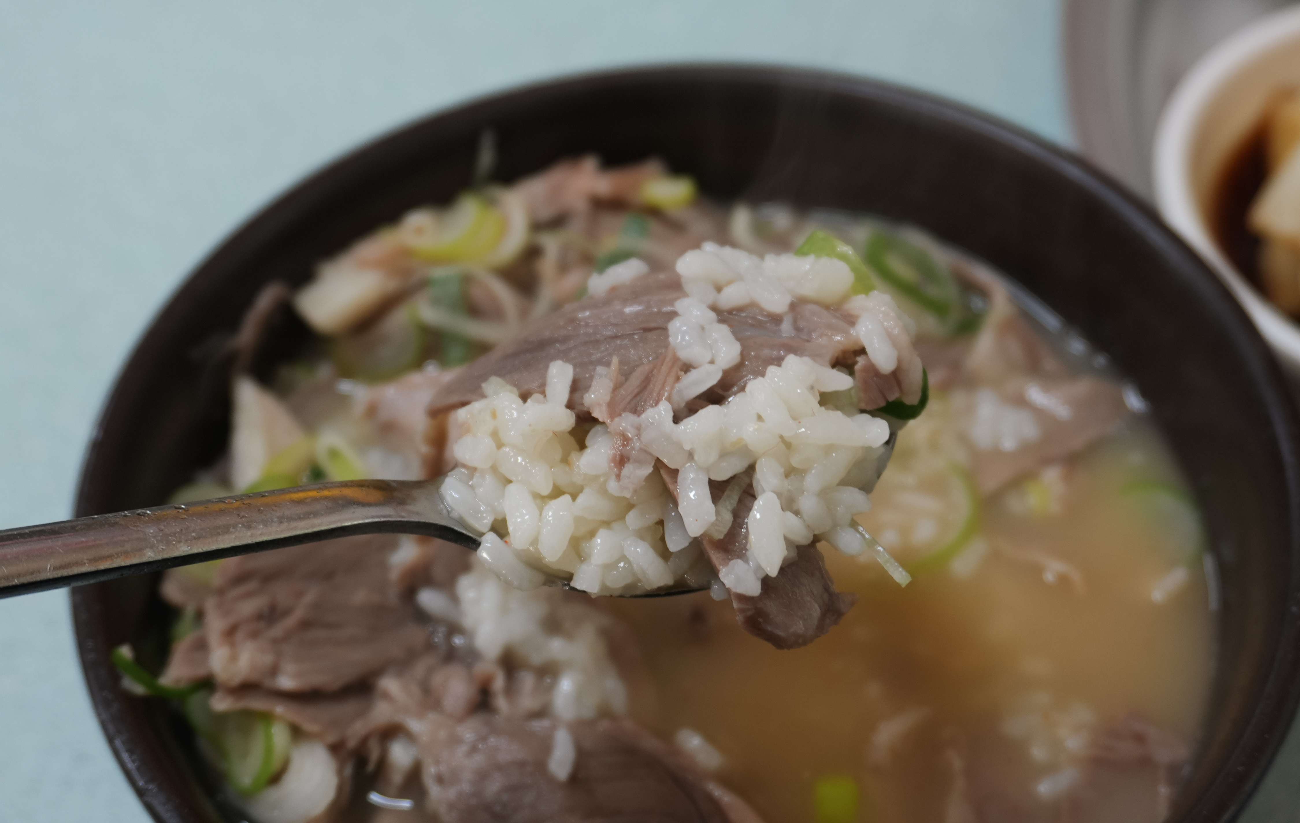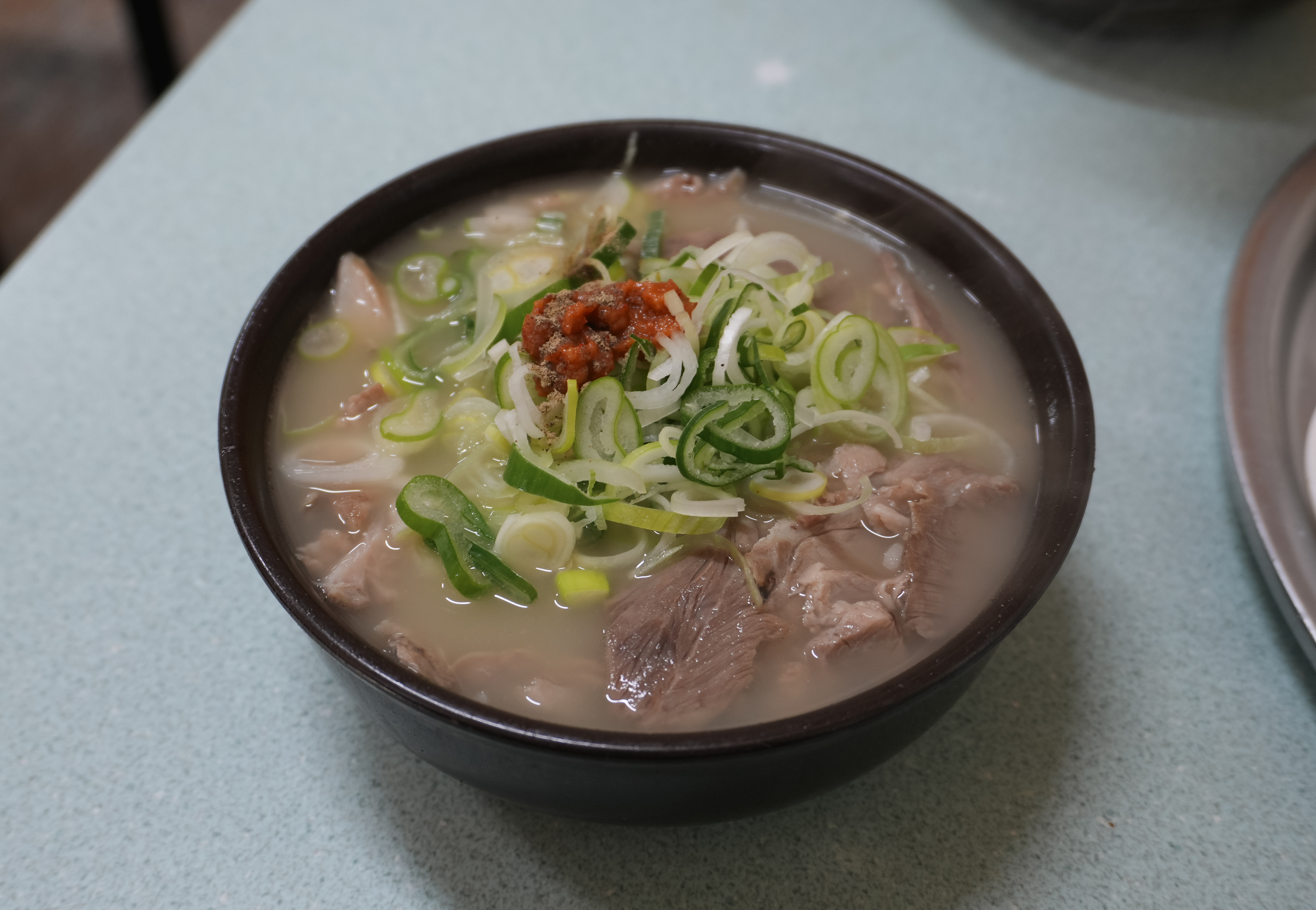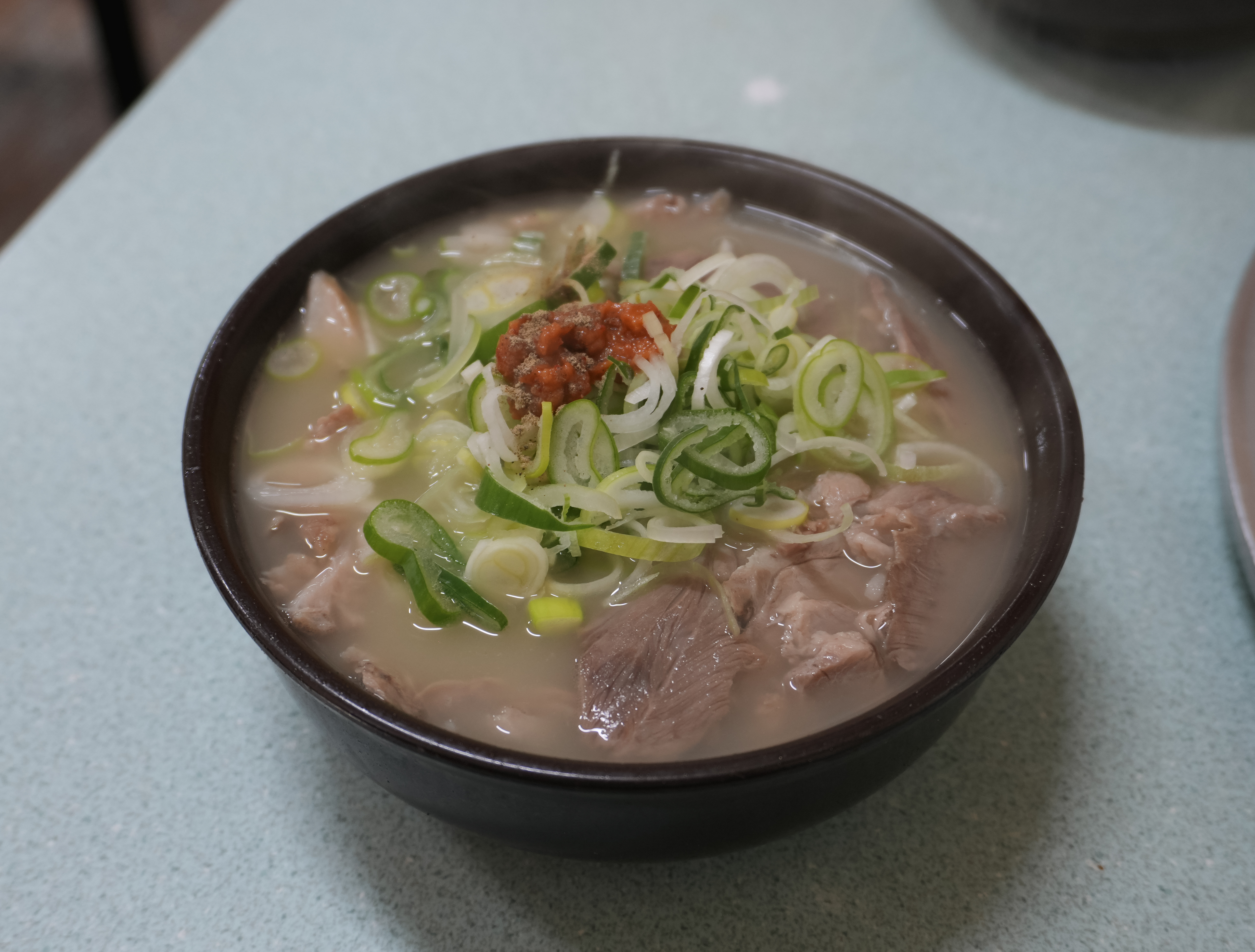 청도돼지국밥의 돼지국밥은 토렴식으로 나와서 밥이 말아져 나왔습니다. 돼지국밥에 들어간 고기는 앞에서 설명드린 것처럼 부드럽고 맛있었고, 국물도 진하고 맛있었습니다. 저는 개인적으로 먹어본 돼지국밥 중에는 이곳의 돼지국밥이 가장 부드럽기도 하고, 종종 생각날 정도로 맛있는 국밥이라고 생각합니다.