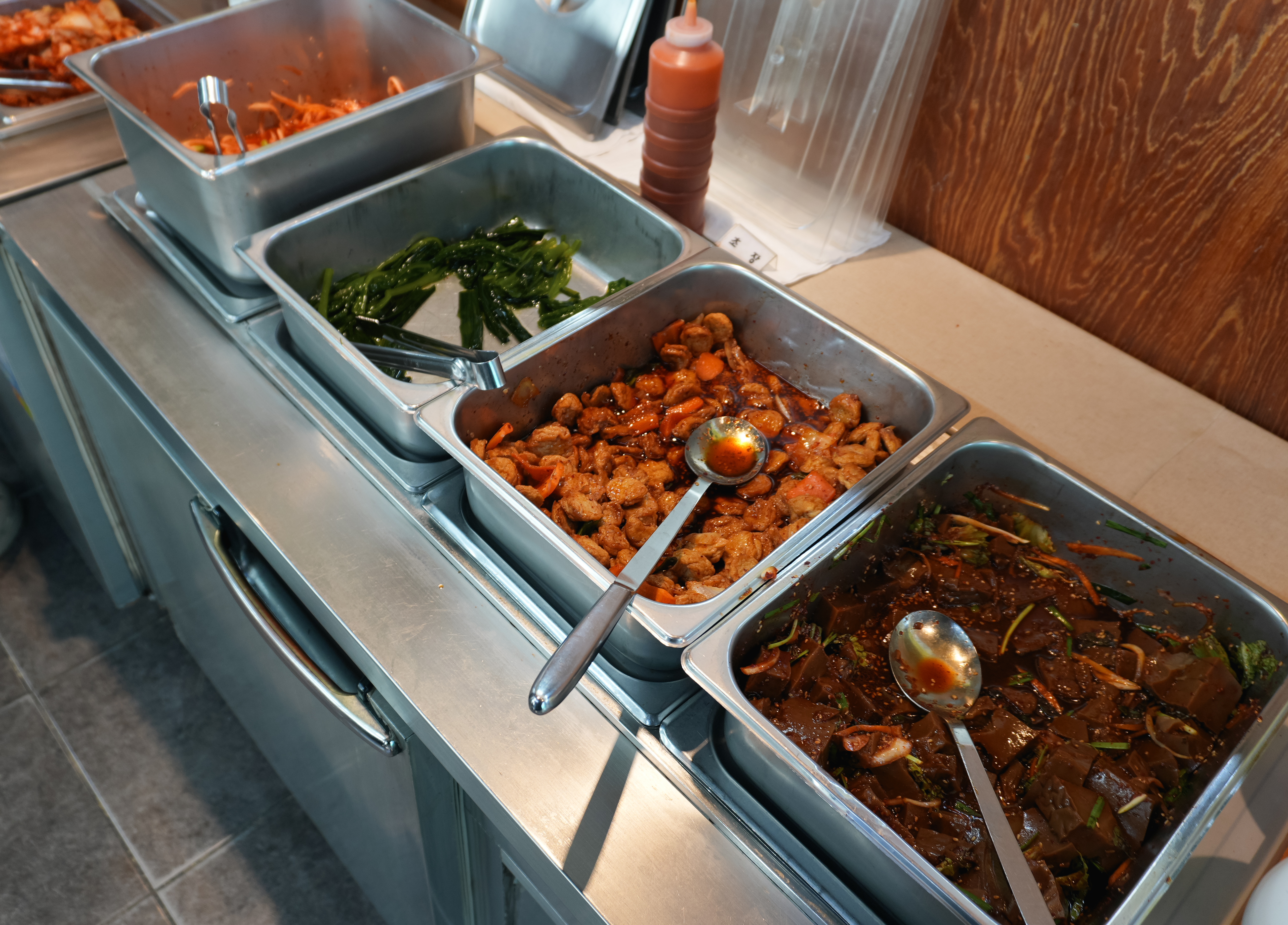 이번에는 메뉴들의 디테일 사진을 좀 찍어봤습니다. 당진 해나루한식뷔페에는 흰밥, 보리밥, 샐러드, 조림, 묵, 김밥, 미역국, 잔치국수 등이 있었고, 다음으로 넘어가면