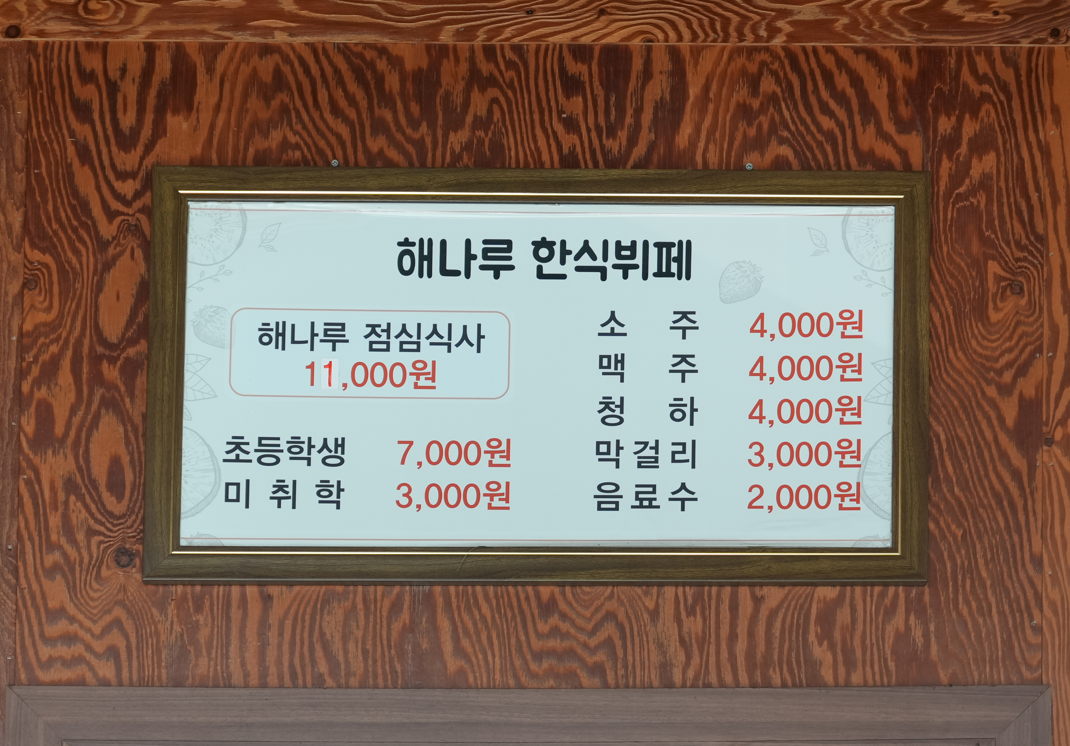 해나루 한식뷔페는 성인기준 점심식사 11,000원에 이용할 수 있었고, 초등학생과 미취학 학생에게는 각각 7,000원, 3,000원의 비용을 받고 있었습니다. 가게에 대한 분위기는 전에 다녀왔던 리뷰를 통해 확인하실 수 있겠습니다.