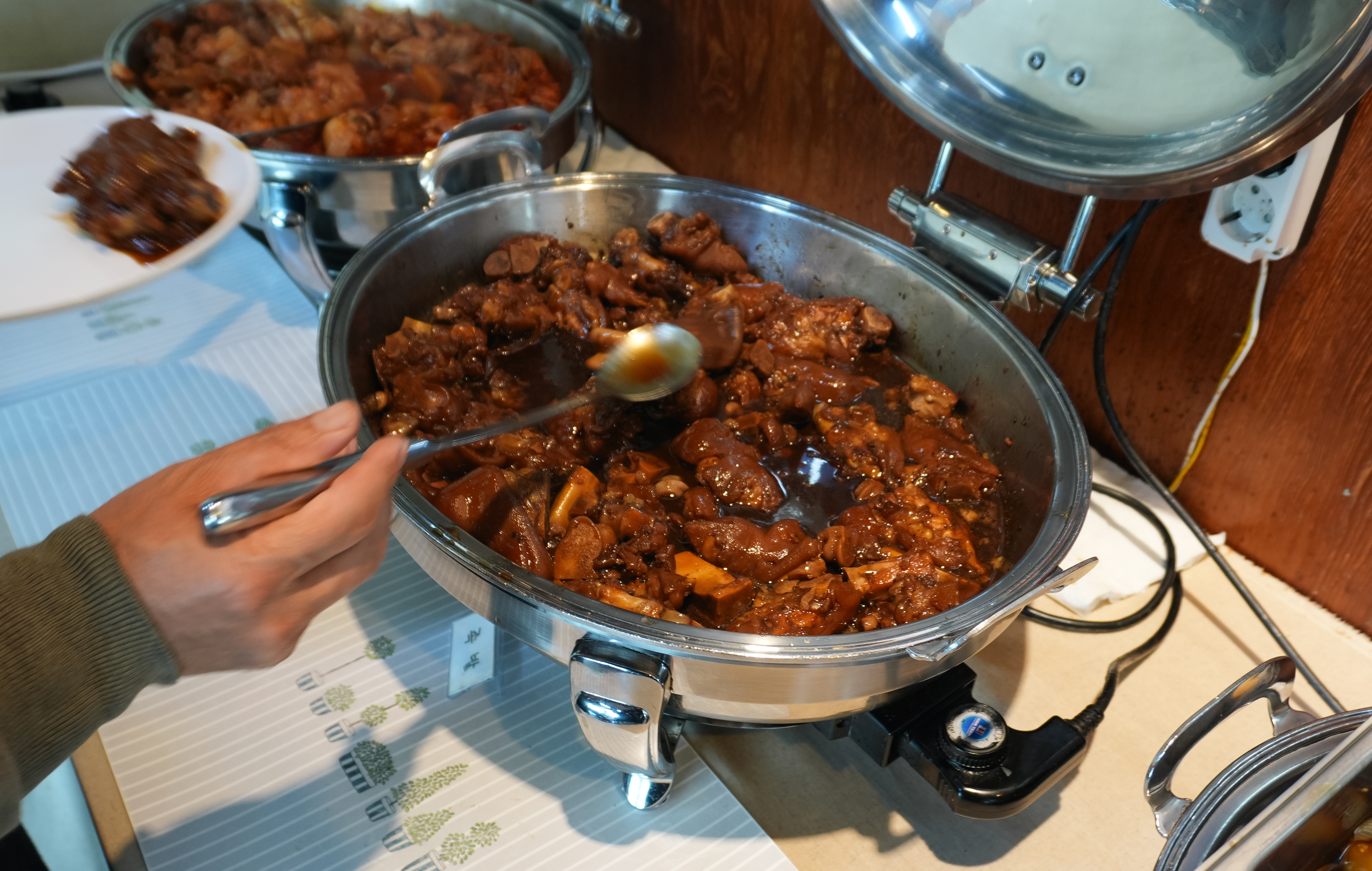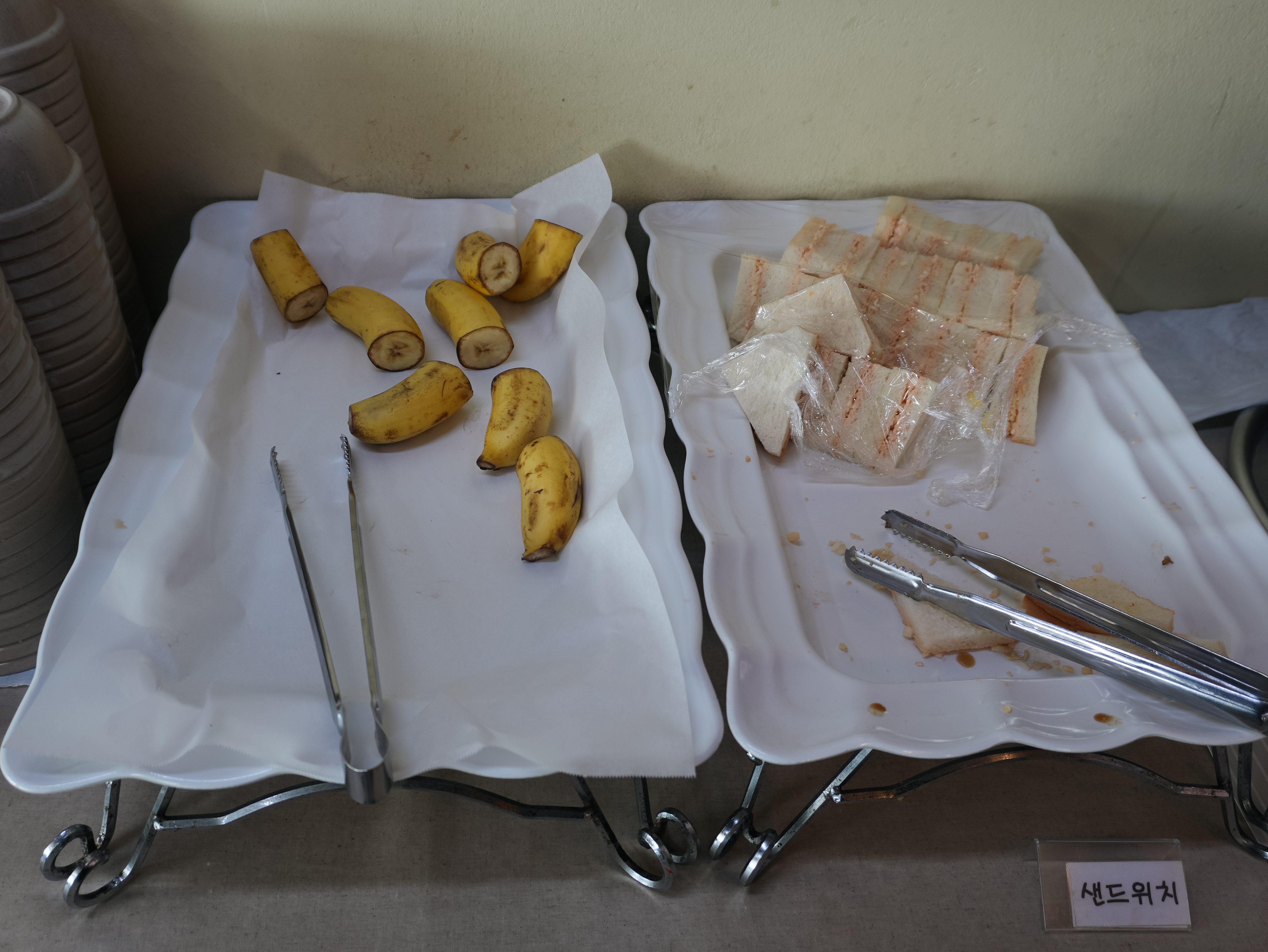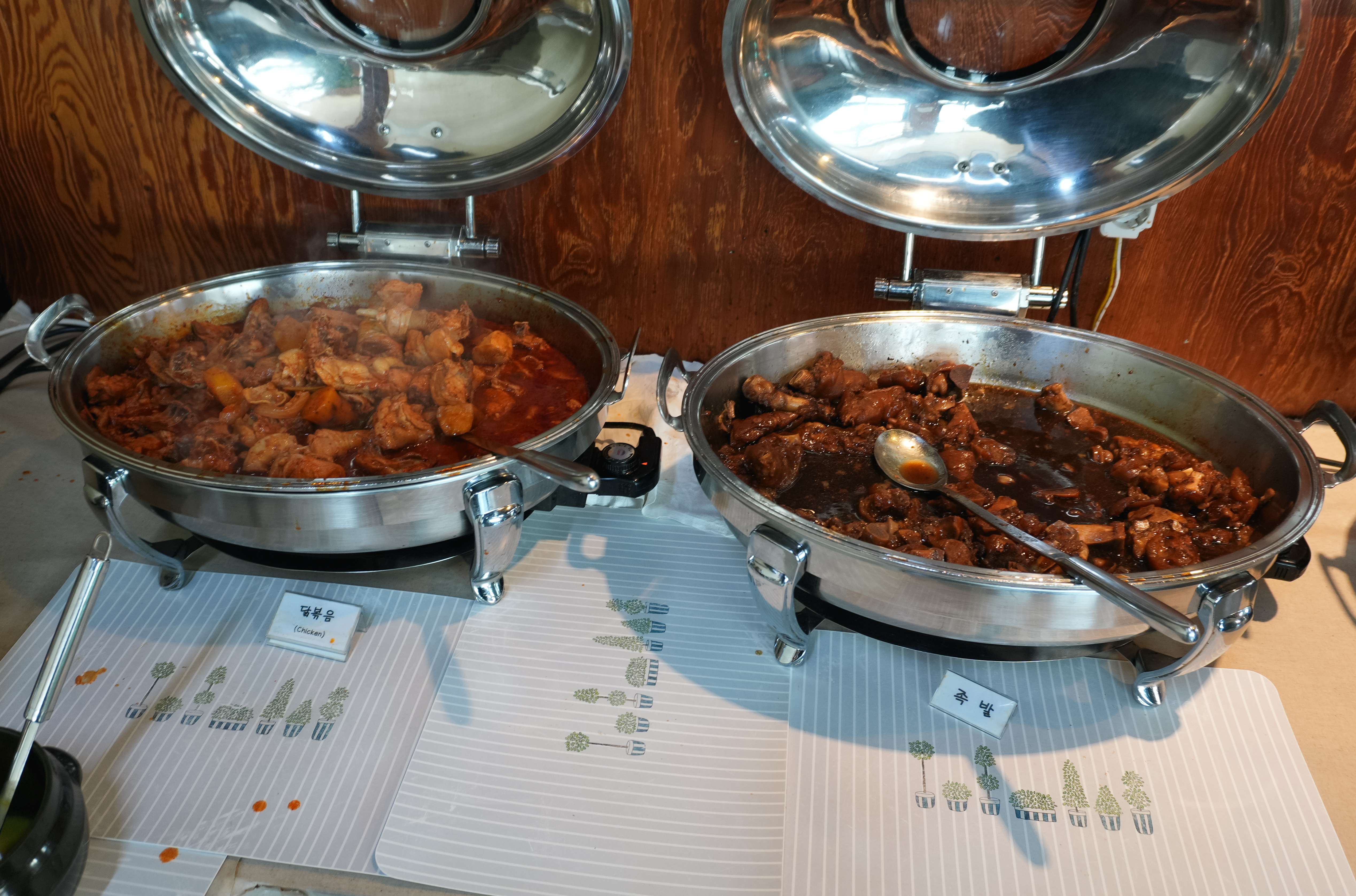 잡채, 탕수육, 족발, 닭볶음탕, 샌드위치, 바나나, 매실차 등이 있었습니다. 탕수육은 기성품을 사용하고 있었는데, 무엇보다도 해나루 한식뷔페의 강점을 손에 꼽자면 직접 만드는 족발을 먹을 수 있다는 점이 아닐까 싶습니다. 닭볶음은 제가 별로 좋아하진 않아서 안 먹어봤는데, 다른 분들은 많이 찾으시는 것 같더라고요.