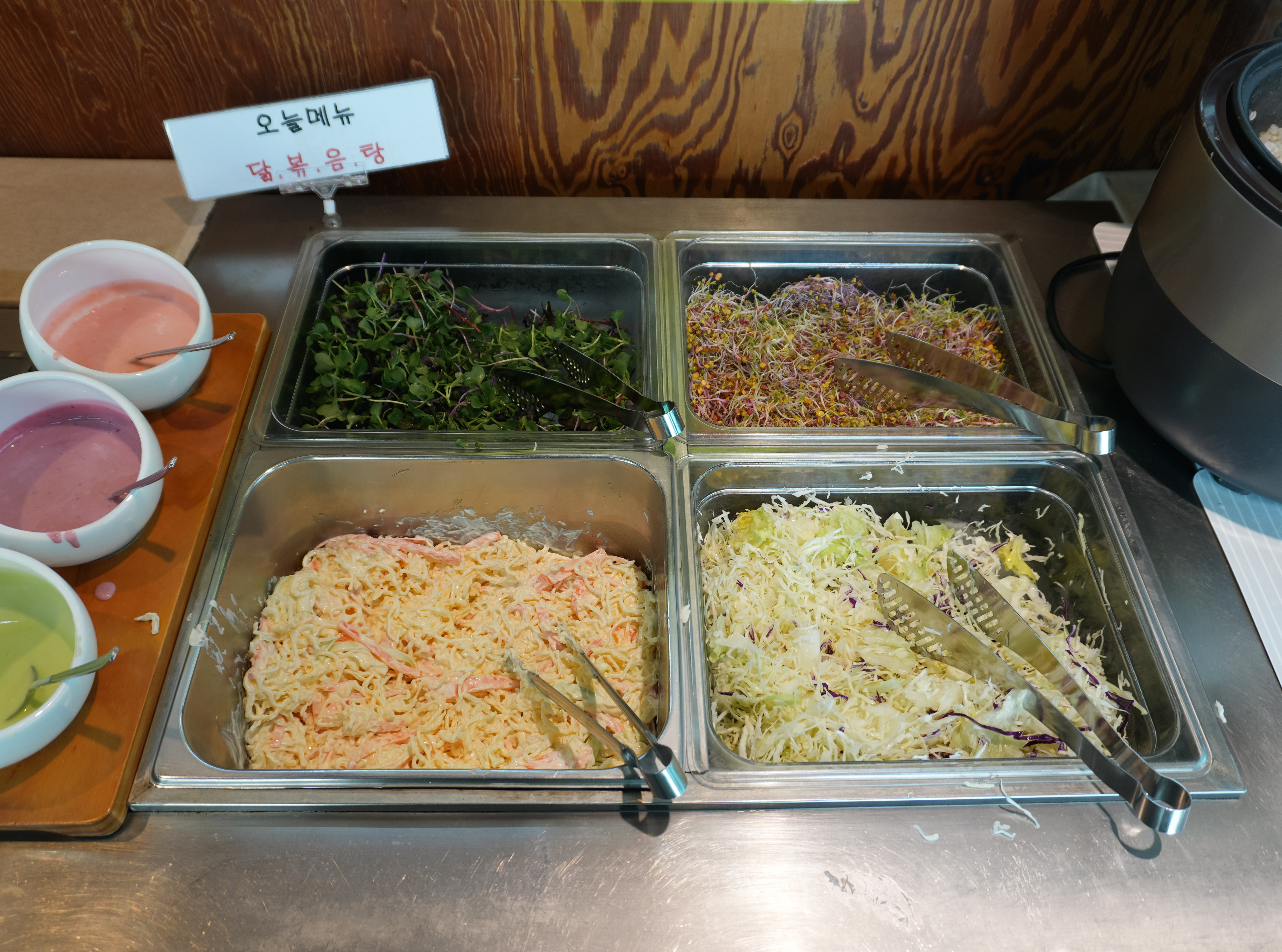 이번에는 메뉴들의 디테일 사진을 좀 찍어봤습니다. 당진 해나루한식뷔페에는 흰밥, 보리밥, 샐러드, 조림, 묵, 김밥, 미역국, 잔치국수 등이 있었고, 다음으로 넘어가면