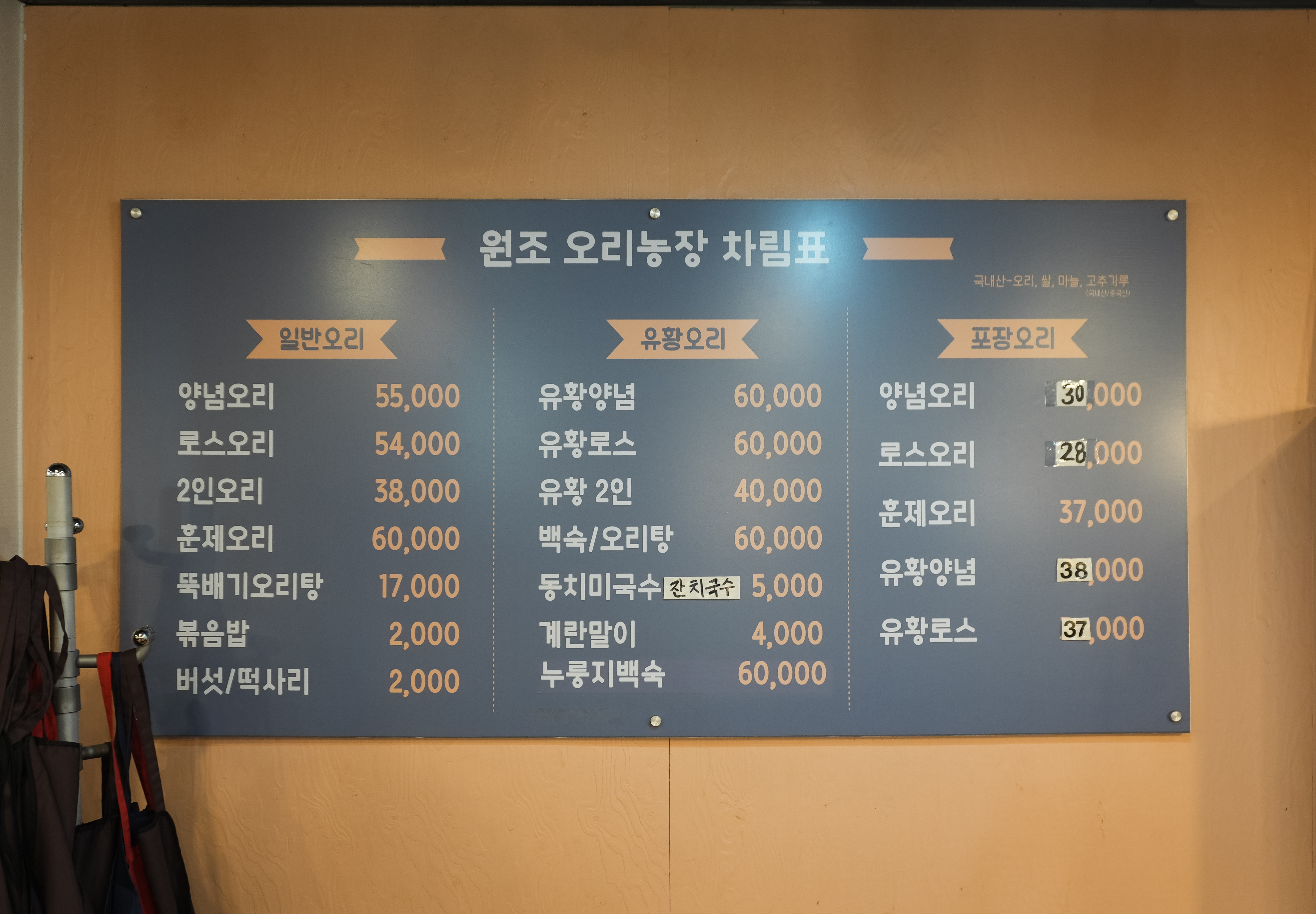 원조오리농장직영(원조농장오리)은 최근에 방문한 가게로, 우리가 흔히 아는 훈제오리, 오리로스, 오리탕, 유황오리 등을 판매하고 있었지만, 특히 오리주물럭이라 불리는 '양념오리' 가 유명한 가게였습니다.