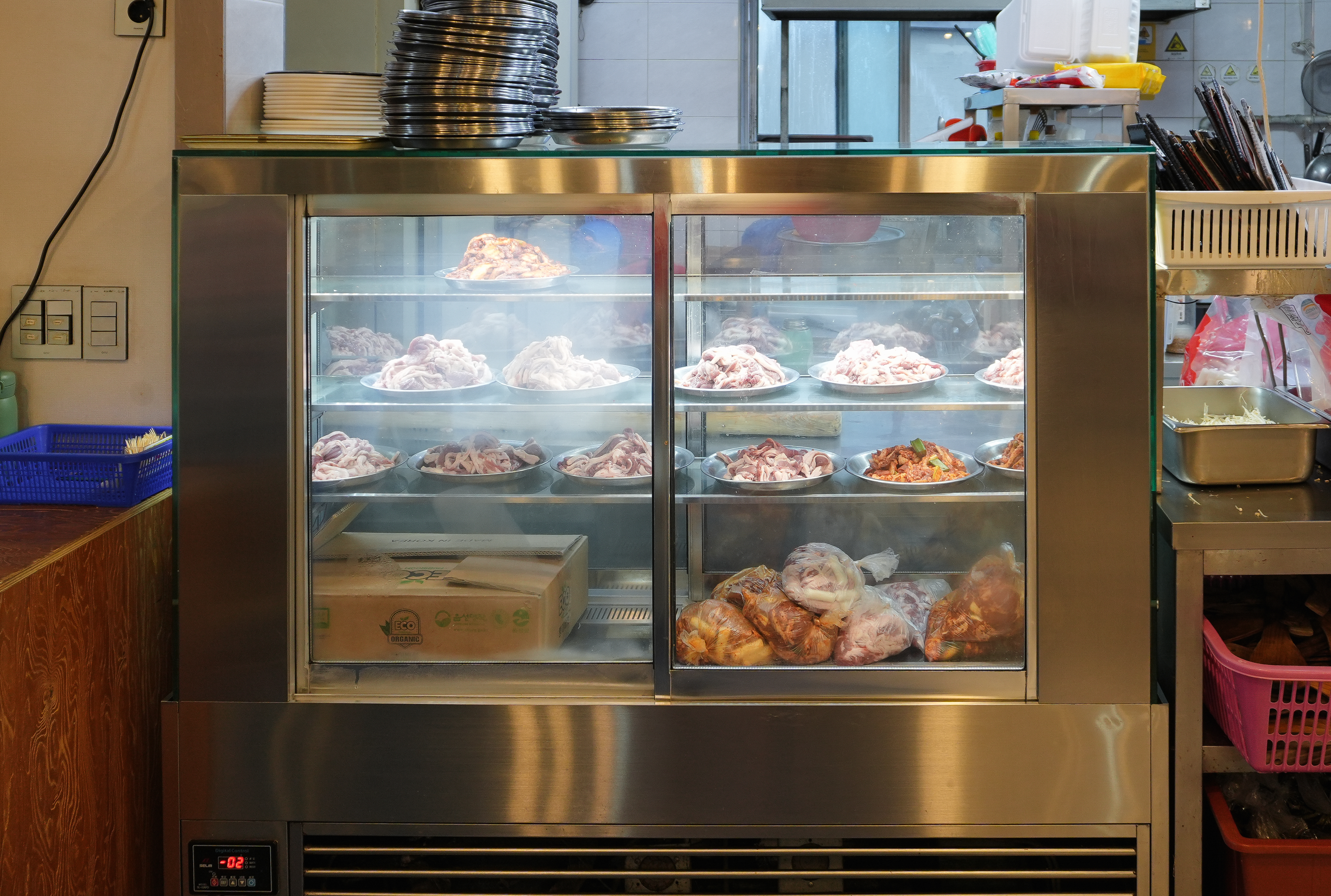 제가 방문한 평일기준 손님이 많지는 않지만, 주말에는 손님이 많이 몰려서 주차안내를 해주고 있다고 합니다. 원조오리농장직영 가게에 들어가면 오리고기를 전시해 둔 냉장고가 보이고, 반찬을 담을 수 있는 반찬냉장고가 있더라고요. 셀프로 담아 오는 건지는 모르겠지만, 제가 방문했을 때는 직원분이 직접 가져다주시더라고요.