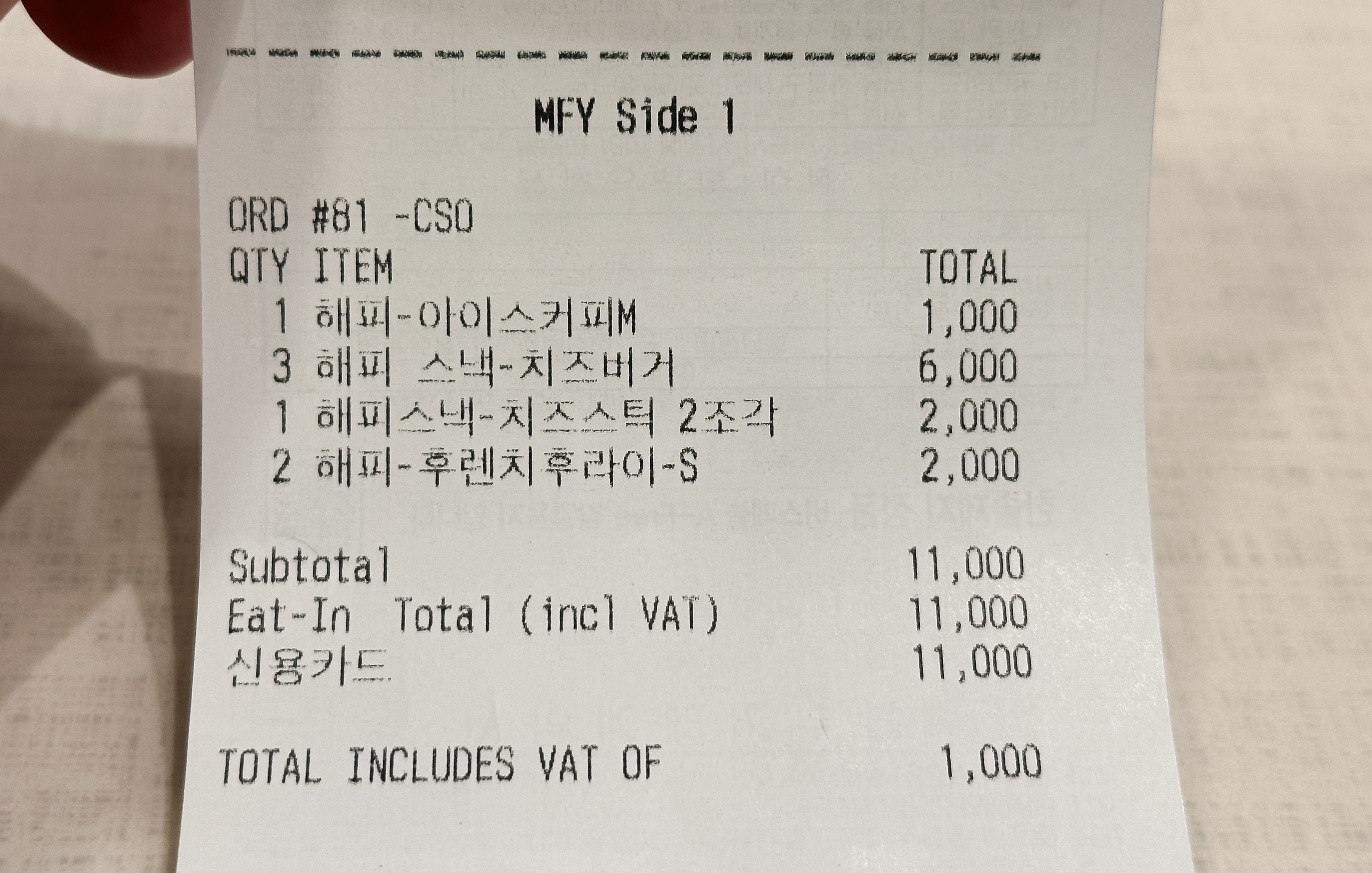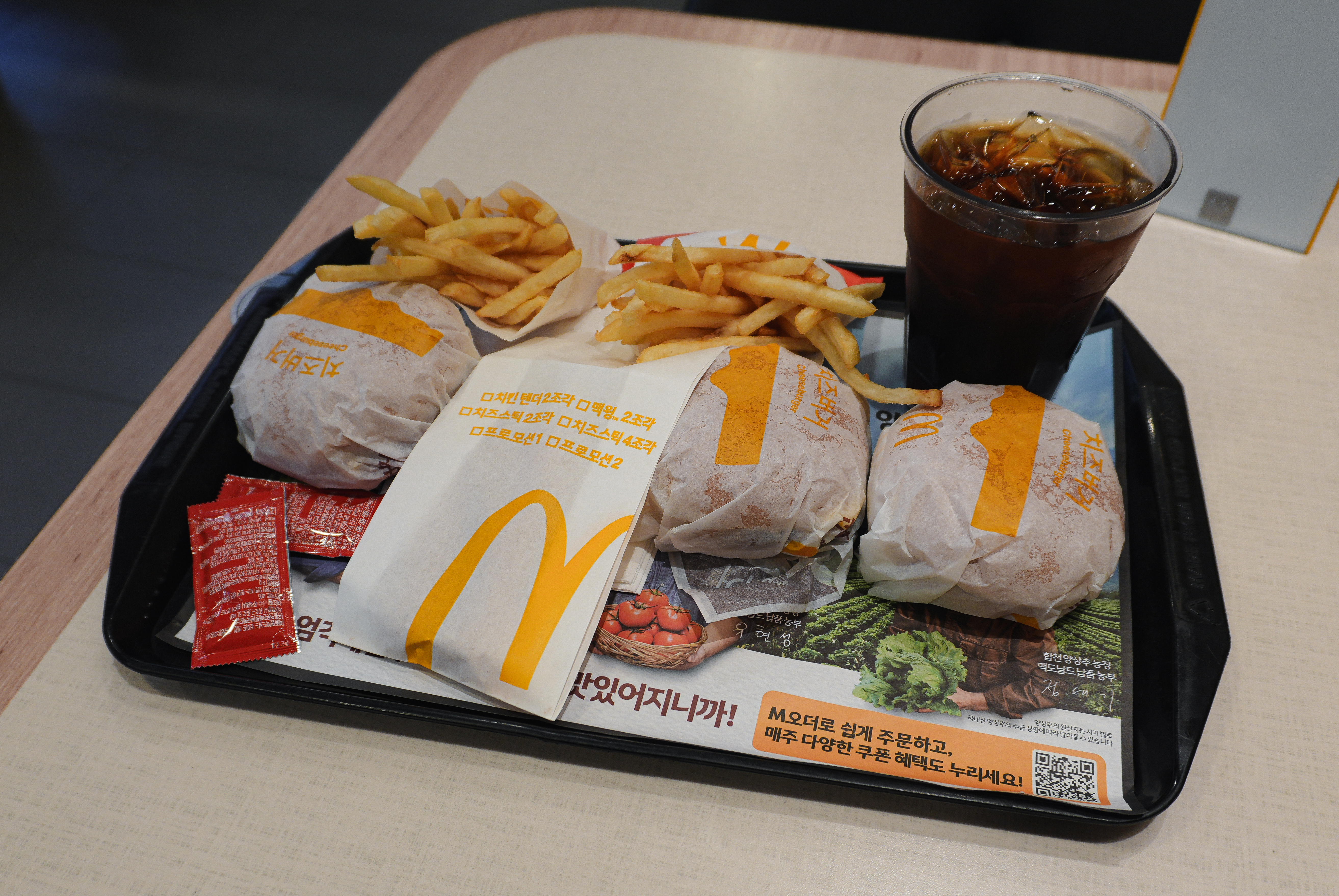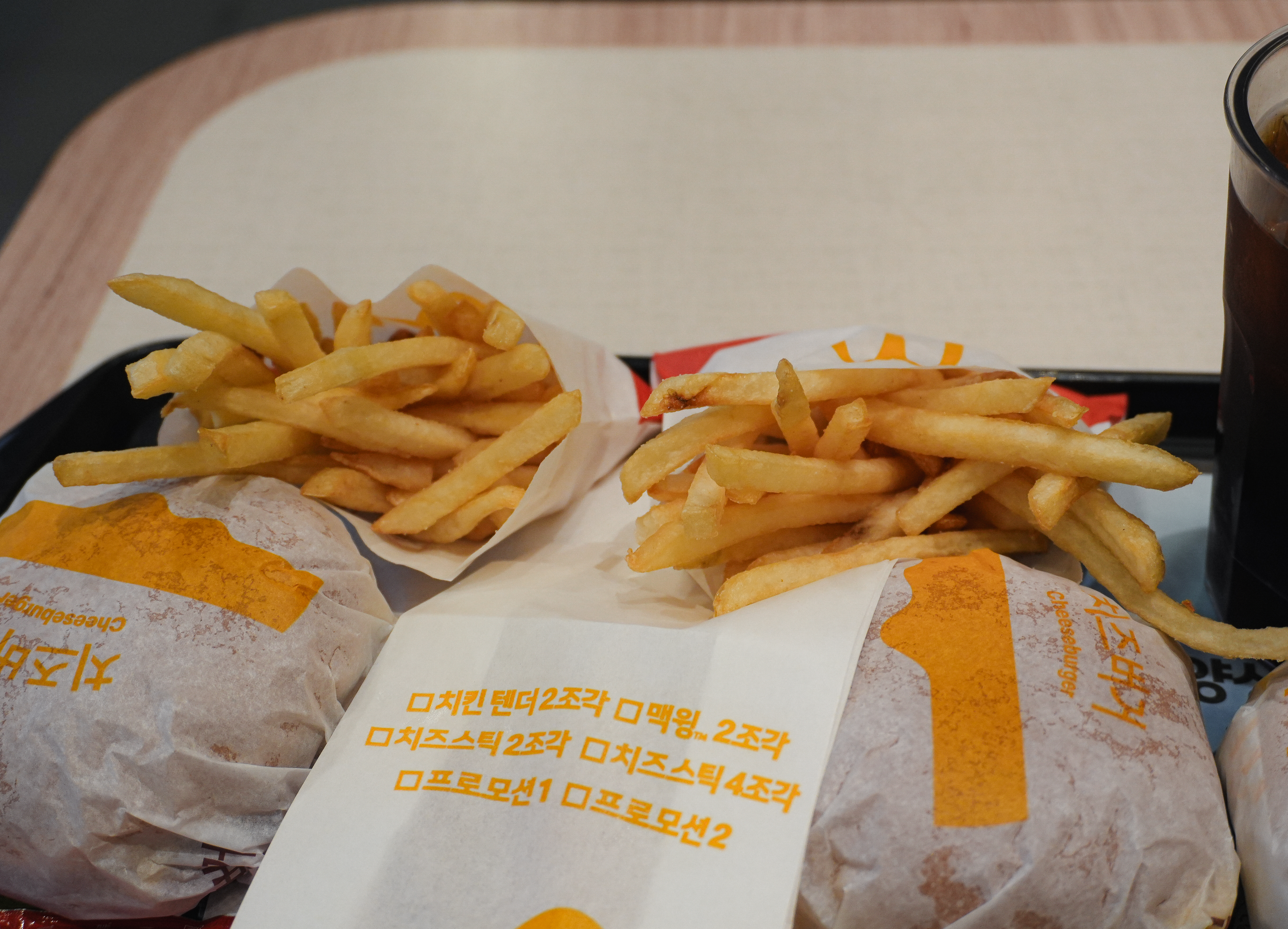 맥도날드 경주용강DT점에서 감자튀김과 치즈스틱, 치즈버거, 아이스커피를 주문해서 먹었습니다. 제가 방문했을 당시에는 맥도날드 해피스낵에 주문한 치즈버거, 치즈스틱, 감자튀김, 아이스커피가 1,000~2,000원 대라 메뉴 여러 가지를 구입해도 11,000원이 나오더라고요. 맥도날드 메뉴는 뭐 다를게 없으니 넘어가죠.