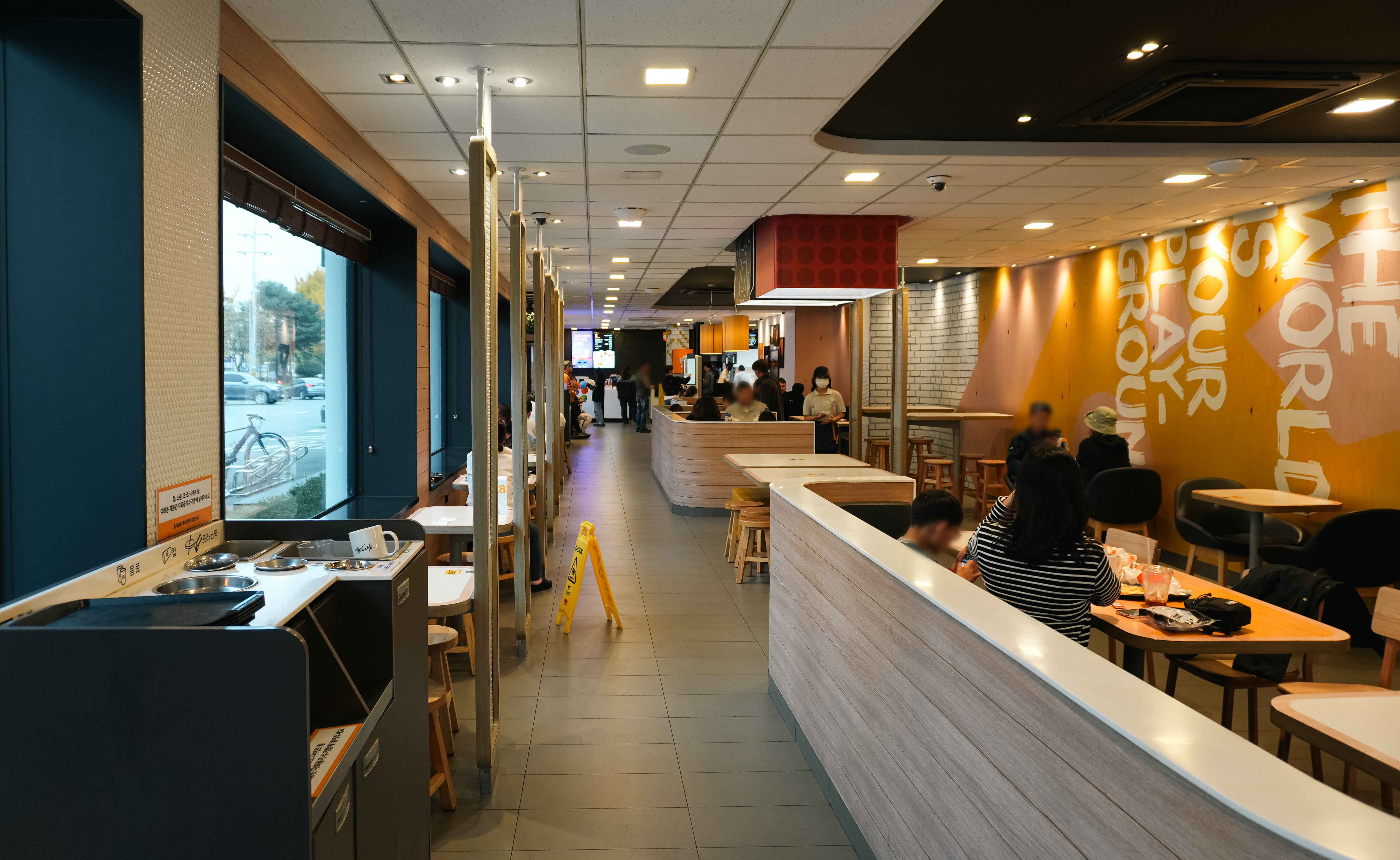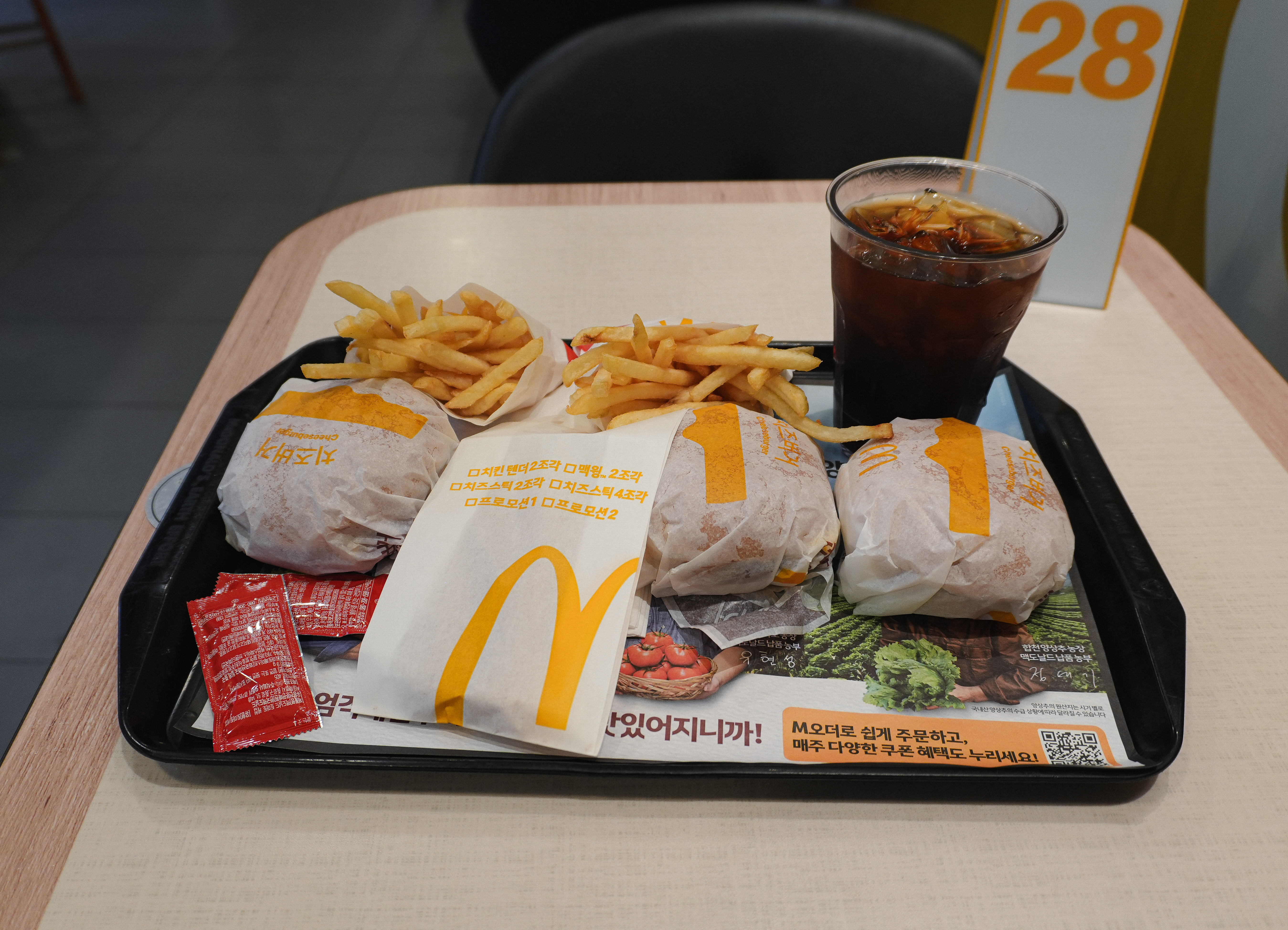 경주용강DT점 맥도날드는 외부의 전통 한옥구조의 기와집 분위기와 다르게 실내는 깔끔하고 세련된 분위기를 하고 있었습니다. 키오스크를 통해 주문할 수 있었고, 테이블오더도 가능했습니다. 심지어 주문할 때 '테이블 텐트'라는 기기를 등록하면 자리까지 맥도날드 크루가 직접 음식을 가져다주기도 했습니다.