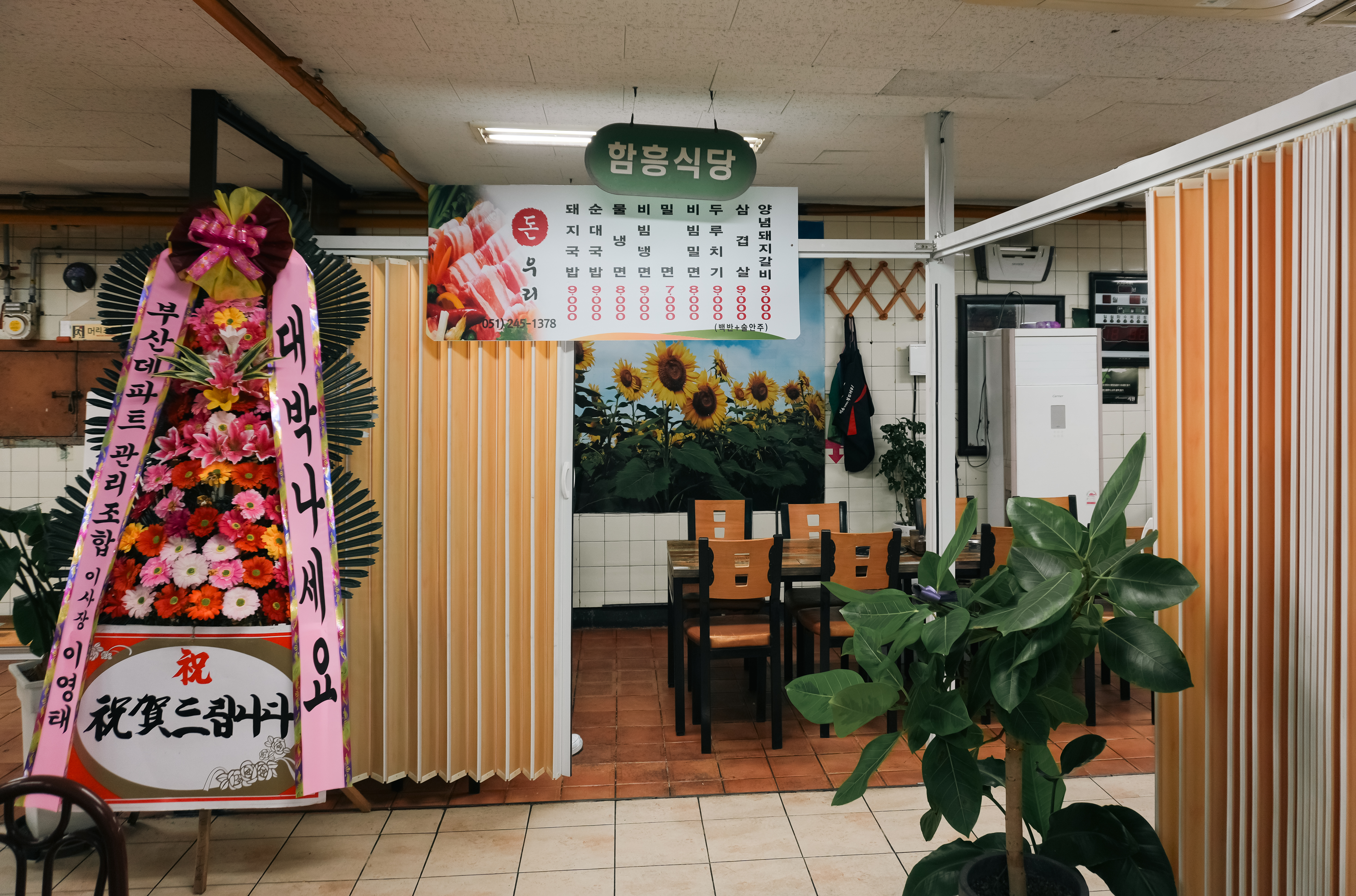 돈우리(구 함흥집)는 부산 중구 중앙대로 21, B1 에 위치해 있었습니다. 부산 데파트 지하상가를 찾으면 되었습니다. 구 함흥식당(함흥집)으로 불리던 이 가게는 제가 점심시간에 방문했는데, 바뀌었다고 해서 다시 다른 가게를 찾아가는 것도 번거롭고 해서 그냥 식사를 하기로 했습니다.
