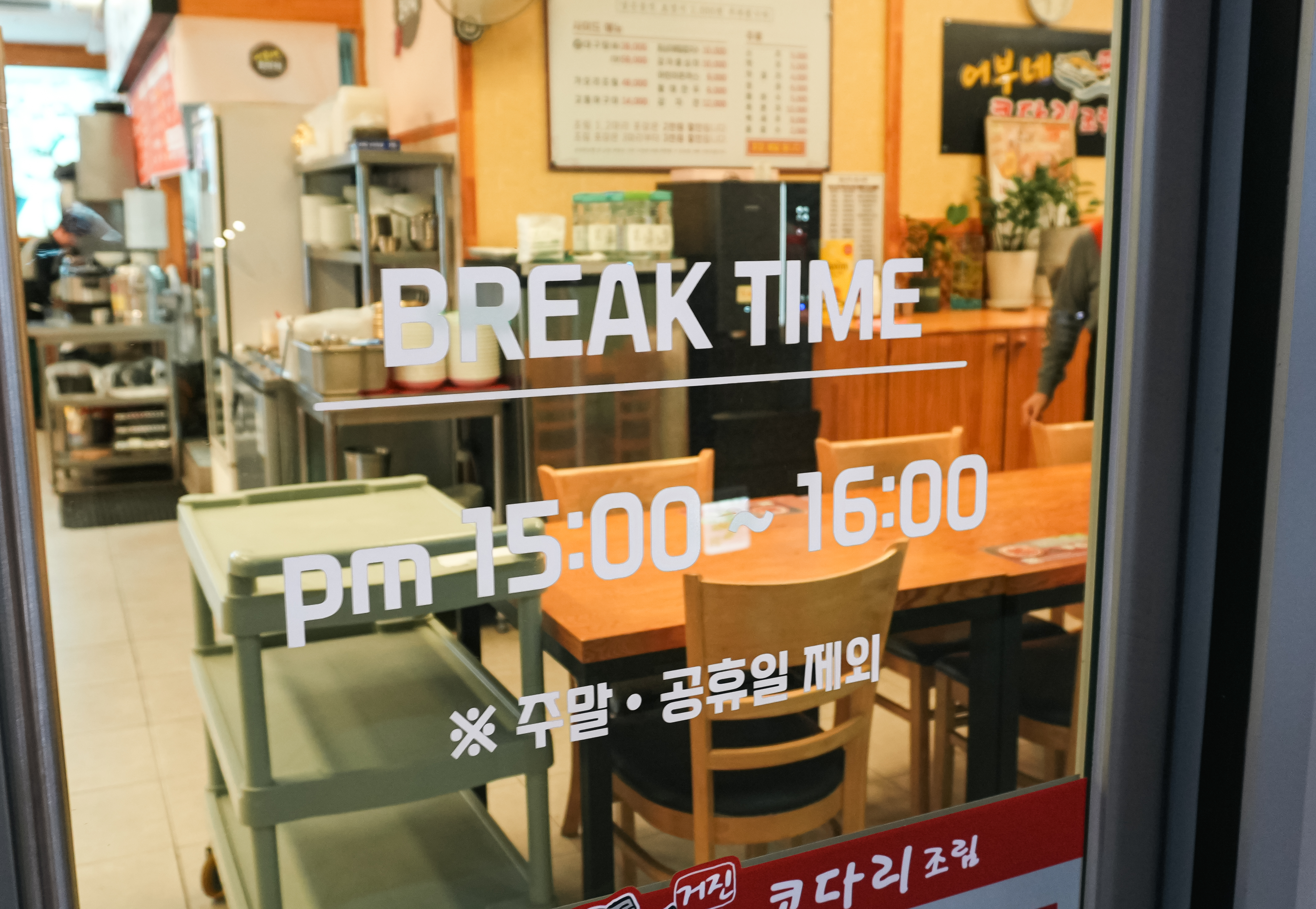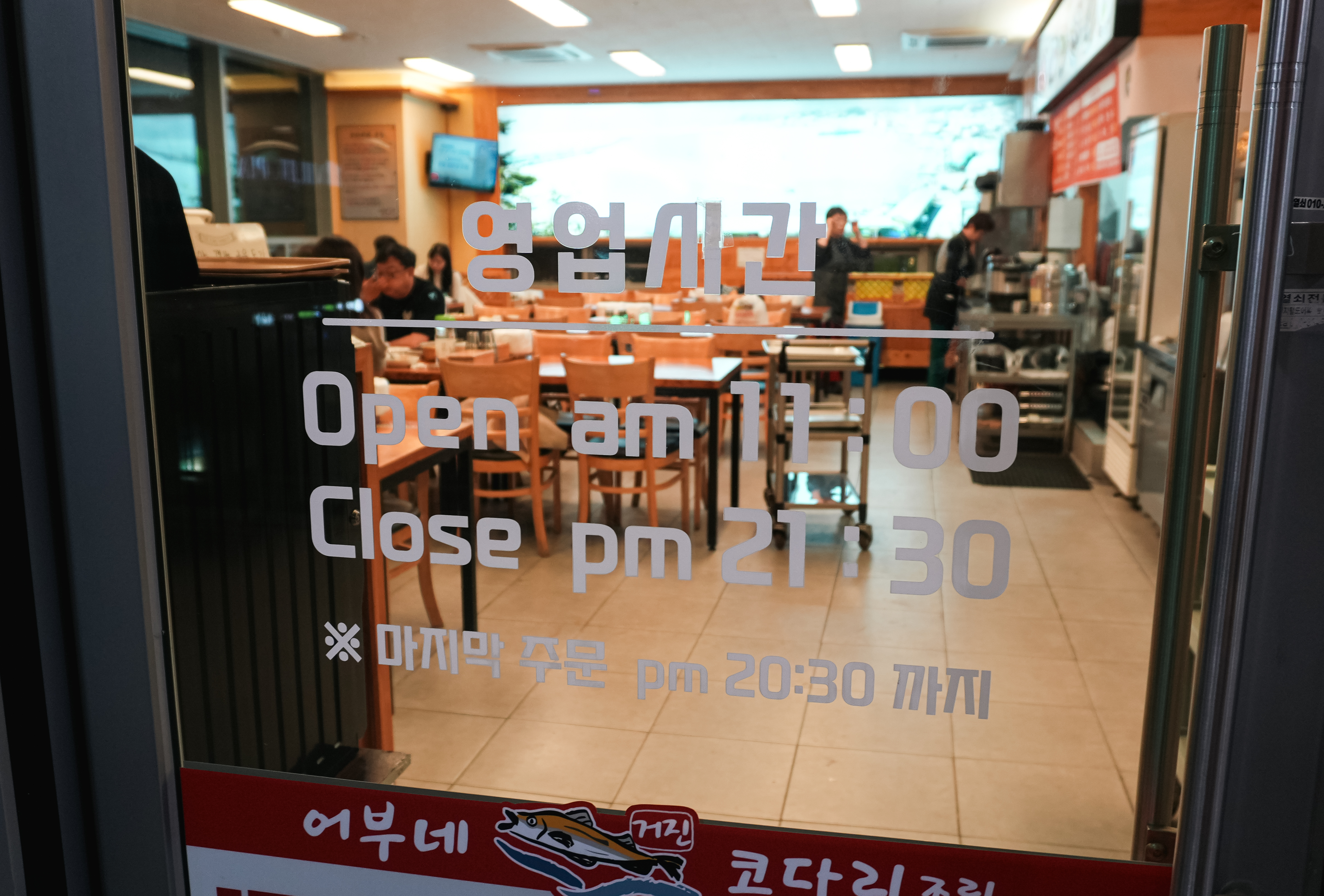 위례 어부네 코다리조림 가게의 영업시간은 11:00~21:30 이며, 브레이크타임은 15:00~16:00 였습니다. 이곳은 원래 다른 곳에 위치한 코다리조림 가게에 가려고 했는데, 재료가 소진되었다고 해서 아쉬운 대로 다른 가게를 찾다가 발견한 곳입니다.