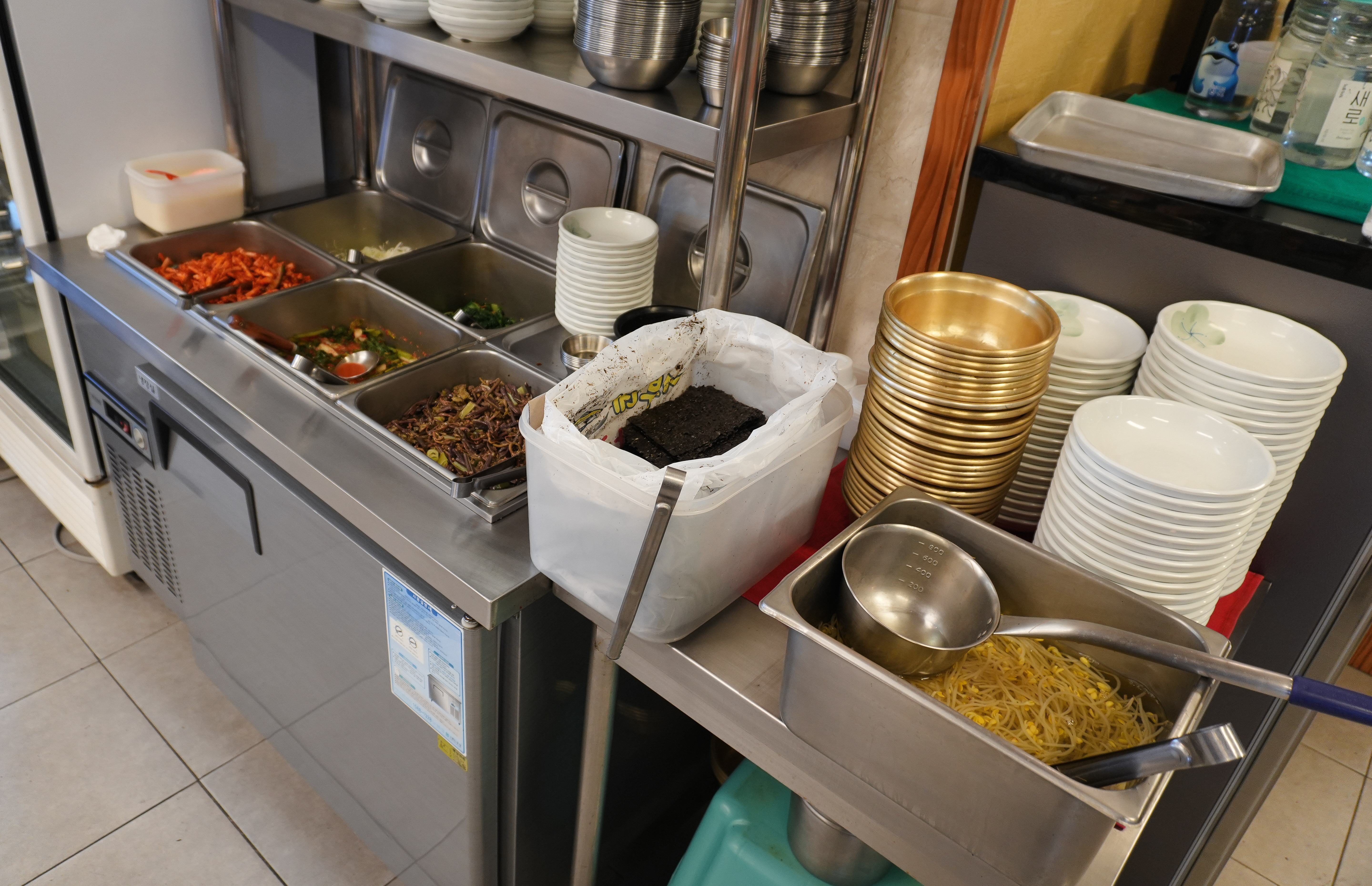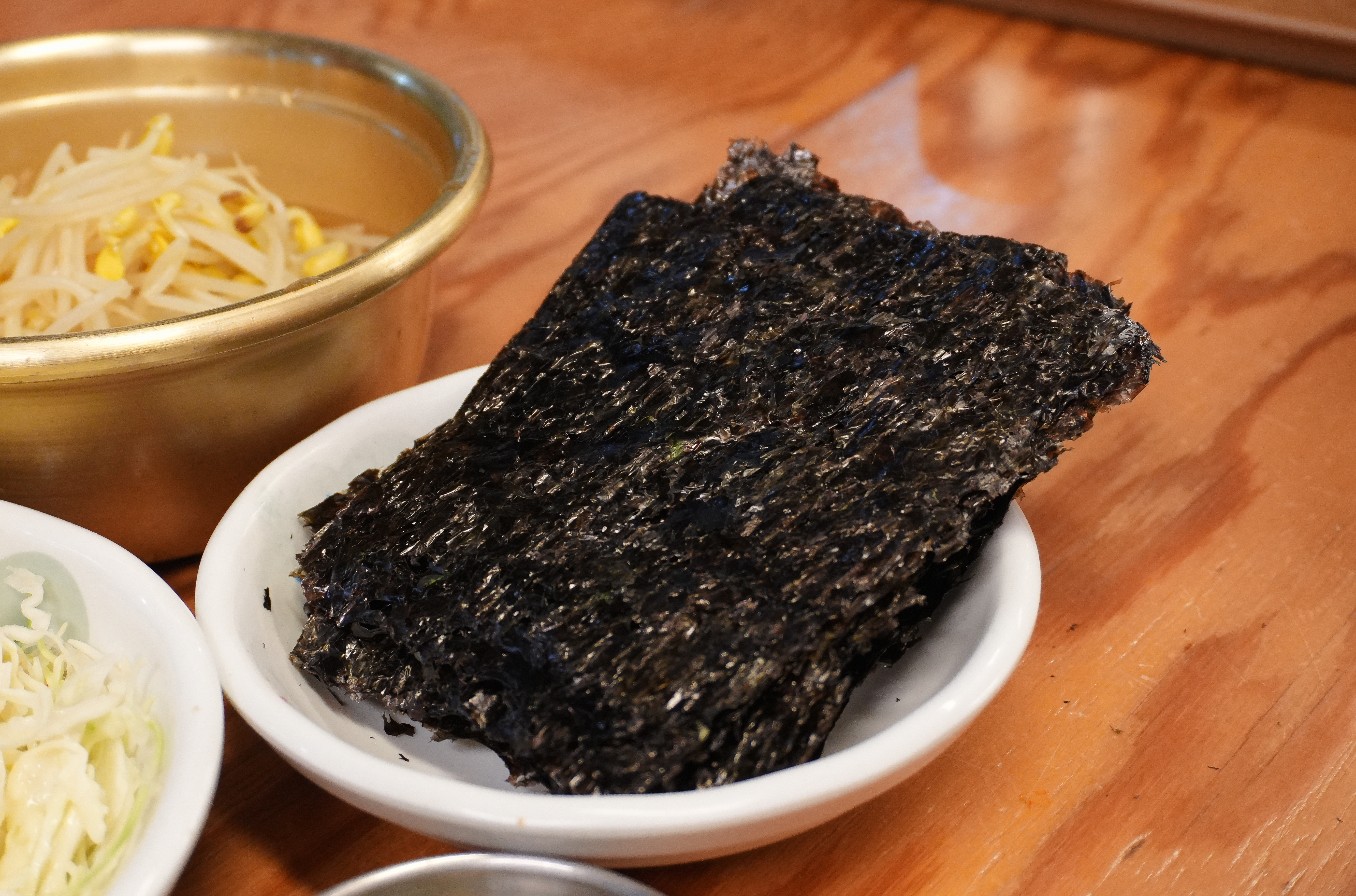 코다리조림은 위와같이 쫄깃한 상태의 반건조 명태에 매콤 달콤한 양념과 떡, 무 등을 넣어 조림으로 만든 메뉴였습니다. 메뉴가 나올 때 사장님이 먹는 방법을 추천해 주셨는데, 코다리조림을 김, 콩나물과 함께 싸서 먹으라고 알려주시더라고요.