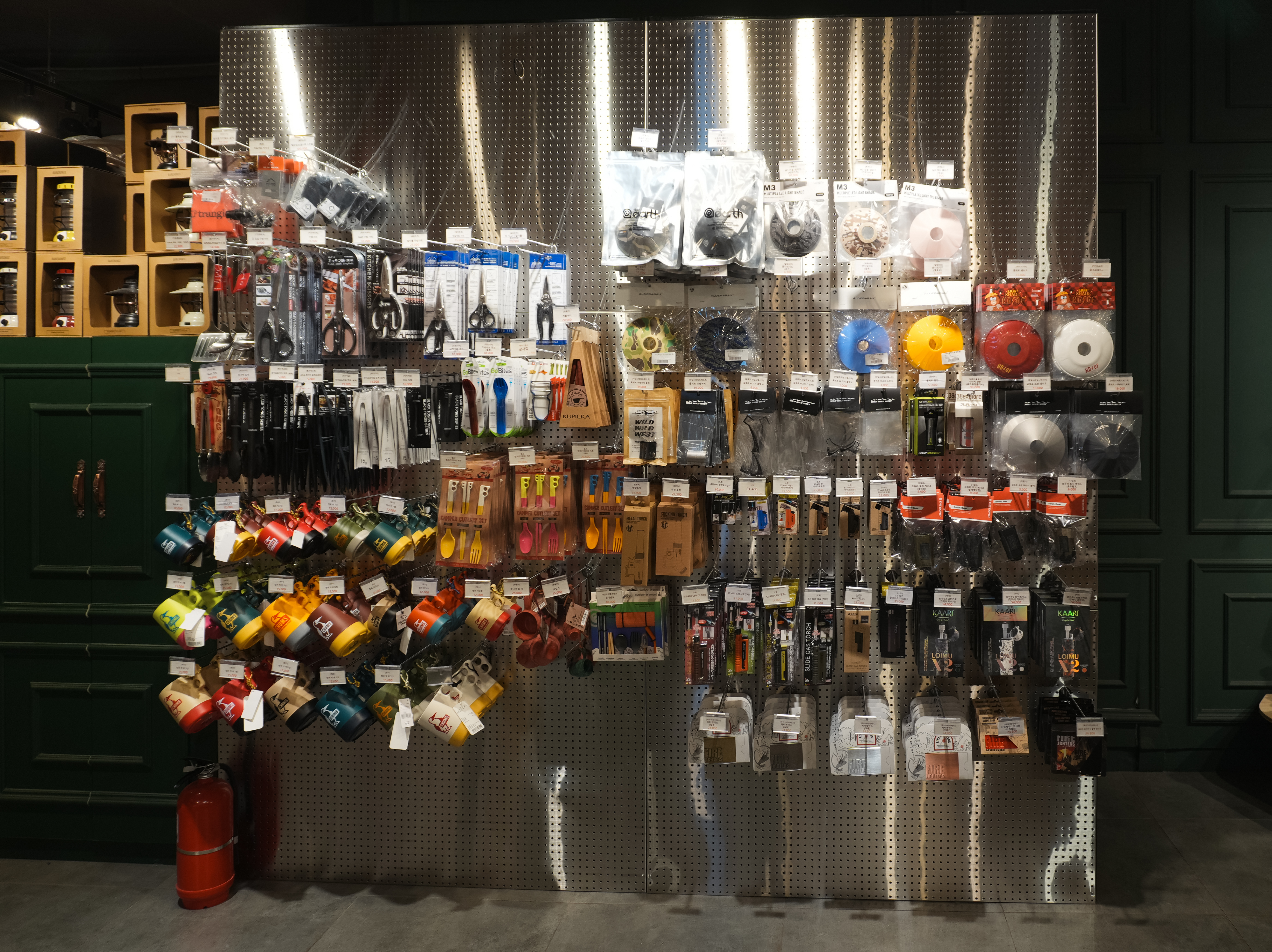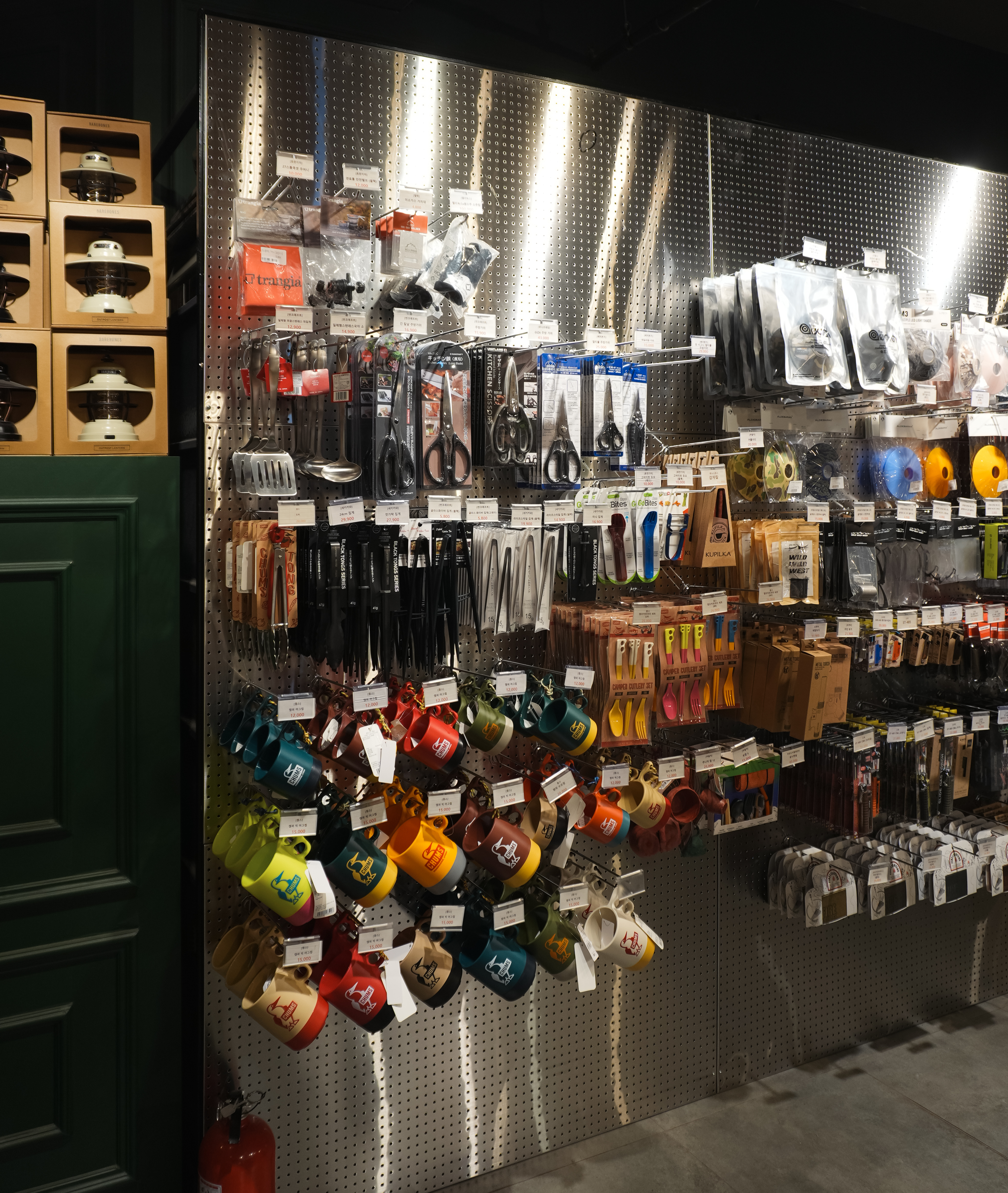 김포 미드나잇피크닉 1층에 들어가면 위와 같이 계산대와 캠핑용 소품들을 구경할 수 있었습니다. 각종 램프와 토치, 식기류, 집게, 가위, 장갑 같은 소형 잡화들이 많이 있었습니다. 저는 캠핑을 잘하지는 않지만, 왜 이리 이런 아웃도어 용품들이 끌리는지. 특히 요즘 유행하는(?) EDC(Everyday Carry)라 불리는 생존용품은 꼭 필요하진 않아도 남자들의 마음을 설레게 하는 것 같습니다.