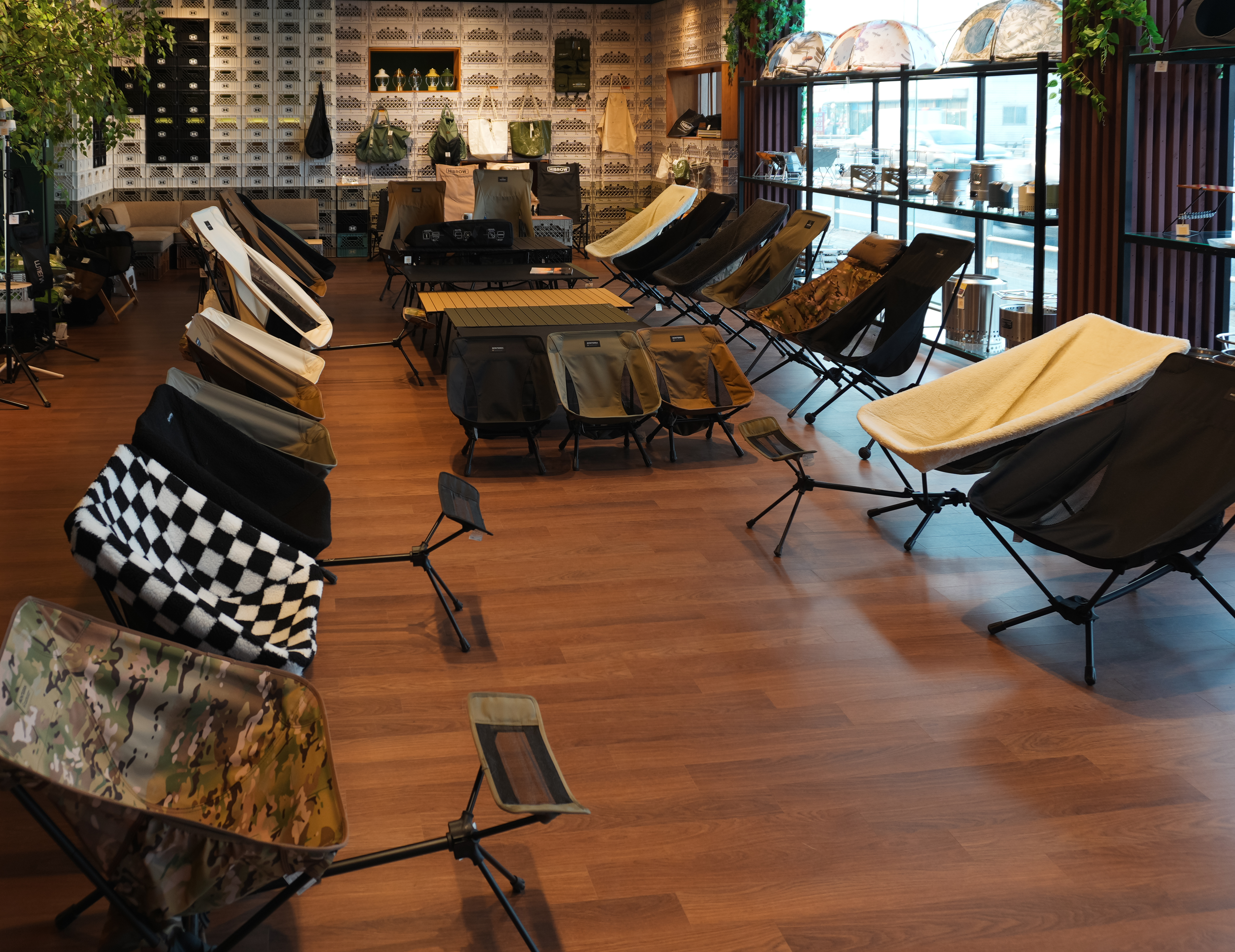 2층을 다 둘러보고 3층으로 올라가면 경량이면서도 튼튼하기로 유명한 프리미엄 캠핑용품 헬리녹스(HELINOX) 제품들과 텐트 같은 제품들이 전시되어 있었습니다. 사실 돈만 좀 여유 있었으면(?) 캠핑을 잘하지는 않지만 이것저것 사고 싶은 게 많았는데, 다양한 실용적이면서 가볍고 튼튼한 제품들이 많아서 자꾸만 유혹이 되더라고요.