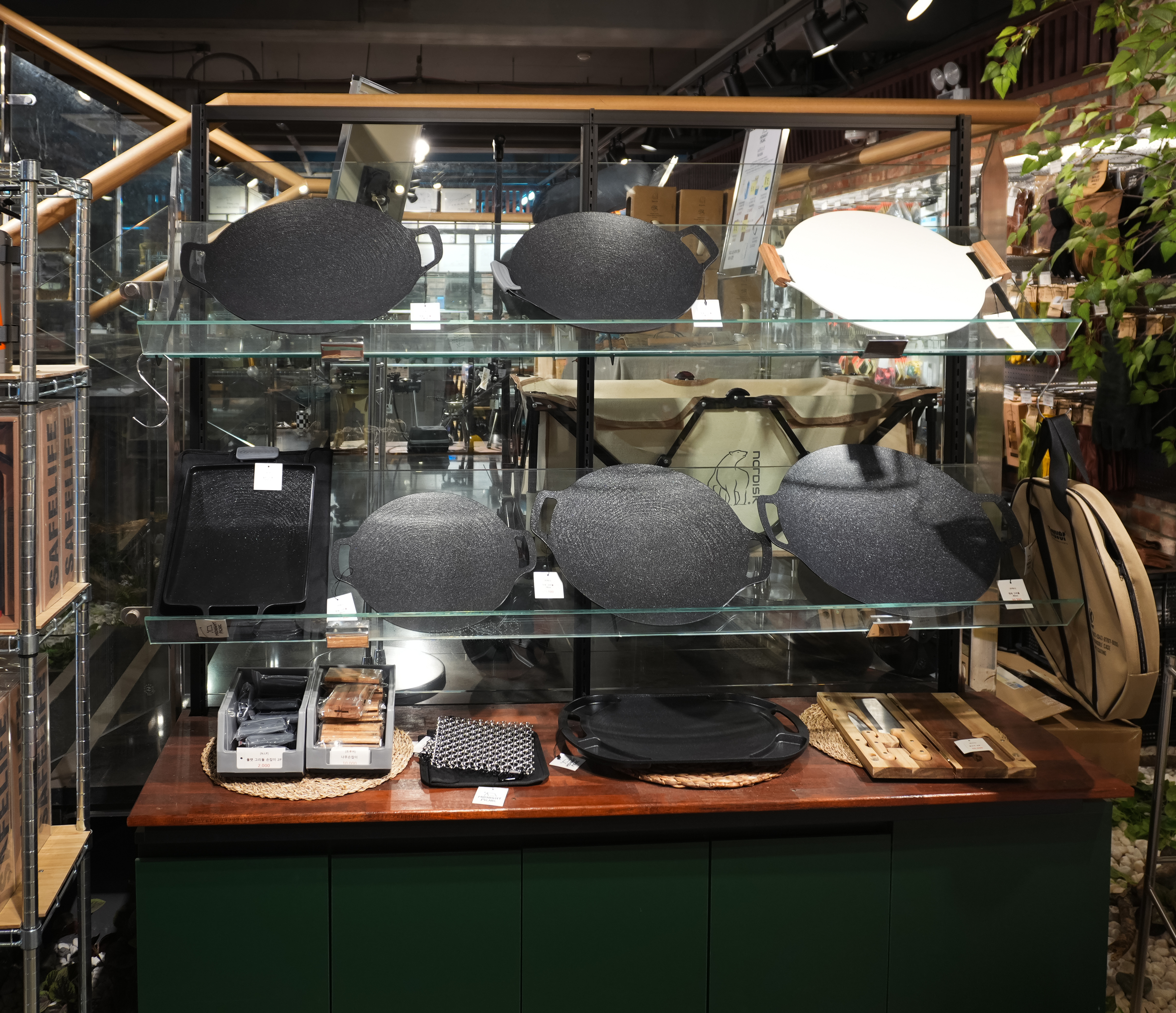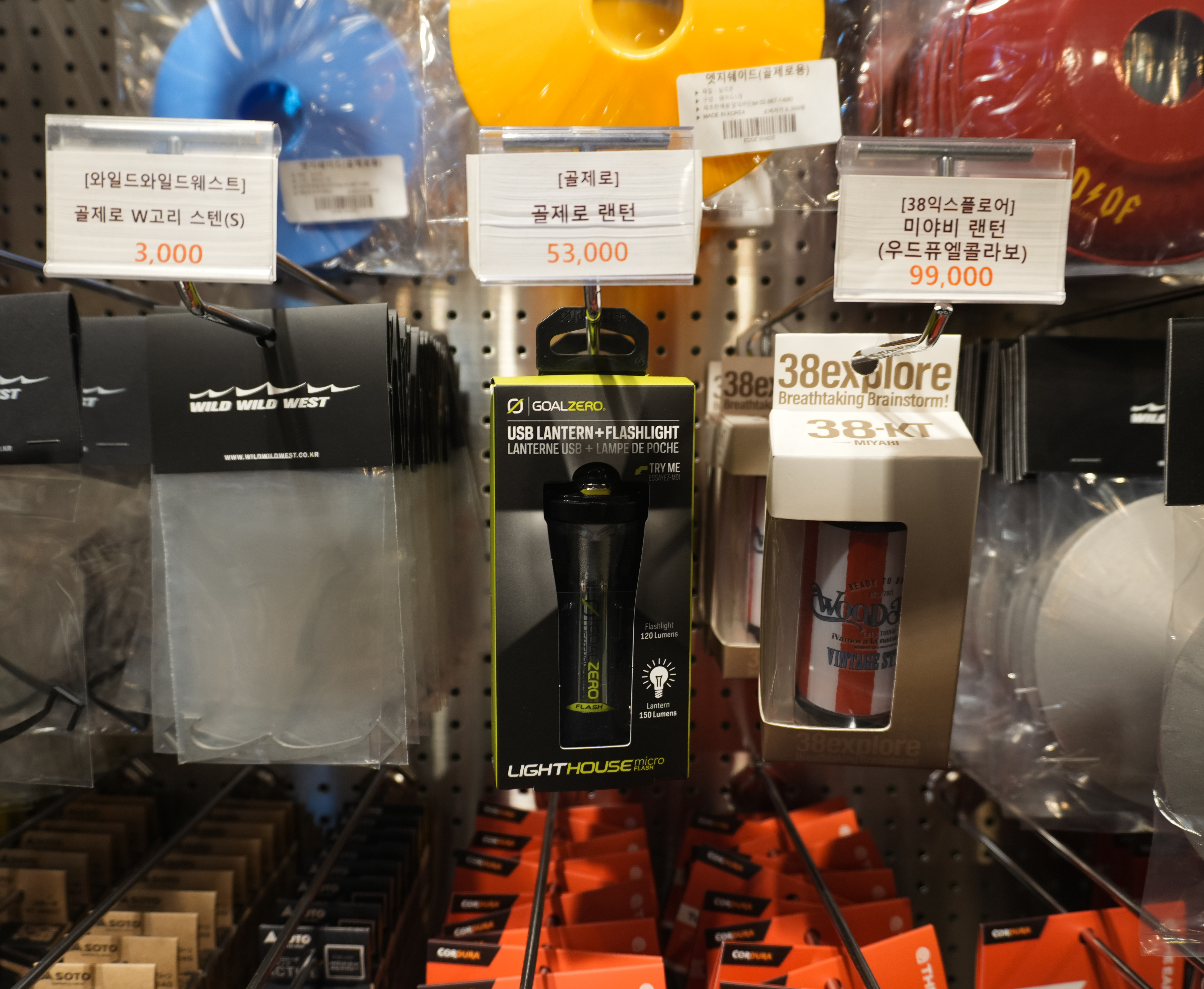 제가 요리에도 관심이 많다 보니 캠핑용 그리들이나 무쇠팬 그리고 식기와 랜턴 같은 제품들도 갖고 싶은 제품이 너무 많아서 둘러보는 내내 설렘 가득했던 시간이었던 것 같습니다. 가격대는 일부 온라인 보다 비싼 제품도 있었고, 할인하는 제품들은 저렴한 제품도 있는 것 같더라고요. 특히 제가 갖고 있는 골제로나 기타 랜턴에 장착할 수 있는 랜턴갓 같은 액세서리도 다양하게 구비되어 있어서 다음에 작정하고(?) 돈 싸 들고 다시 한번 방문해야겠습니다.(ㅋㅋ)