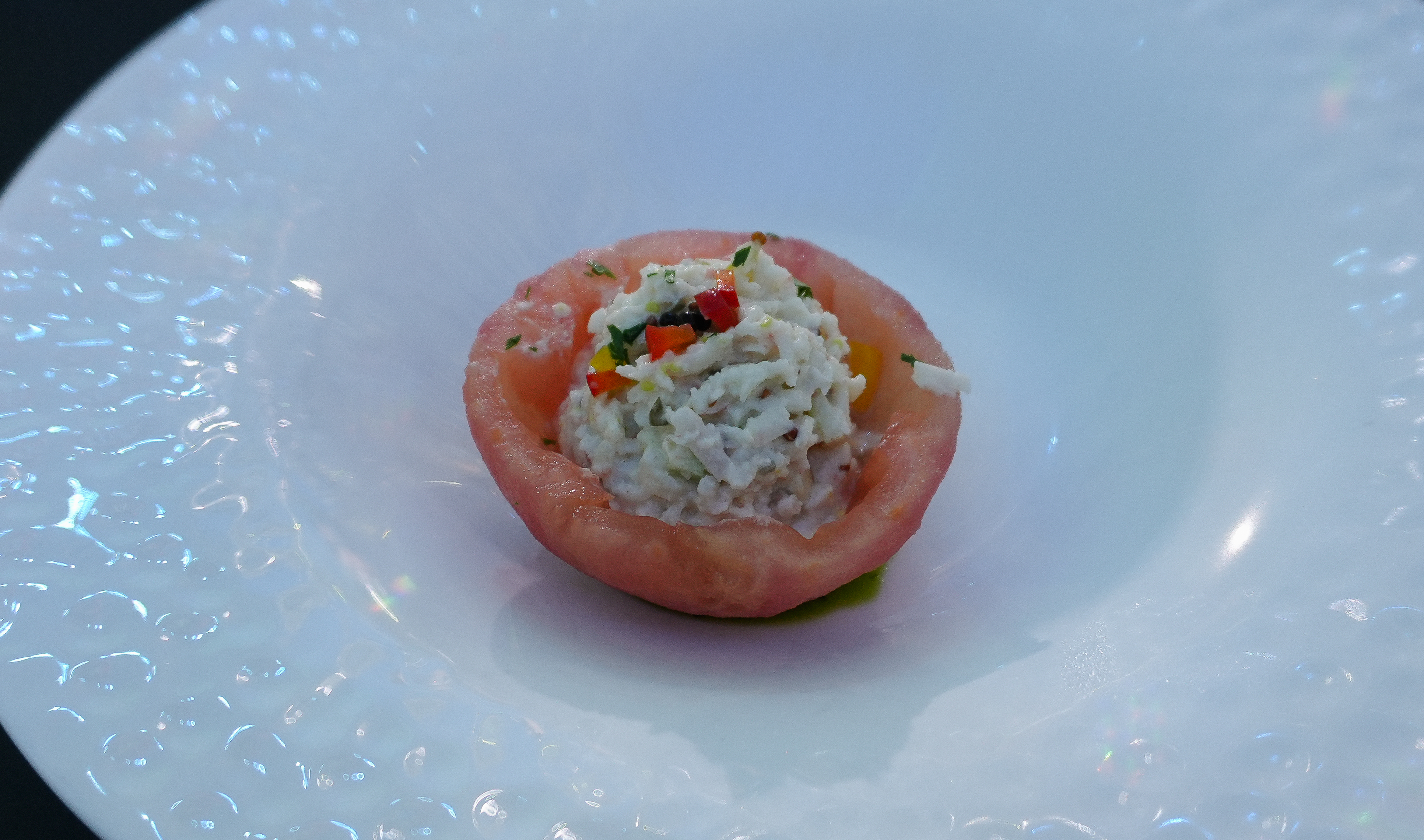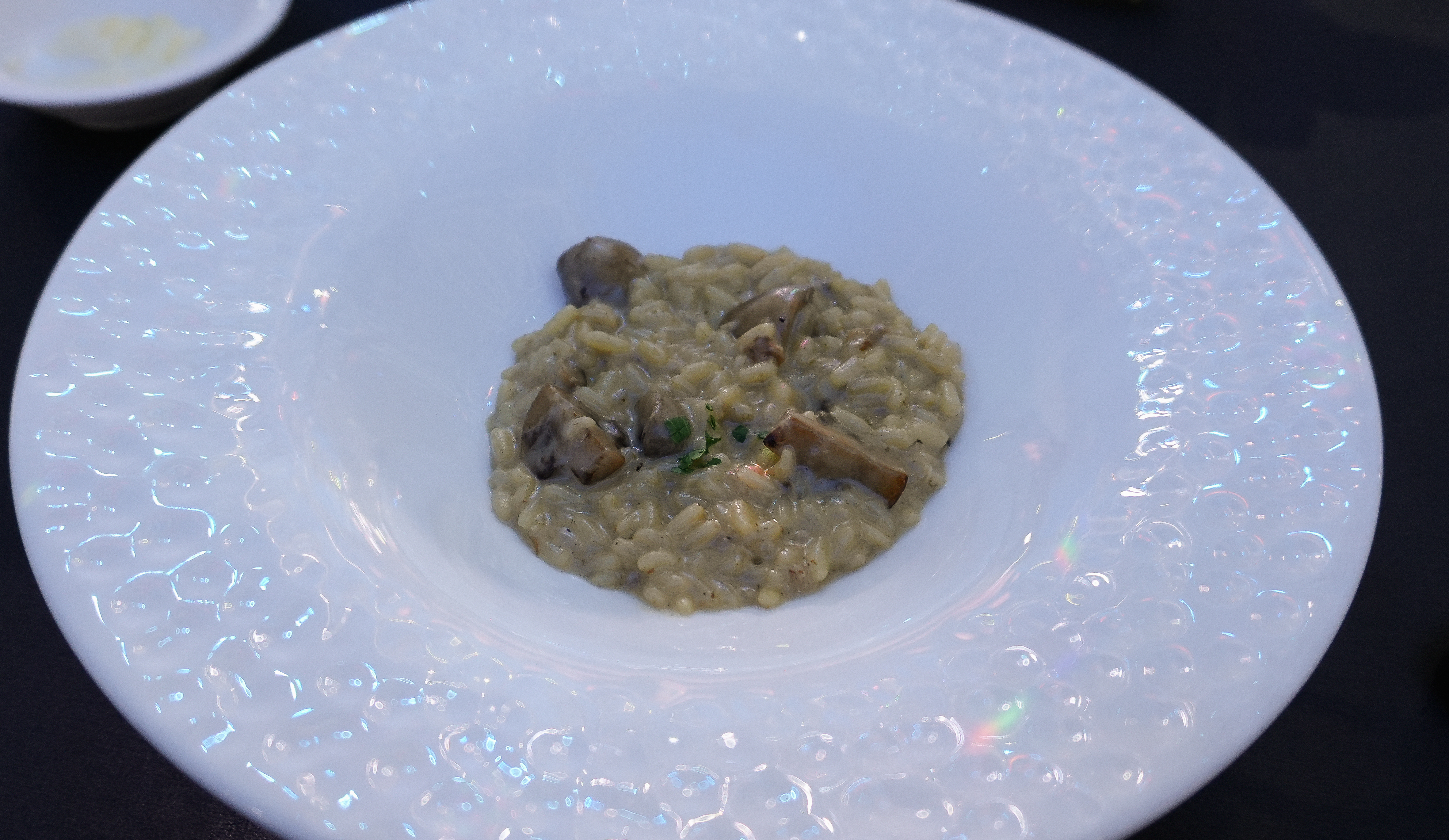 다음으로 나온 메뉴는 토마토 게살 샐러드와 버섯크림 리조또입니다. 토마토컵 게살 샐러드는 토마토가 신 맛이 강하지 않고 토마토의 향과 게살의 조화가 잘 이루어져 맛이 좋았고, 포르치니 향의 버섯 크림 리조또는 진하고 꾸덕한 질감의 리조또였습니다. 쌀을 일부러 살짝 덜 익혀서 내었는지 리조또의 쌀을 씹는 식감이 느껴졌습니다.