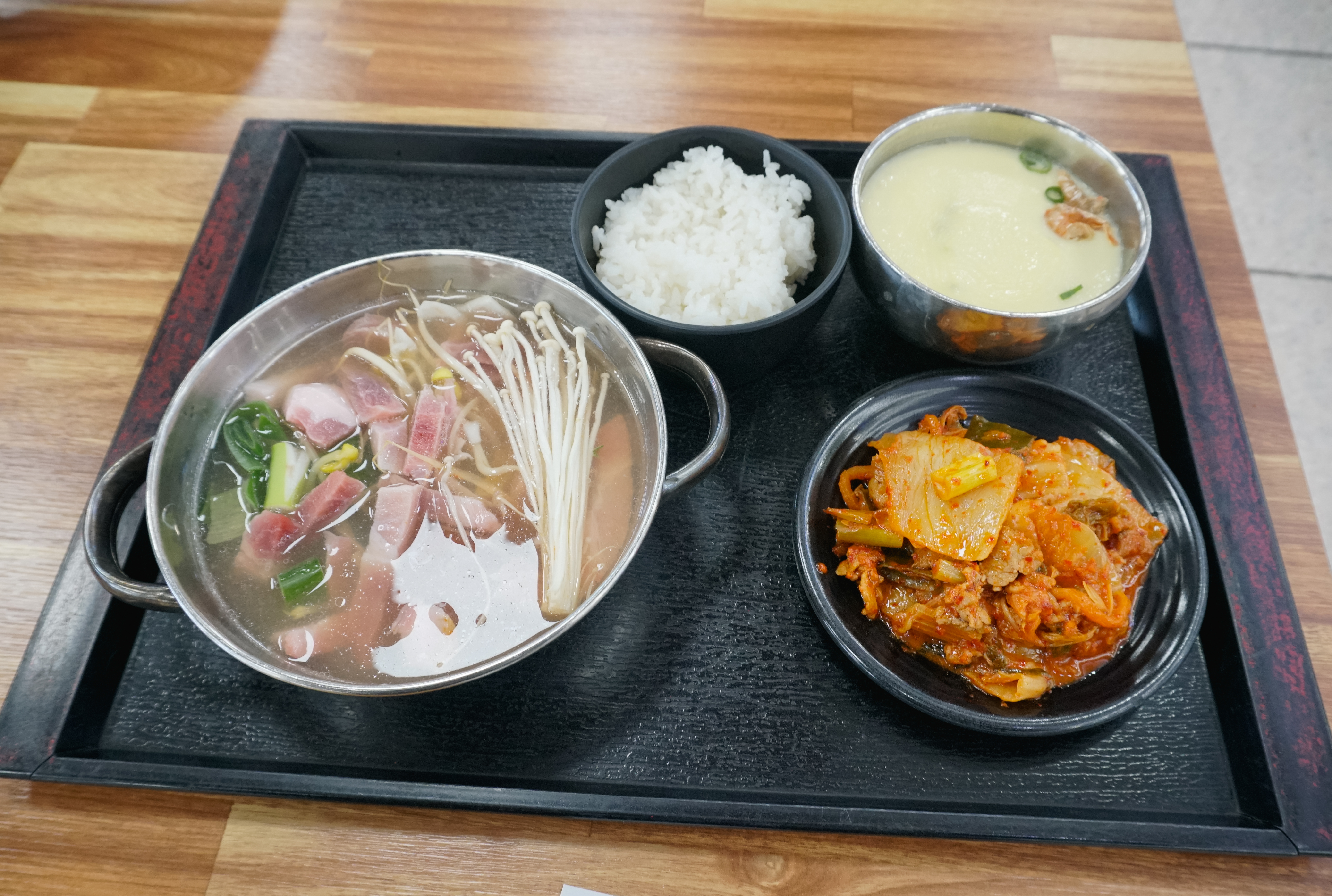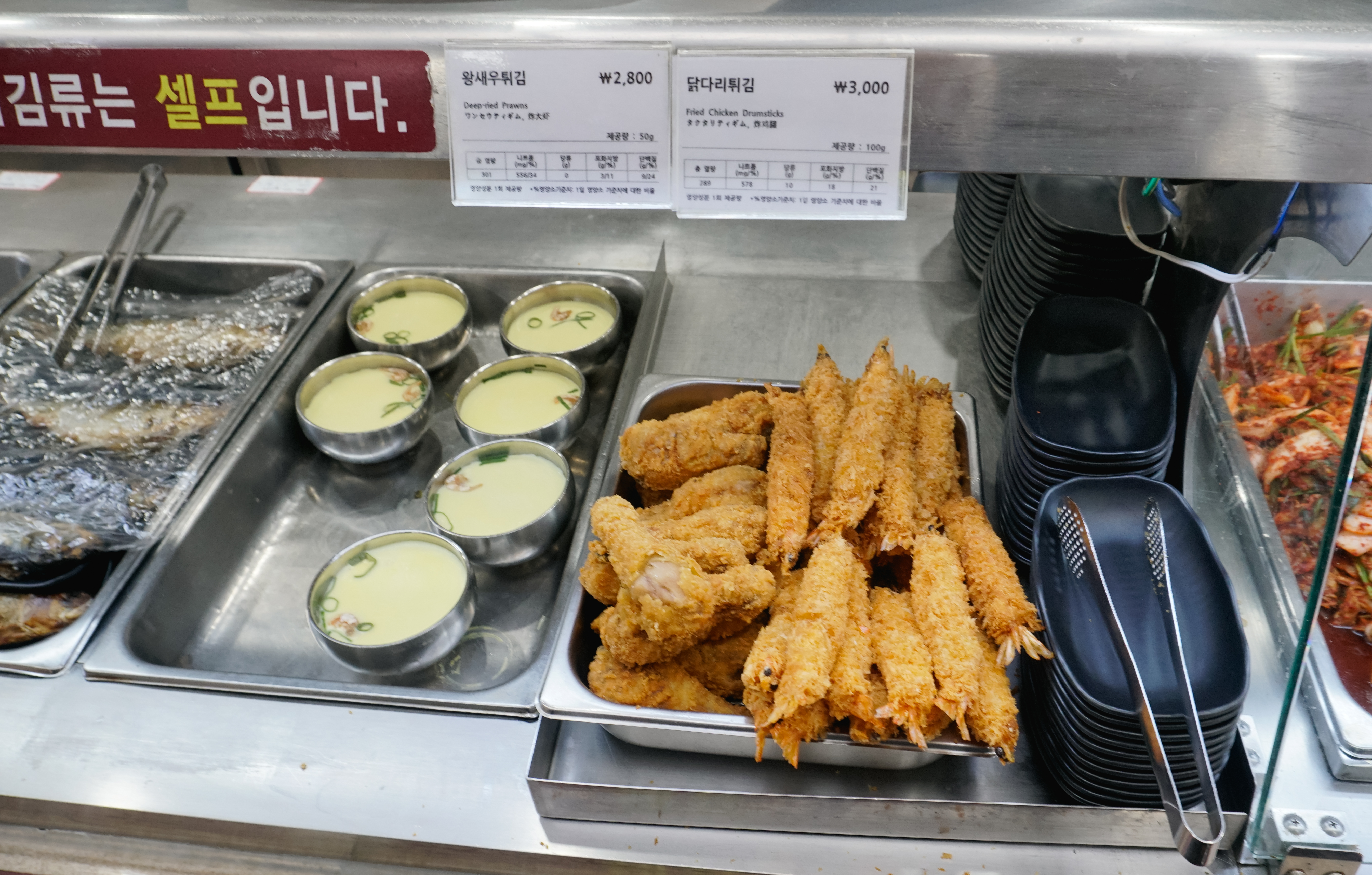 시간을 좀 보내고 이번에는 저녁식사를 위해 다시 칠곡휴게소 서울방향 자율식당을 찾았습니다. 이번에는 돼지찌개와 돼지고기김치볶음, 새우계란찜을 골랐습니다. 계란찜은 일본식 차완무시처럼 부드럽게 잘 만들어져 맛있더라고요.
