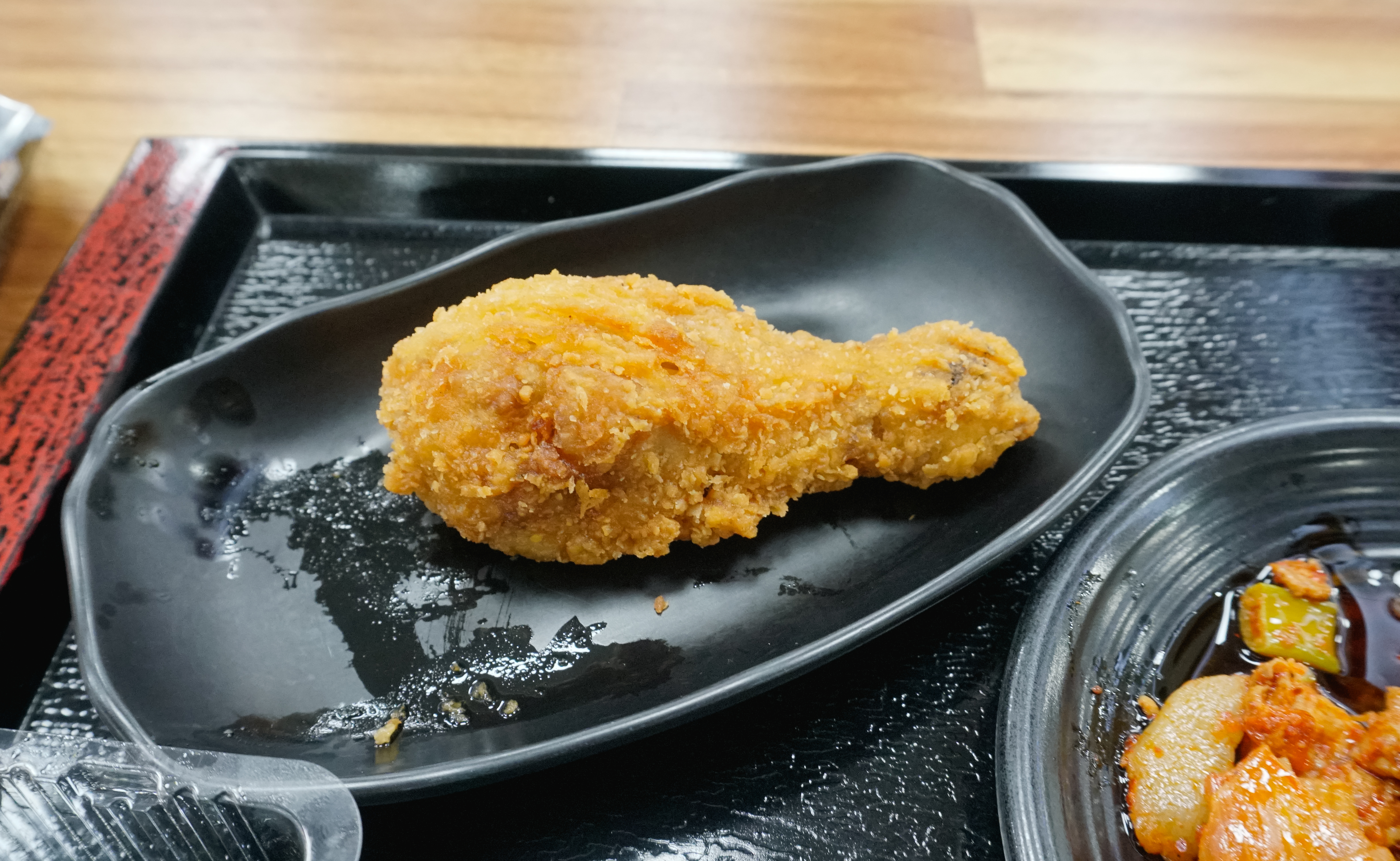 점심은 이렇게 골라봤습니다. 카레와 밥, 닭다리튀김, 돼지고기두루치기, 김. 가격대는 고르는 것에 따라 다르지만 닭다리튀김 3,000원, 돼지고기두루치기 4,000원으로 살짝 비싼 감은 있었습니다.