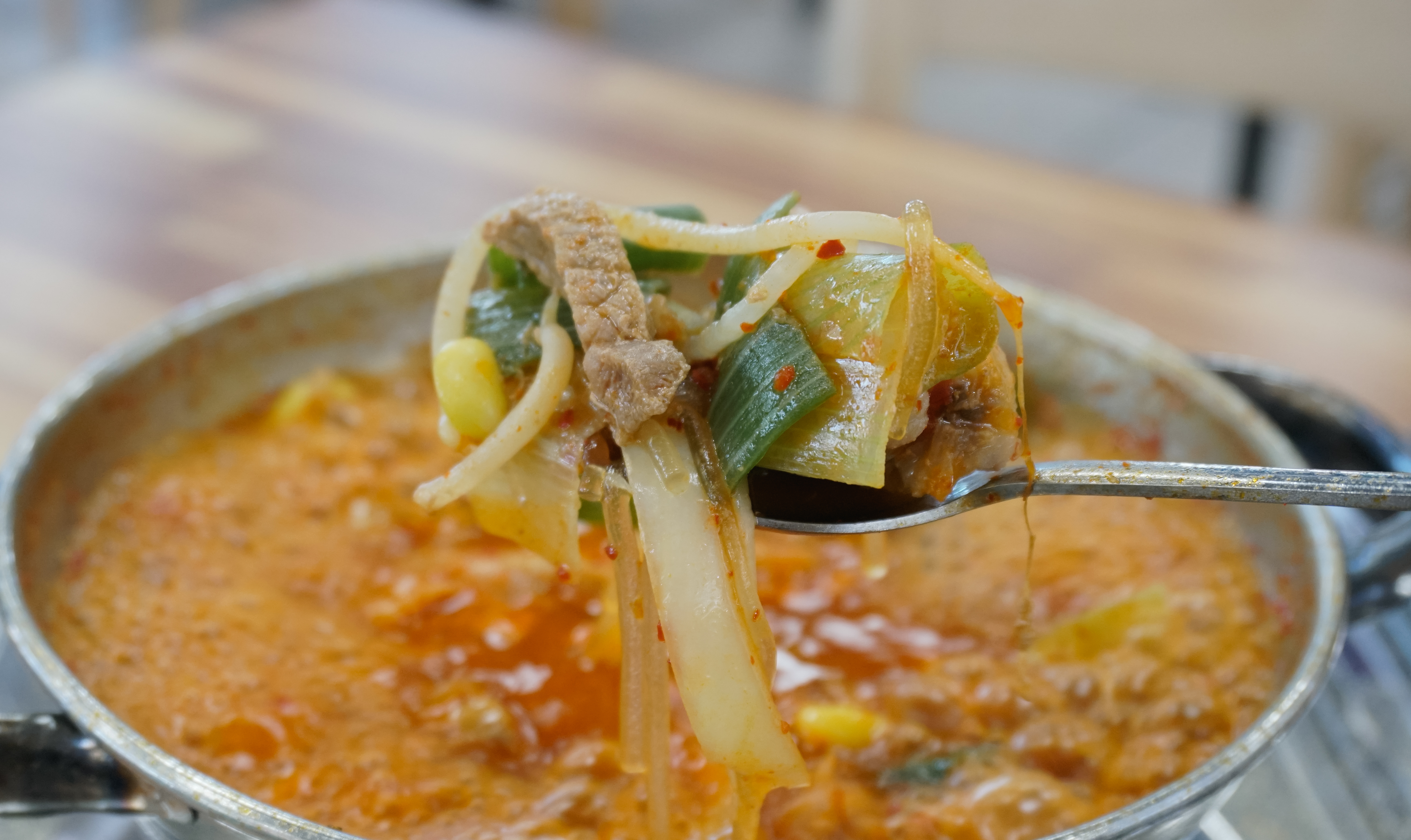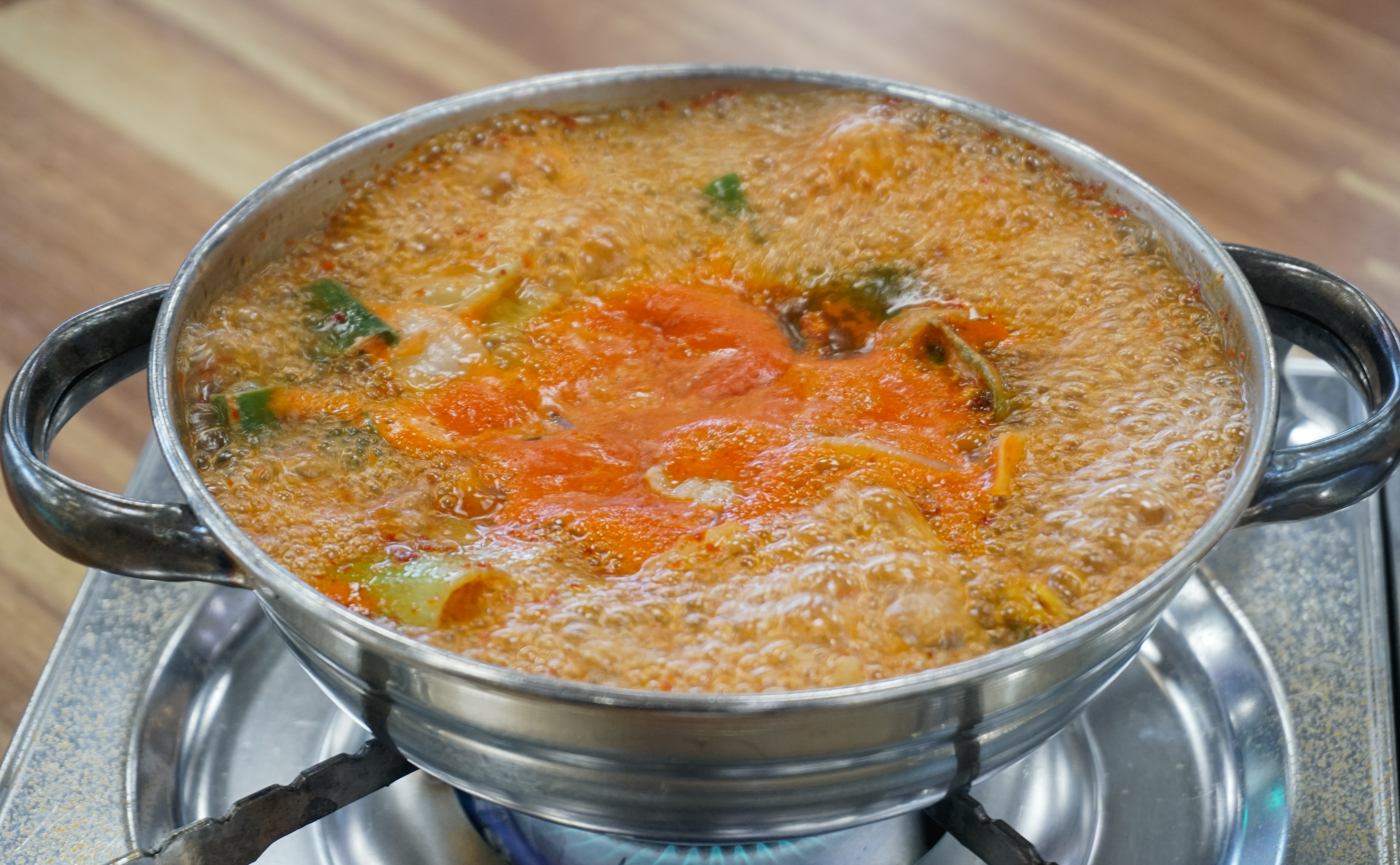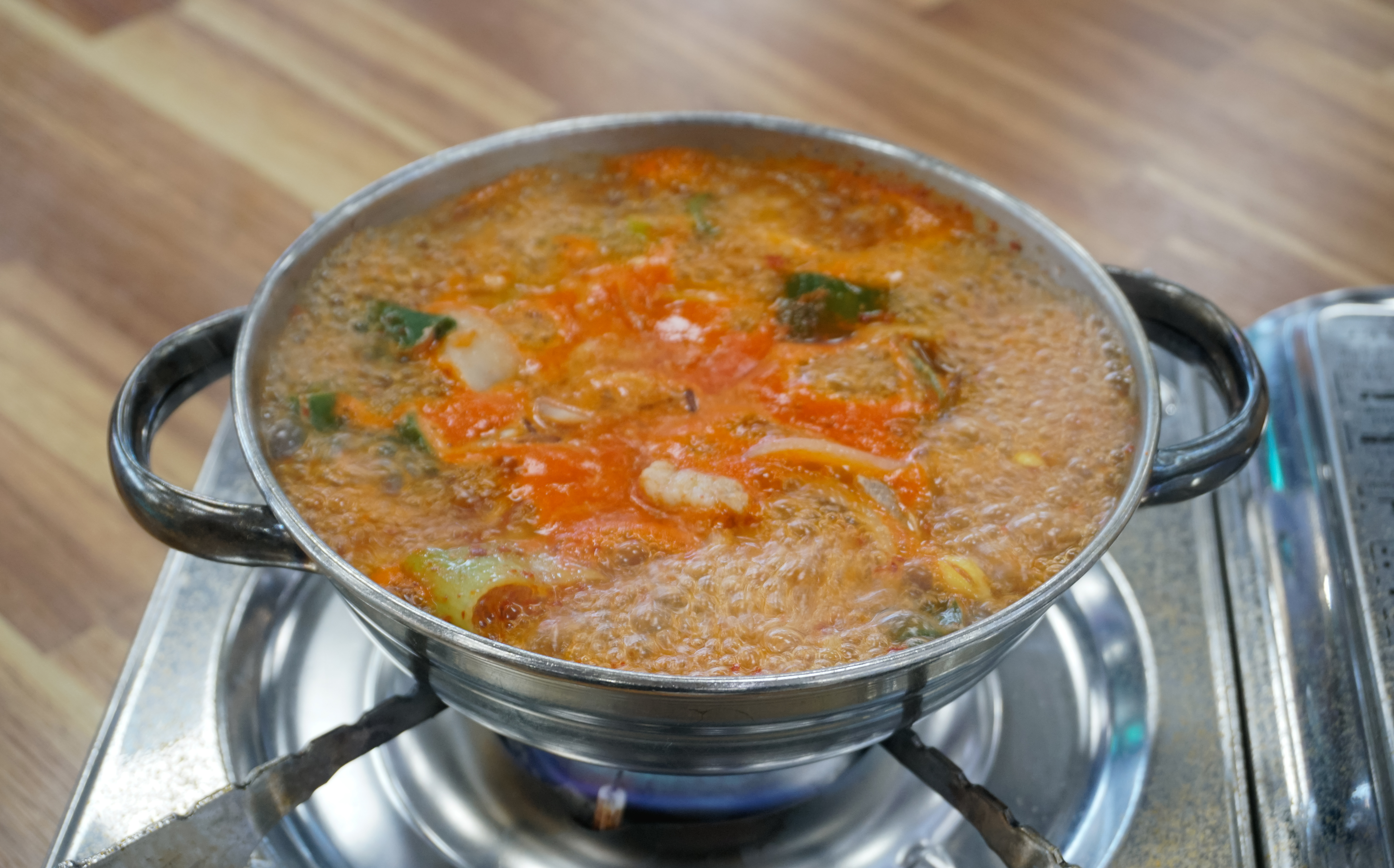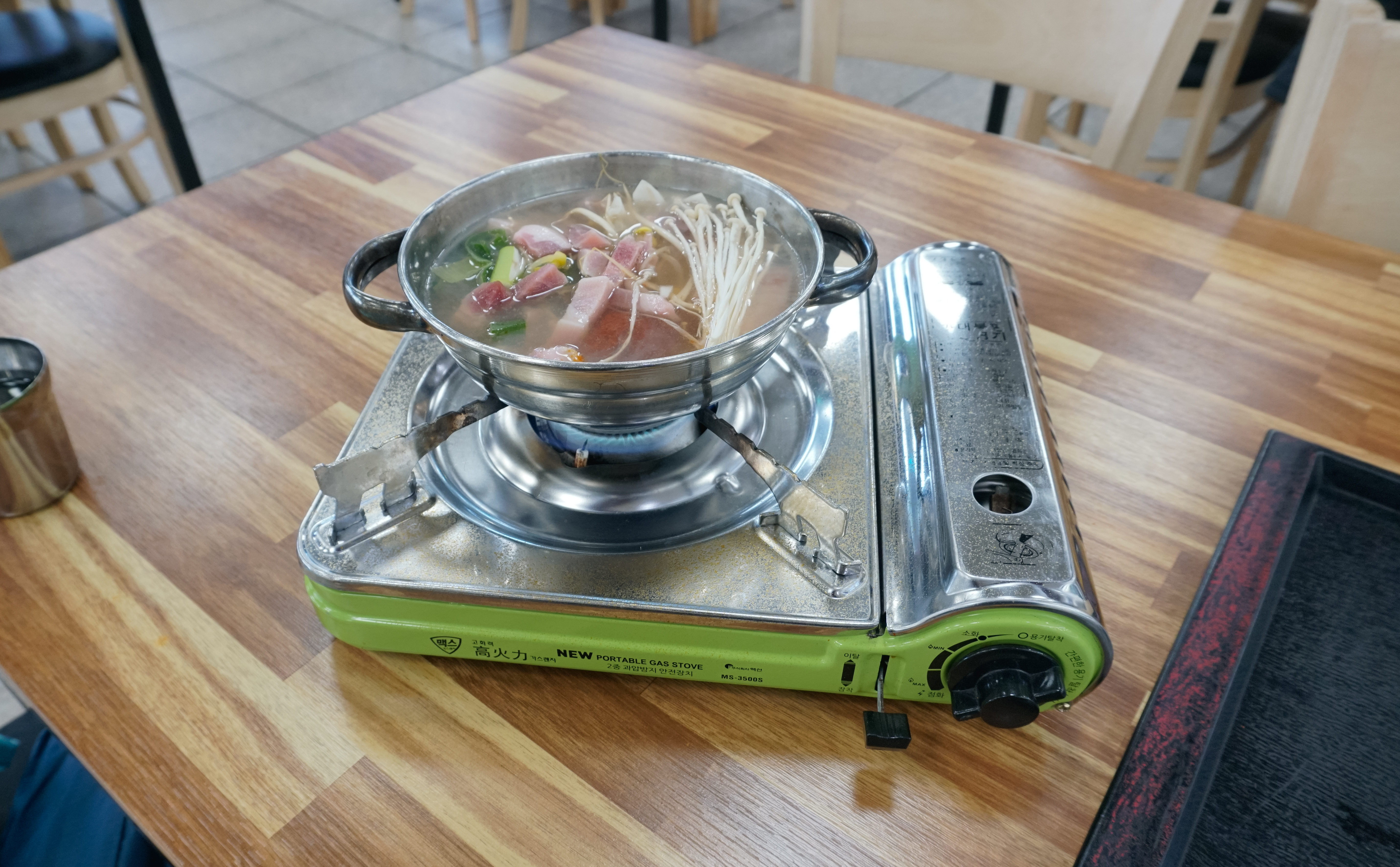 냄비에 불을 올려서 돼지찌개를 끓였습니다. 대부분 휴게소에서 판매하는 메뉴들은 조리가 완료된 상태에서 바로 식사만 했는데, 직접 끓여 먹으니 더 맛있게 느껴지는 것 같더라고요. 아예 생고기부터 시작해 잘 익혀서 찌개를 끓여 먹는데 생각보다 맛이 나쁘지 않더라고요.