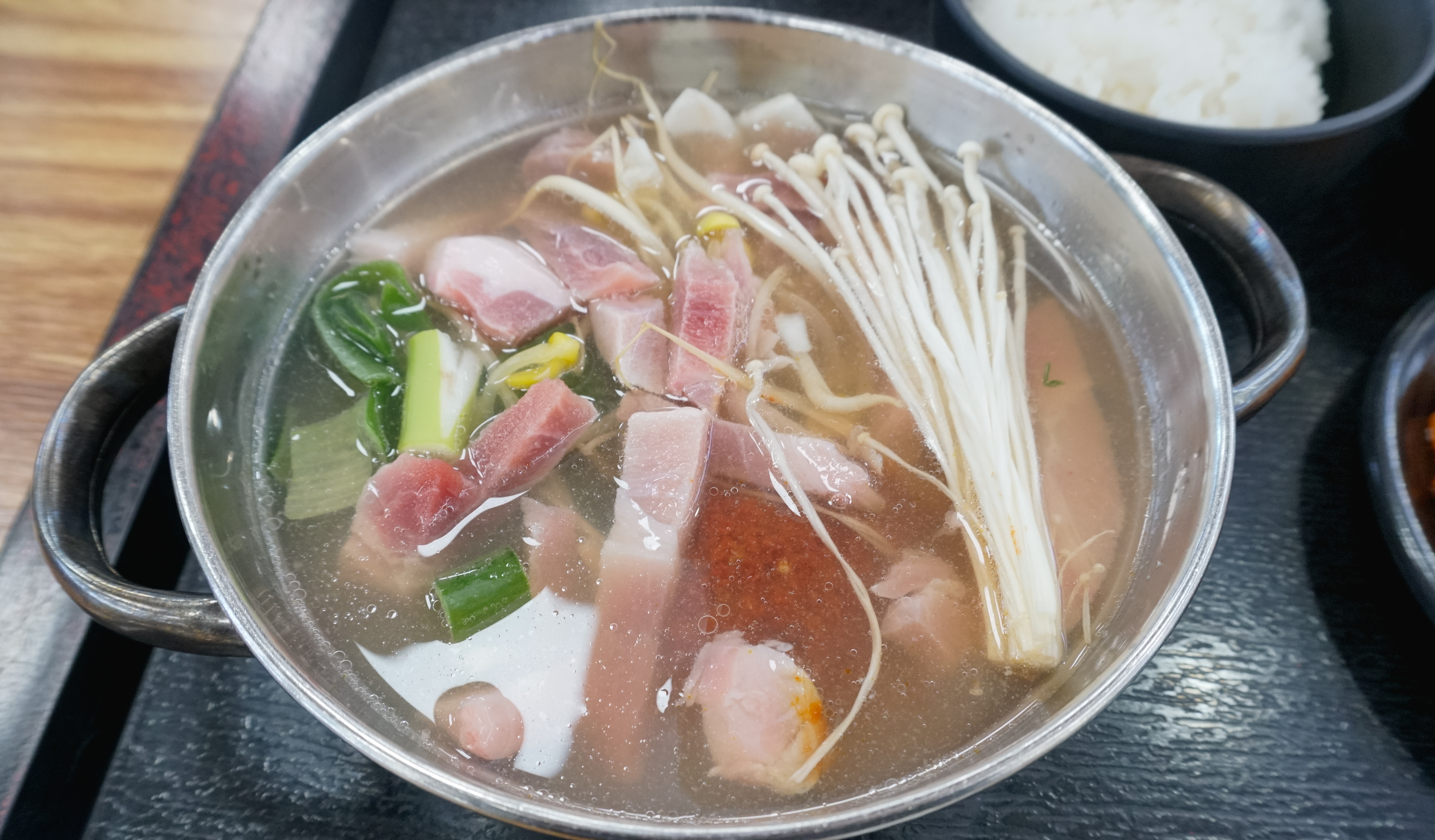 시간을 좀 보내고 이번에는 저녁식사를 위해 다시 칠곡휴게소 서울방향 자율식당을 찾았습니다. 이번에는 돼지찌개와 돼지고기김치볶음, 새우계란찜을 골랐습니다. 계란찜은 일본식 차완무시처럼 부드럽게 잘 만들어져 맛있더라고요.