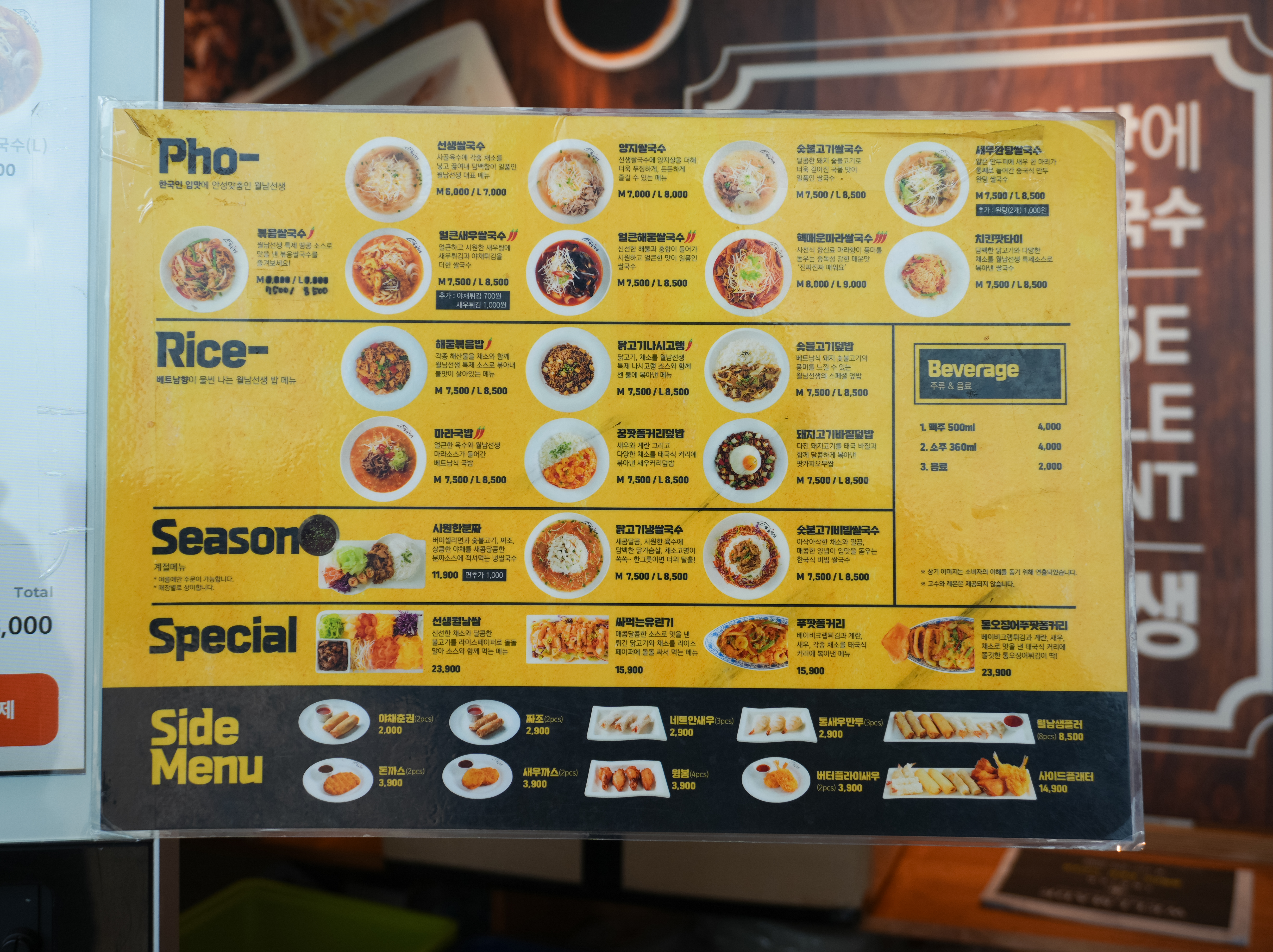 그래도 실내로 들어가면 나름 깔끔하게 잘 관리되어 있었고, 전체적으로 아늑한 분위기에 먹을 수 있었습니다. 이제 강화 쌀국수 맛집 월남선생의 메뉴를 살펴보겠습니다.