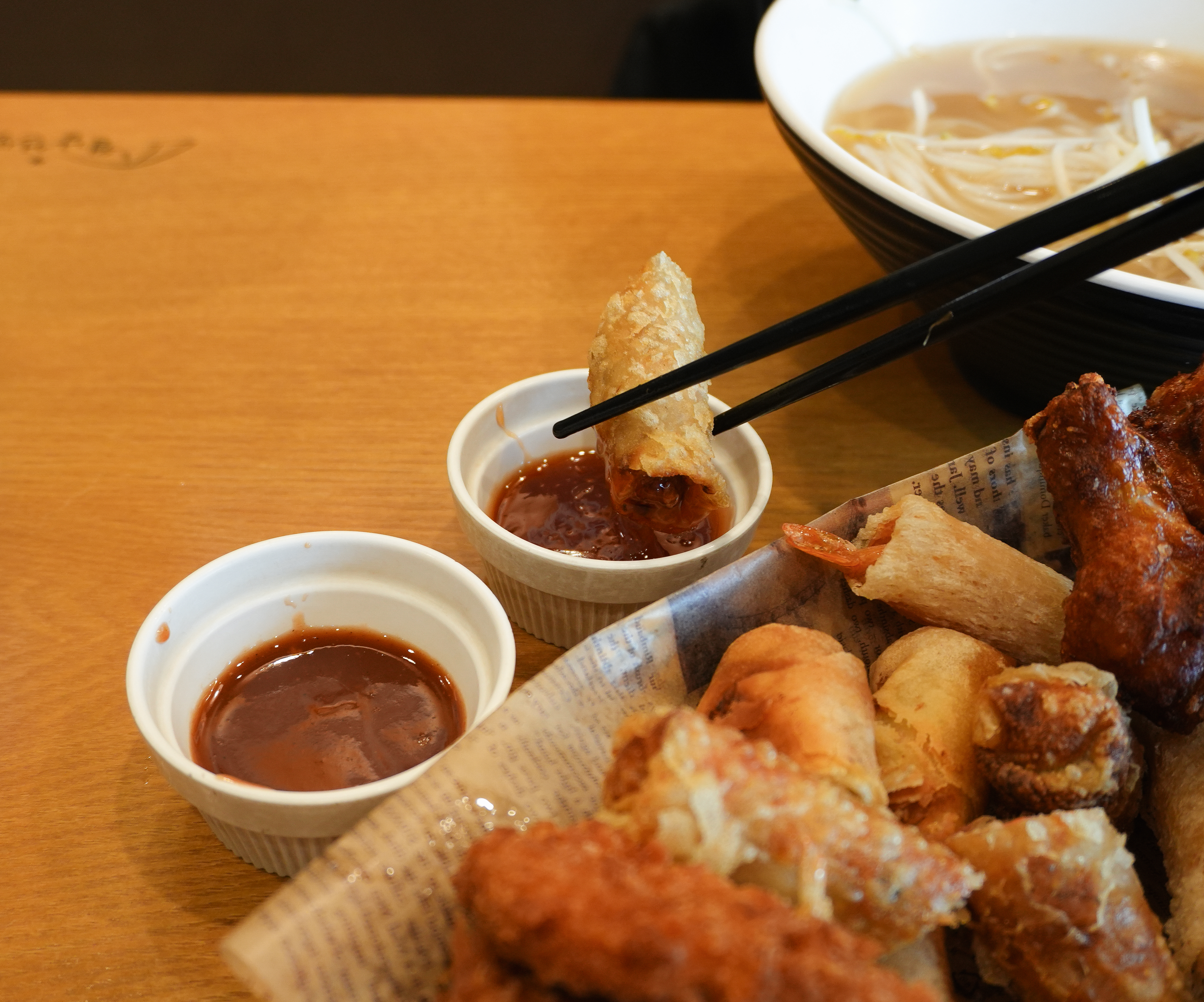 그래도 모듬형태로 나오는 사이드플래터는 먹을만했는데, 얼큰해물쌀국수는 뭔가 배신감이 큰 메뉴였습니다. 월남선생이 프랜차이즈 가게인것 같은데, 뭔가 이렇게 라면 건더기 스프마냥 조금 들어있는 해물 메뉴는 처음봐서,, 뭐라 표현할 방법이 없네요. 이정도면 해물맛 쌀국수라고 하는 게 맞을지도.
