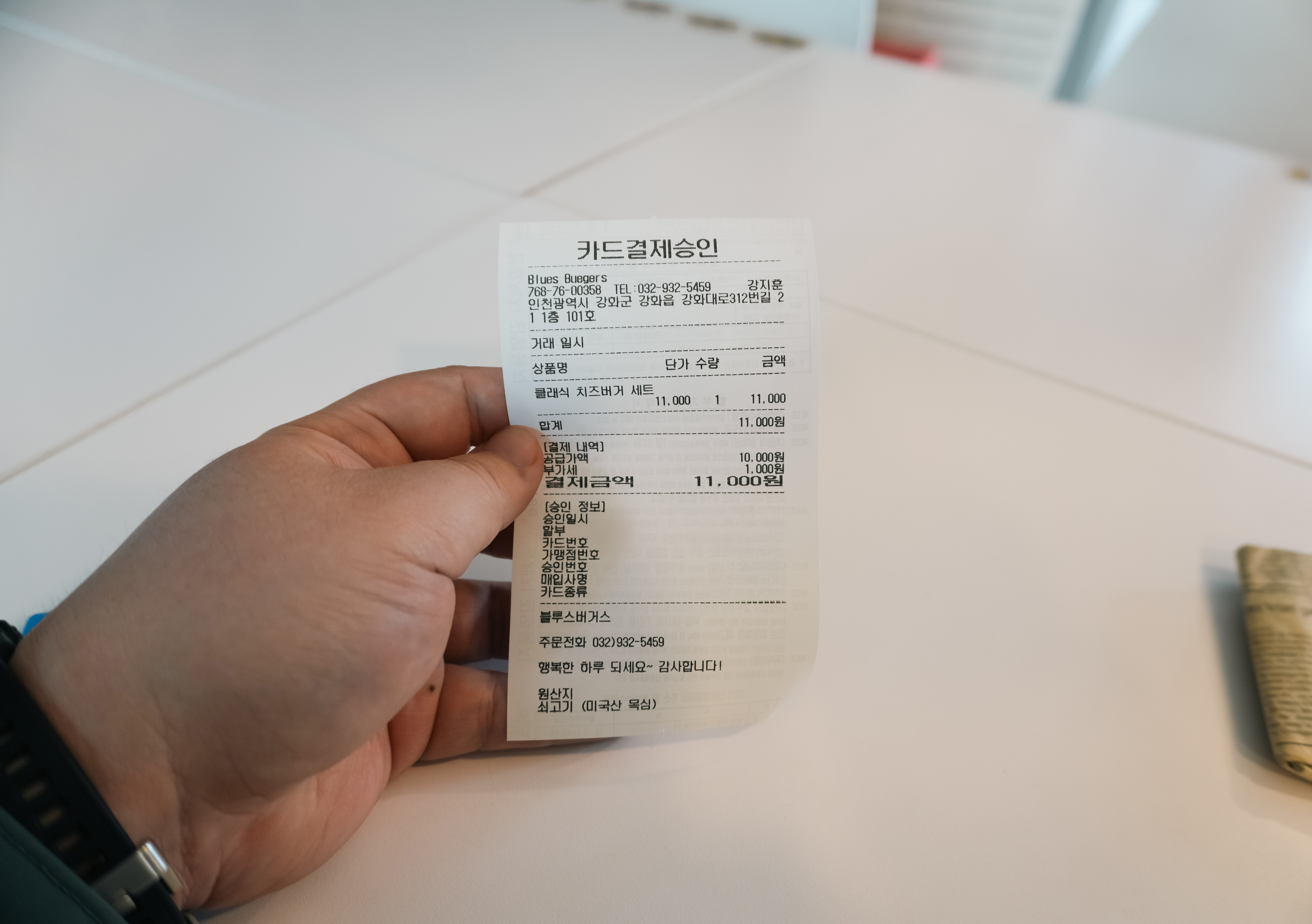 클래식치즈버거 세트의 가격은 11,000원 이었으며, 단품으로 주문할 경우 6,500원으로 요즘 패스트푸드 가게에서 판매하는 햄버거 가격에 견주어봐도 가격적으로는 부담스럽지 않았습니다.