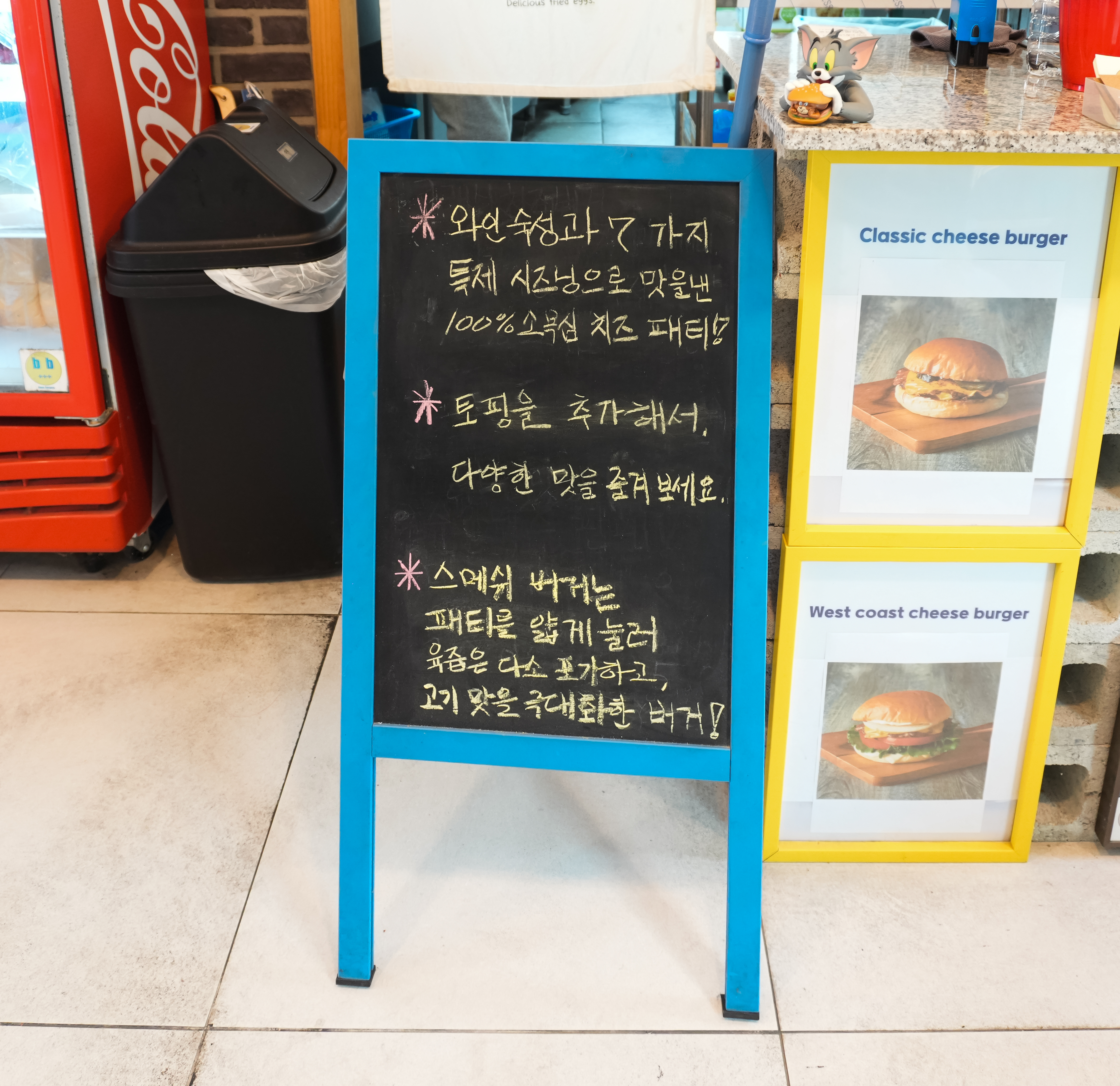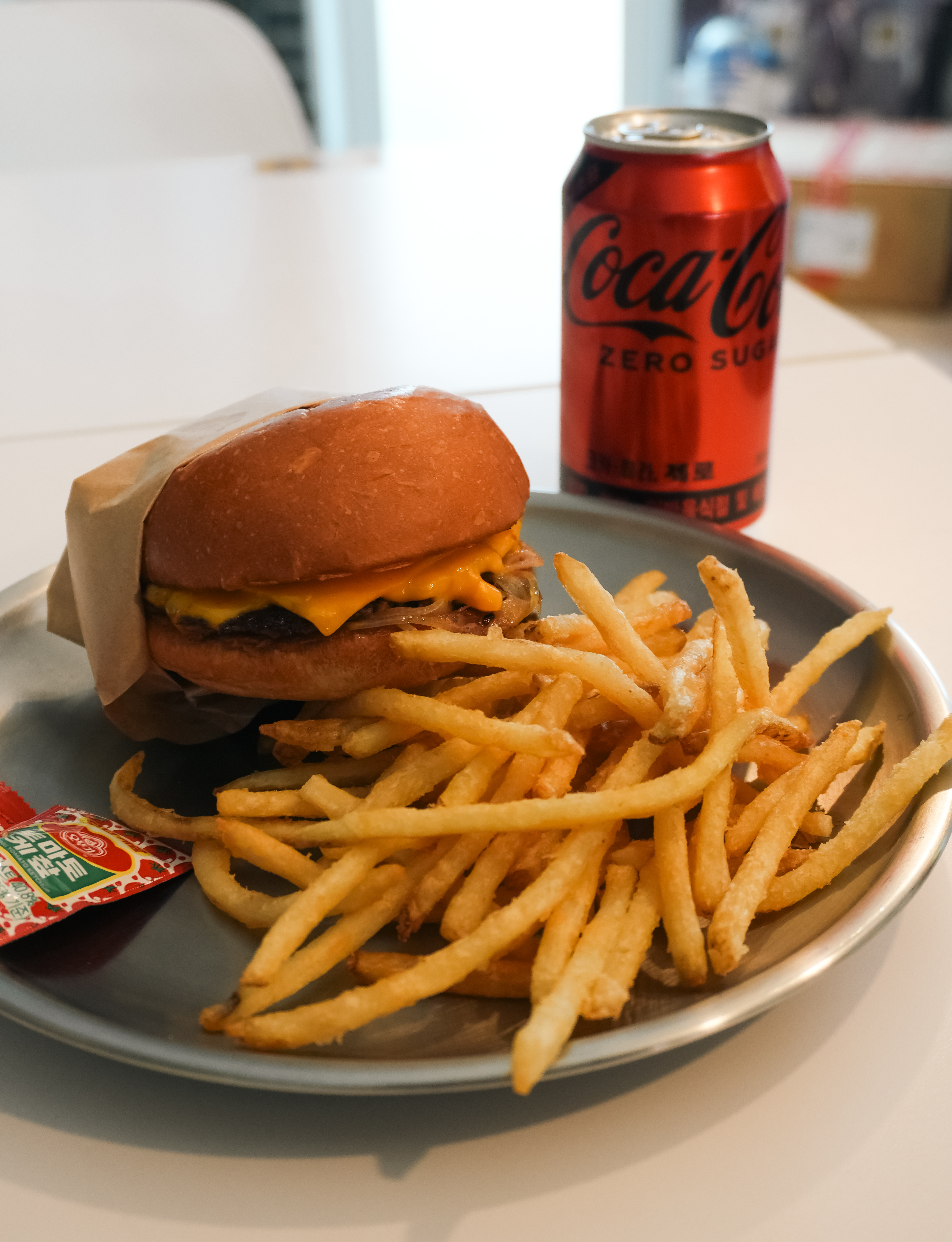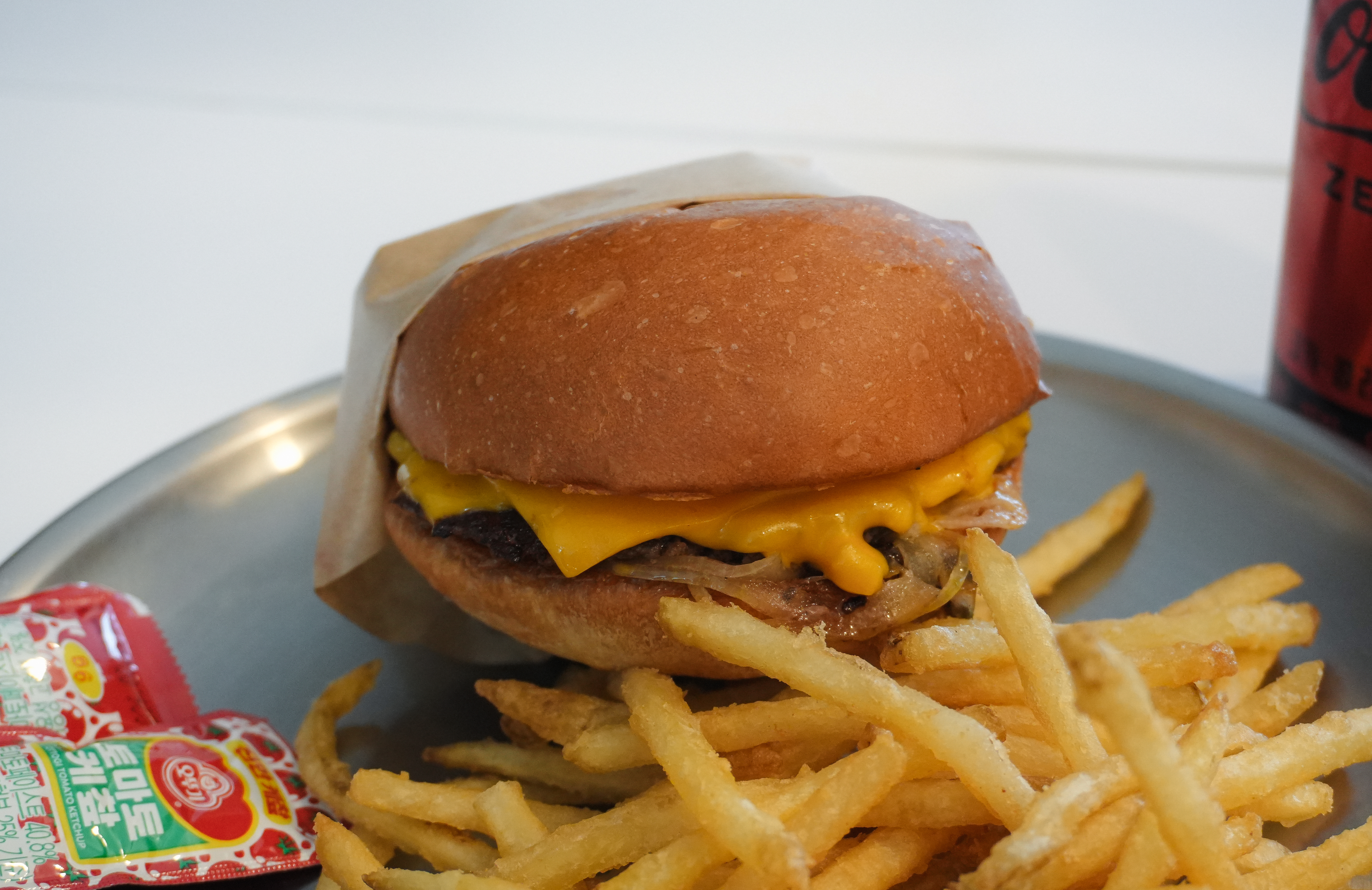 햄버거의 모습은 위와 같습니다. 일반 치즈버거는 기본 기성 소스가(?) 들어가고, 웨스트코스트치즈버거는 추가 채소와 특제 소스가 들어간다고 하더라고요. 저는 원래 처음 가는 매장에 가면 가장 기본 메뉴를 주문하는 습관이(?) 있어서, 가장 기본이 되는 클래식 치즈버거를 먹었죠.