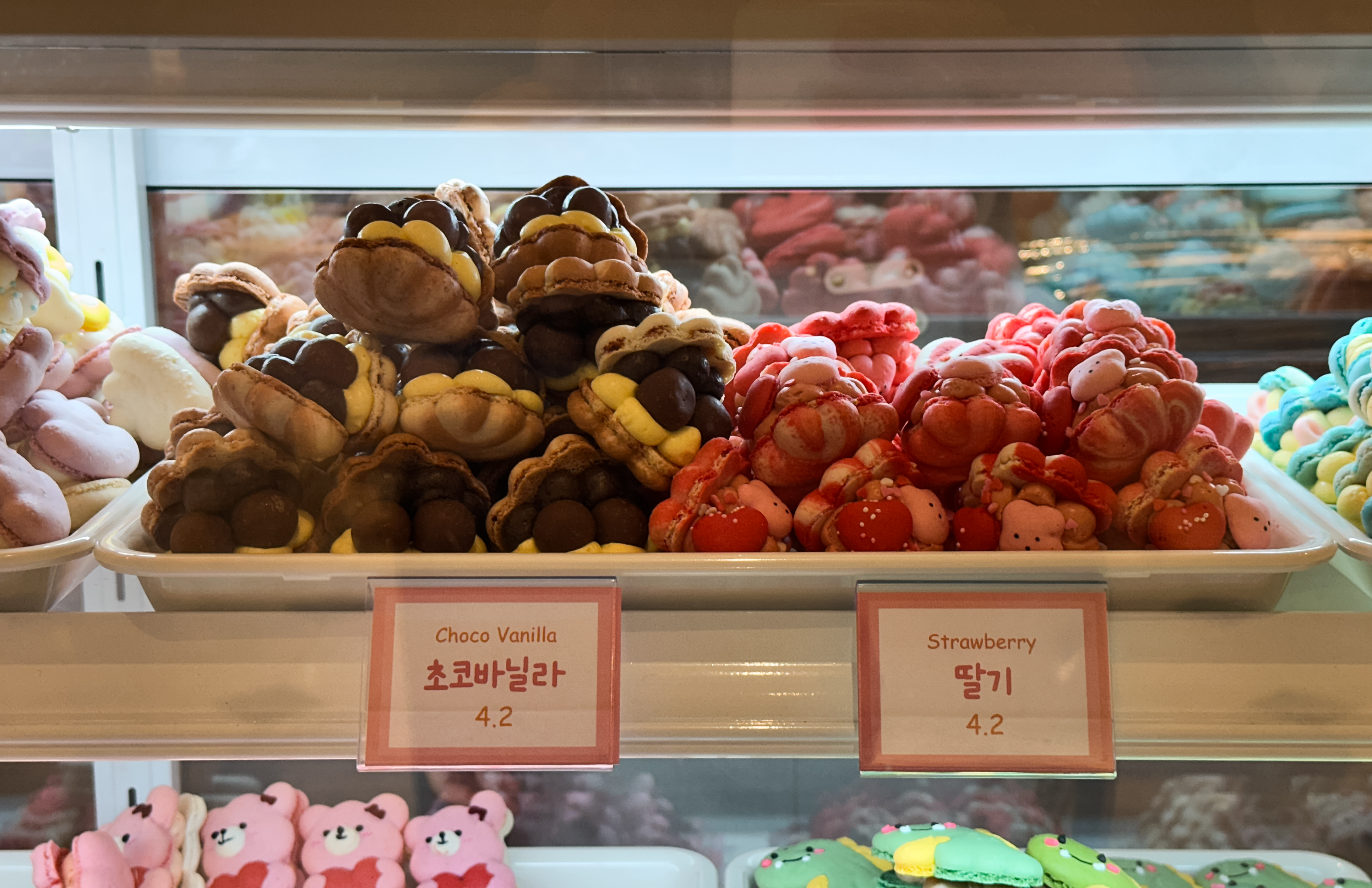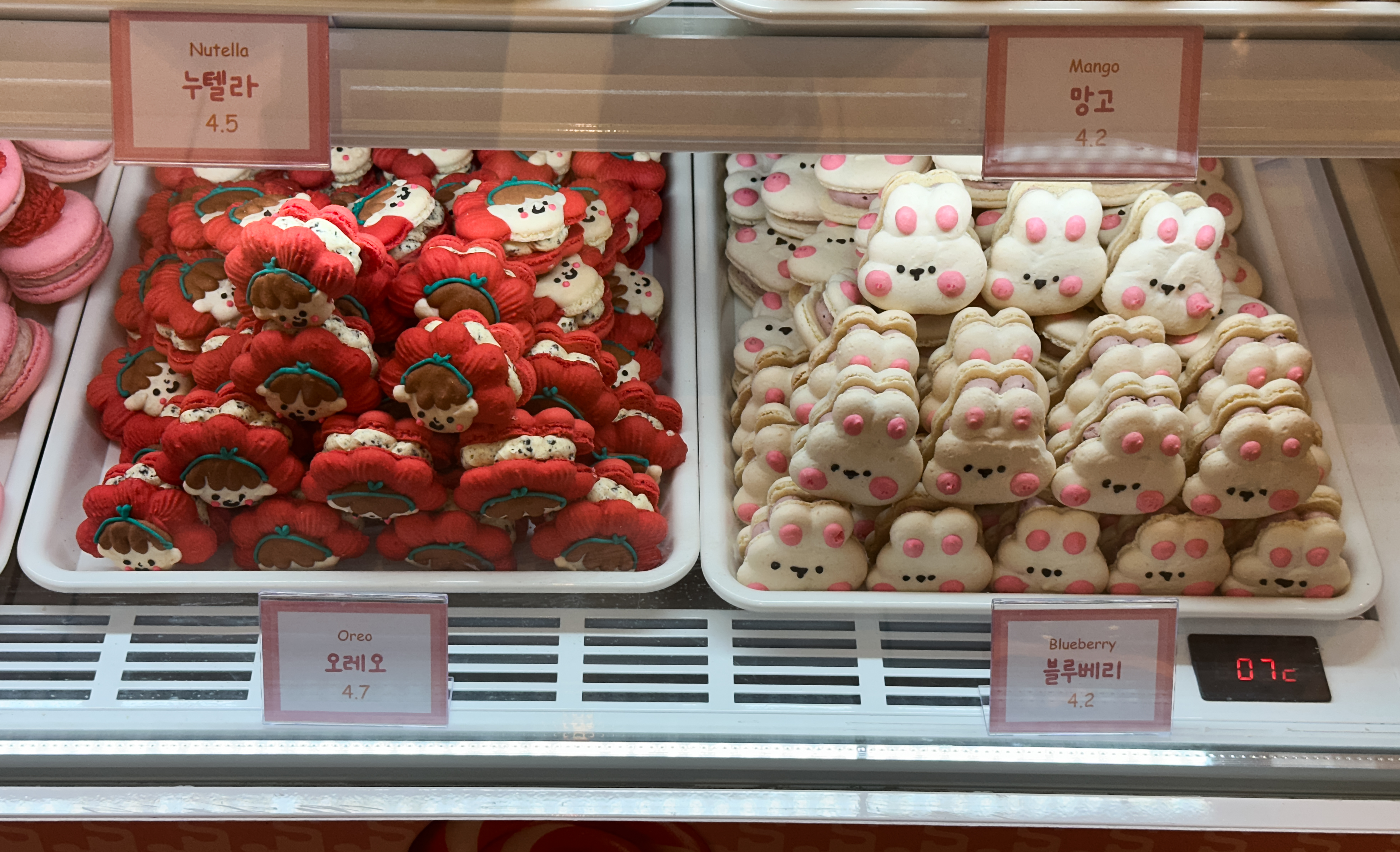 제가 먹어본 스윗티클스의 마카롱은 순우유 맛, 누텔라 맛, 오레오 맛입니다. 마카롱은 각각 빙구스러운 모습의 강아지 모양과 귀여운 공룡모양, 인형 같은 사람모양을 하고 있었습니다. 확실히 맛은 살짝씩 차이가 있었고, 저는 개인적으로 순우유와 오레오맛이 괜찮더라고요. 제가 이대명과 부스에서 전병을 파는 동안에도 스윗티클스 마카롱이 너무 귀엽고 이뻐서 그런지 손님들이 많이 찾아보시더라고요.