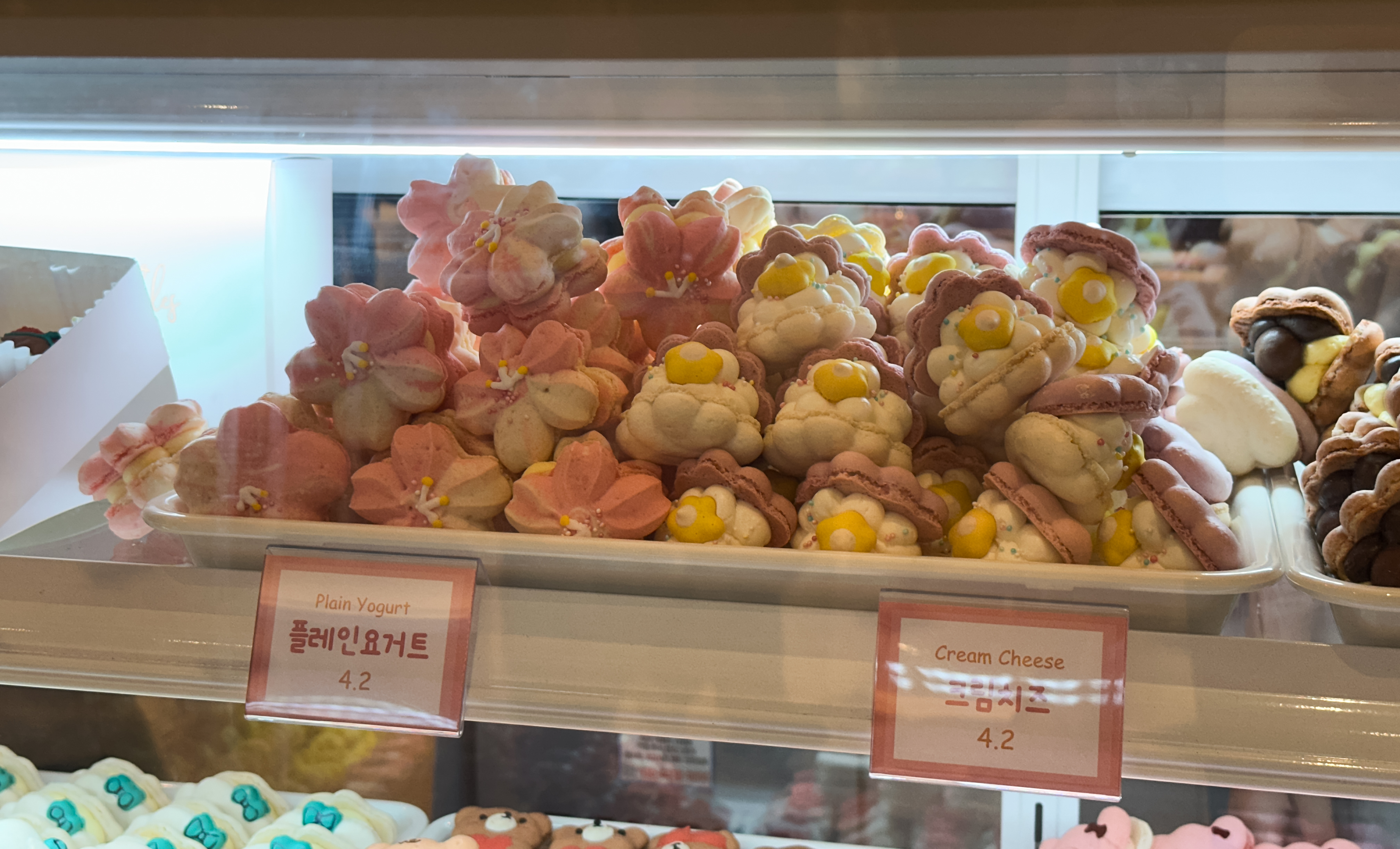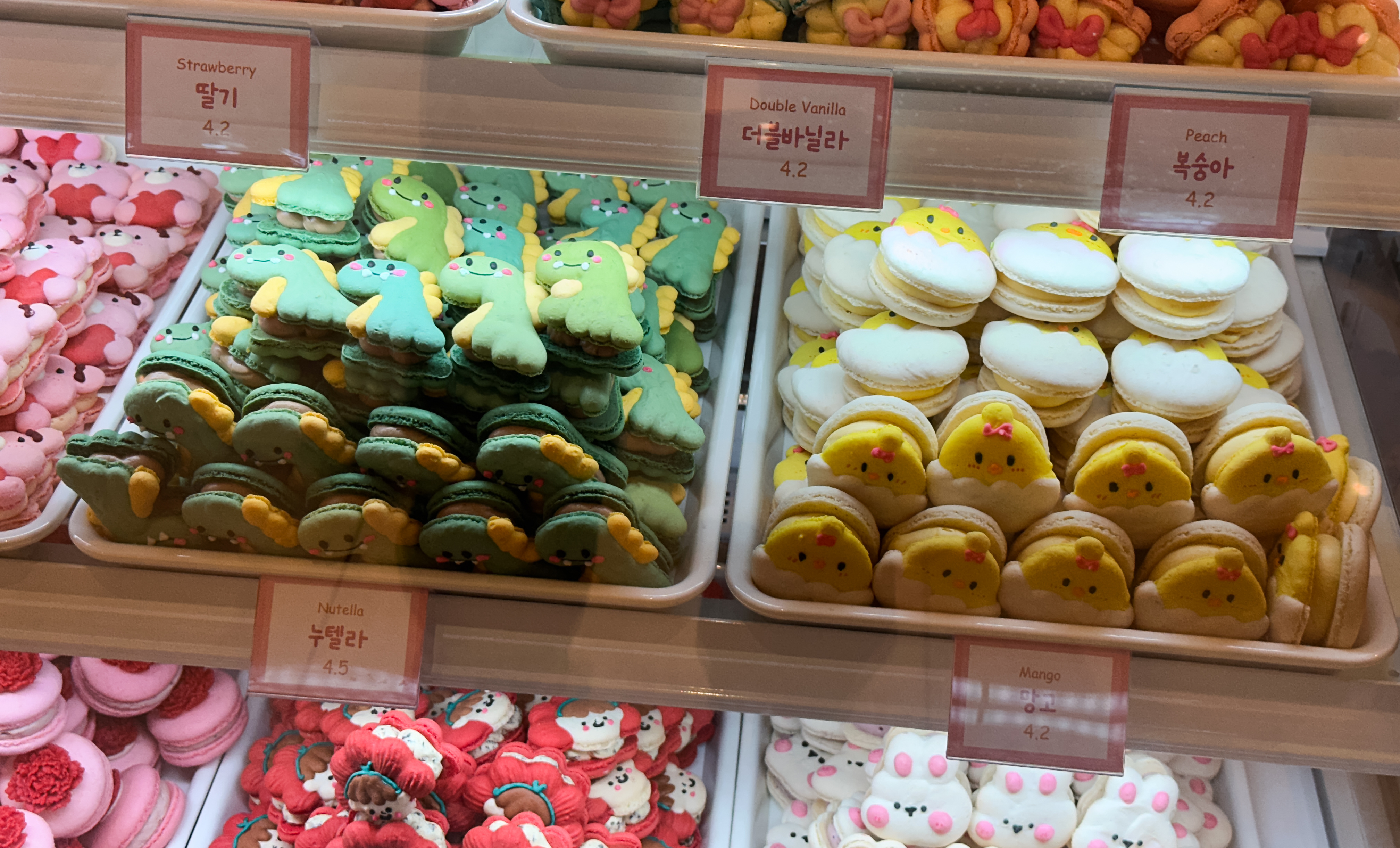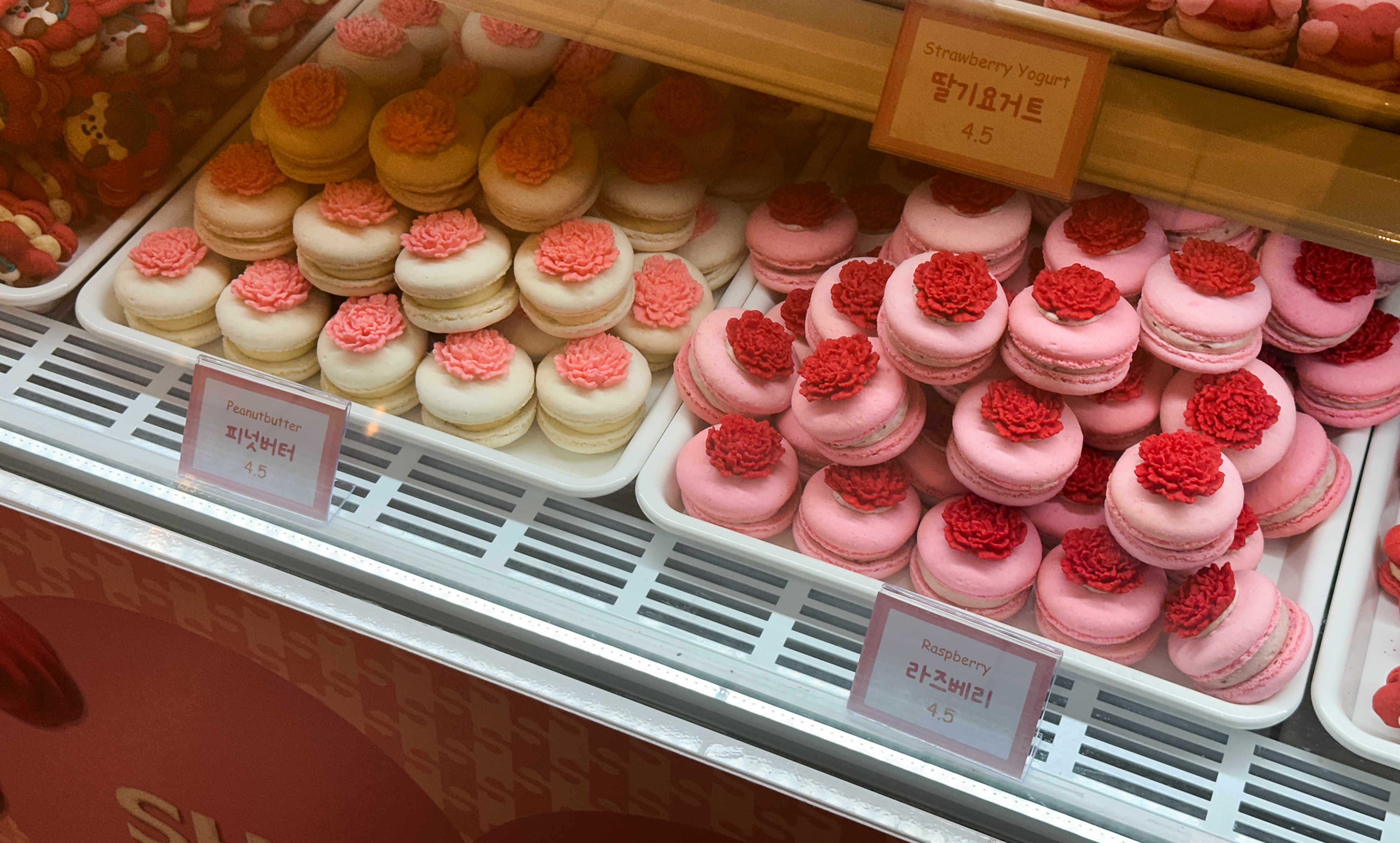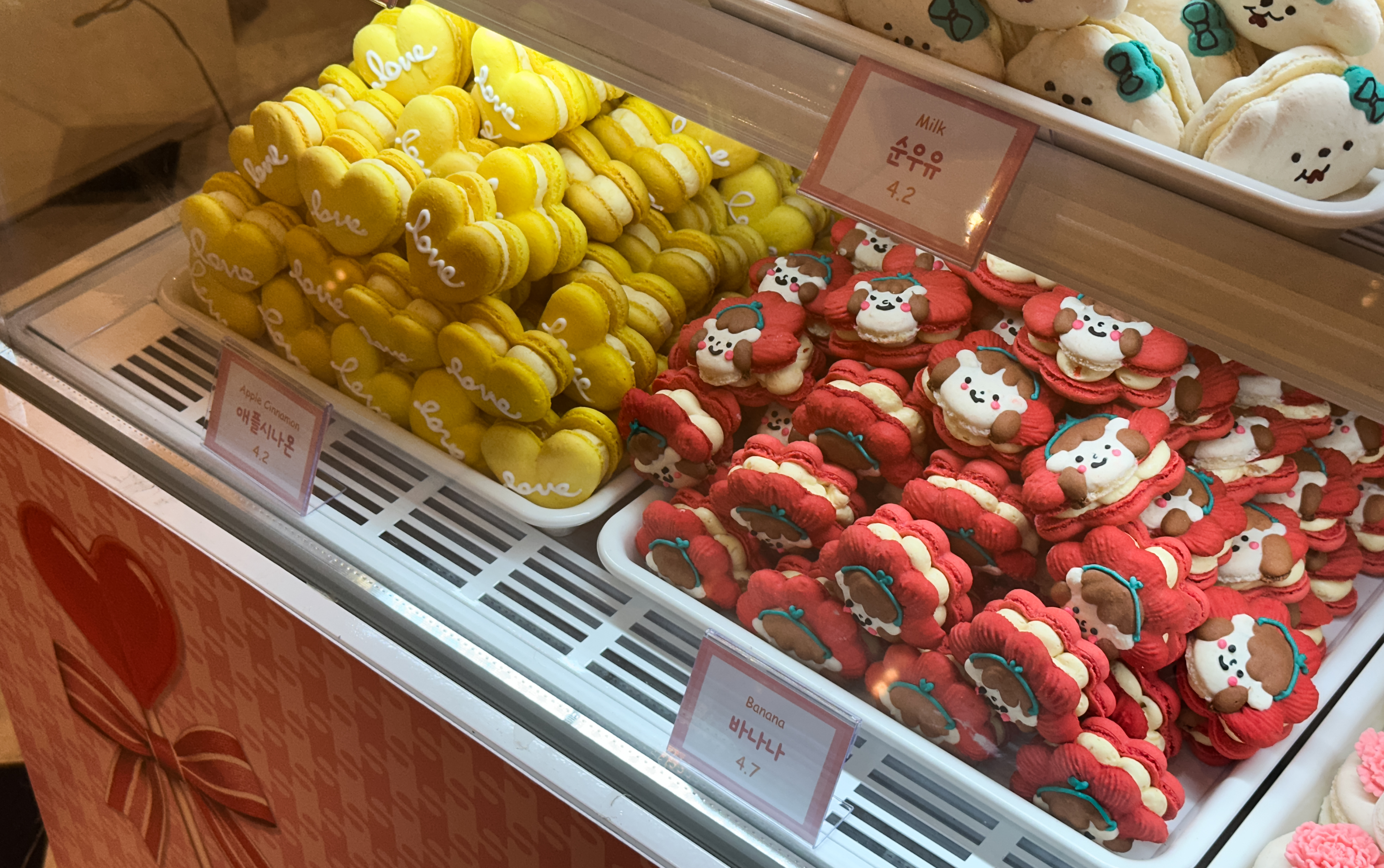 스윗티클스 마카롱의 종류는 솔티카라멜, 순우유, 초코우유, 딸기요거트, 누텔라, 망고, 더블바닐라, 복숭아, 초코바닐라, 딸기, 플레인요거트, 크림치즈, 오레오, 블루베리, 피넛버터, 라즈베리, 애플시나몬, 바나나 등이 있었습니다. 종류가 워낙 다양해서 디테일을 보여드리려고, 한 화면에 담기 보다는 여러장 찍어보았습니다.