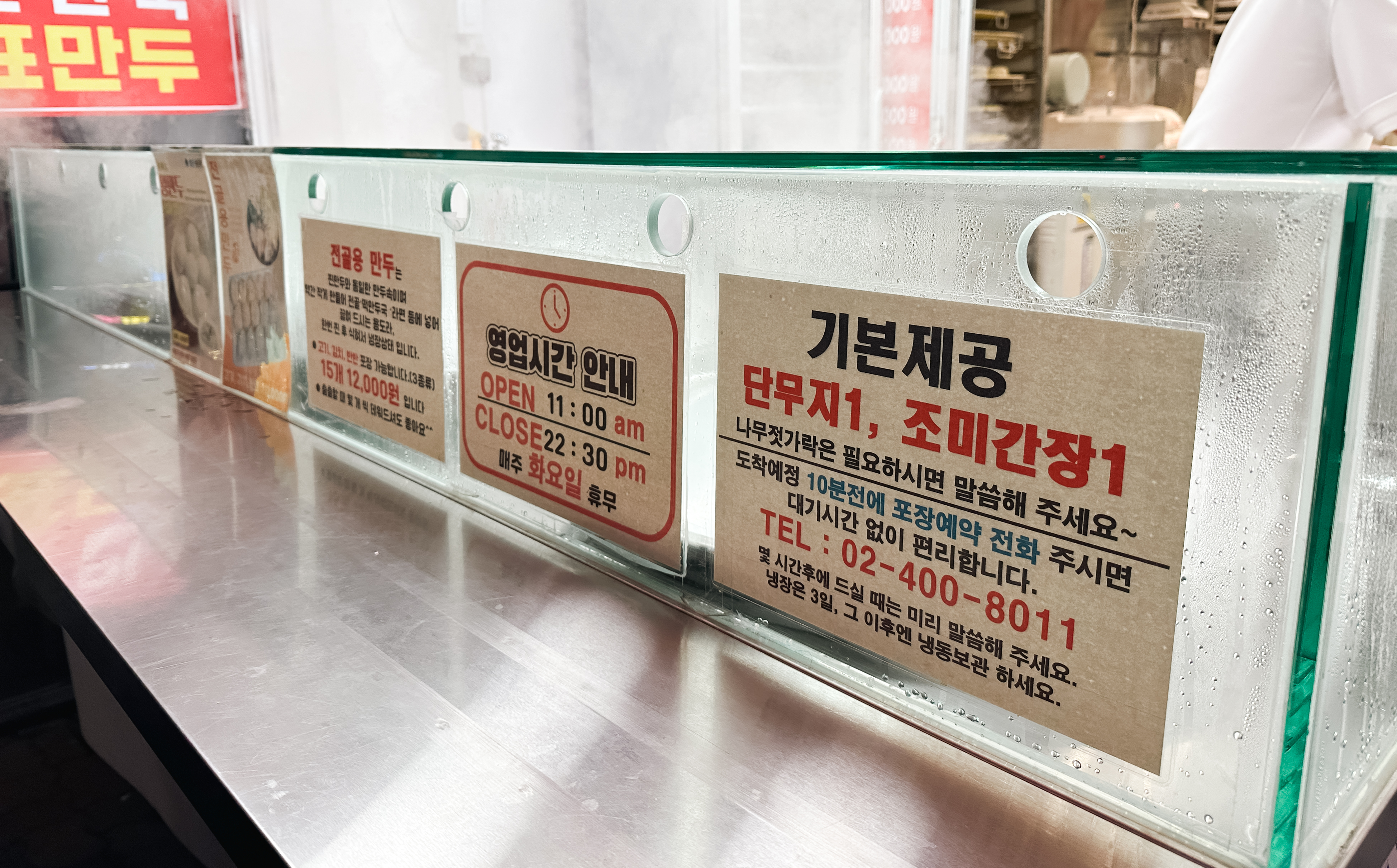 저는 이곳의 김치만두를 주문했습니다. 행운손만두의 만두를 주문하면 그 자리에서 바로 쪄 주시는데, 약 5분 정도 소요된다고 합니다. 이곳에서 만두를 포장하면 기본적으로 단무지와 간장을 제공하고 있었습니다. 단무지 싫어하시는 분은 미리 말씀하셔서 빼셔도 좋을 것 같습니다.