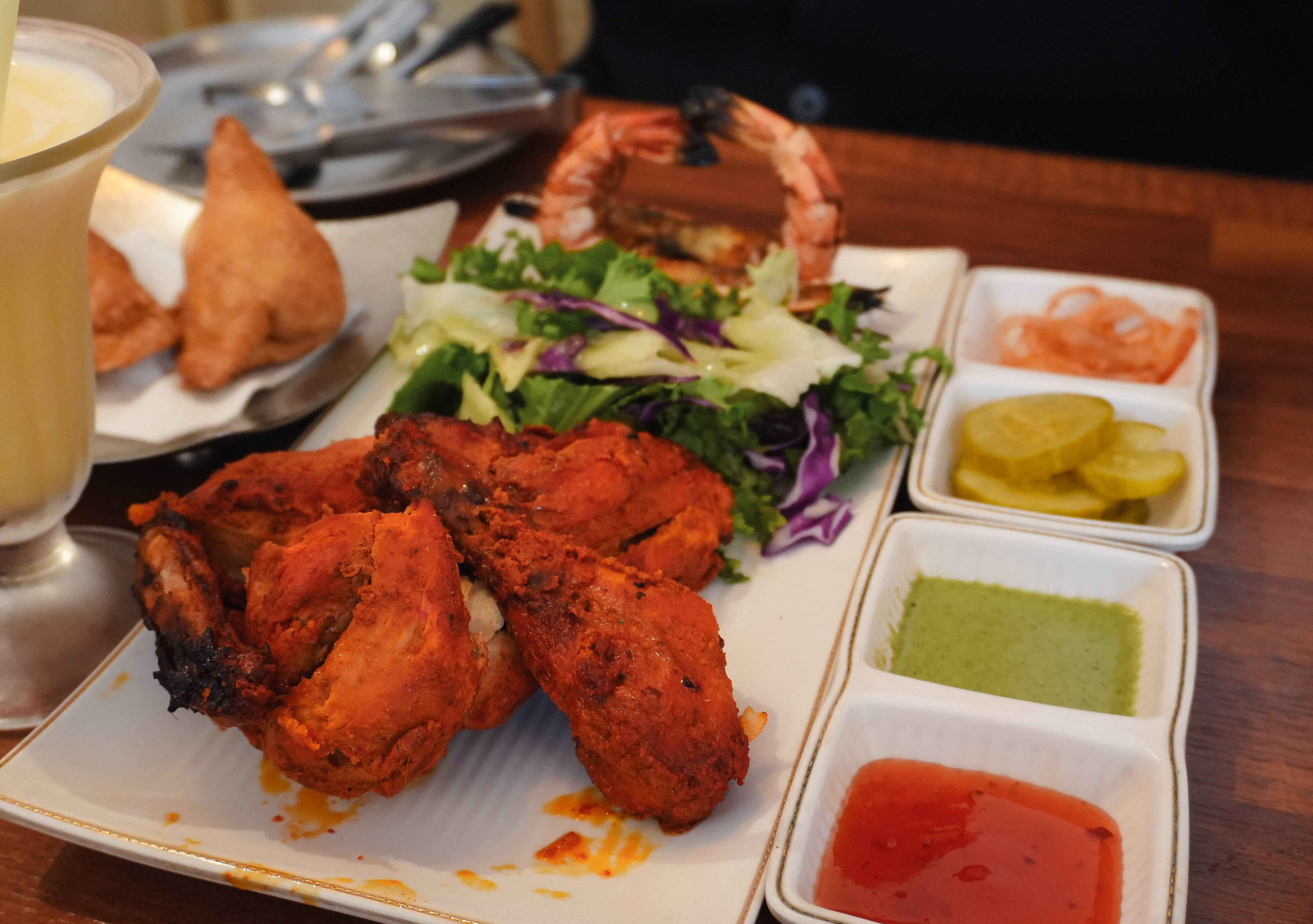 탄두리 치킨과 샐러드 그리고 킹 프라운이라 불리는 왕새우 구이가 나왔습니다. 탄두리 치킨은 생각보단 덜 바삭했는데, 그래도 인도 요리 특유의 향신료 맛이 꽤 매력적인 메뉴였습니다. 은근 한국인 입맛에도 맞는 매콤 짭짤한 맛의 탄두리치킨에 더해 킹 프라운(왕새우)도 바삭하게 잘 구워 맛있었습니다.