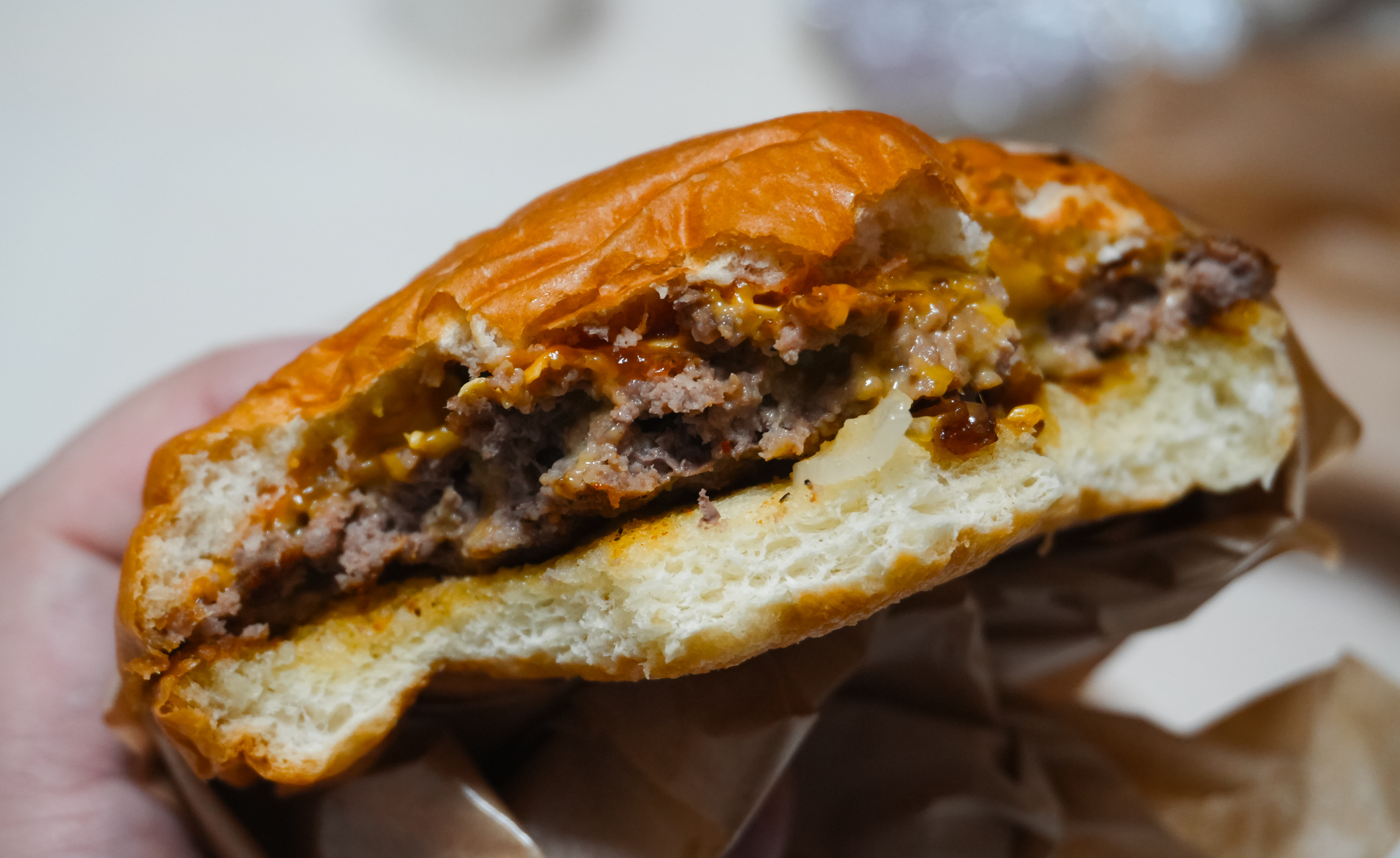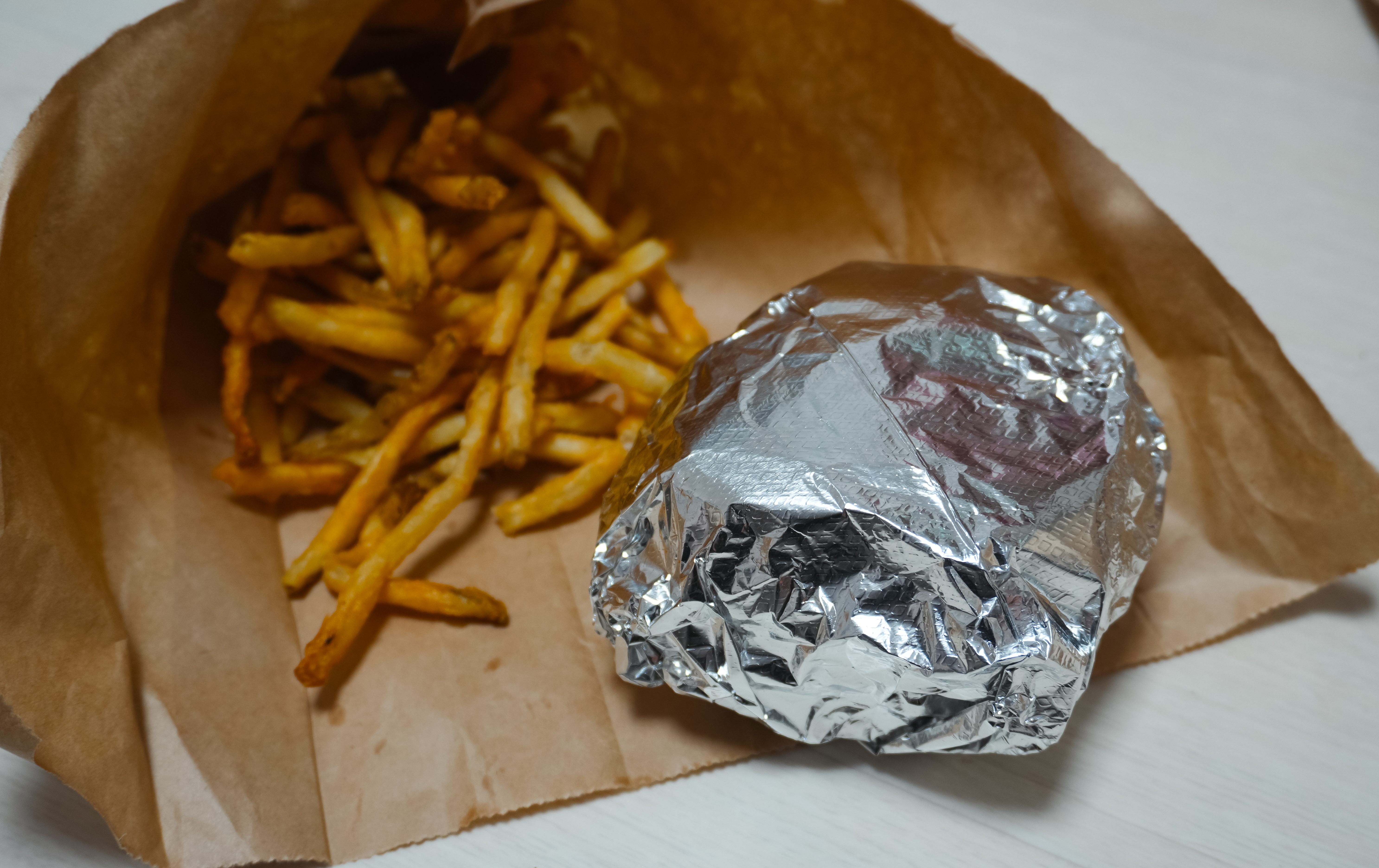 블루스버거스의 메뉴는 위와 같이 종이봉투에 담아 제공하고 있었습니다. 지난 포스팅에서도 소개하였지만, 이 블루스버거스의 스매시버거는 패티를 얇게 눌러 육즙을 포기하고 고기 맛을 극대화 하였다고 합니다.