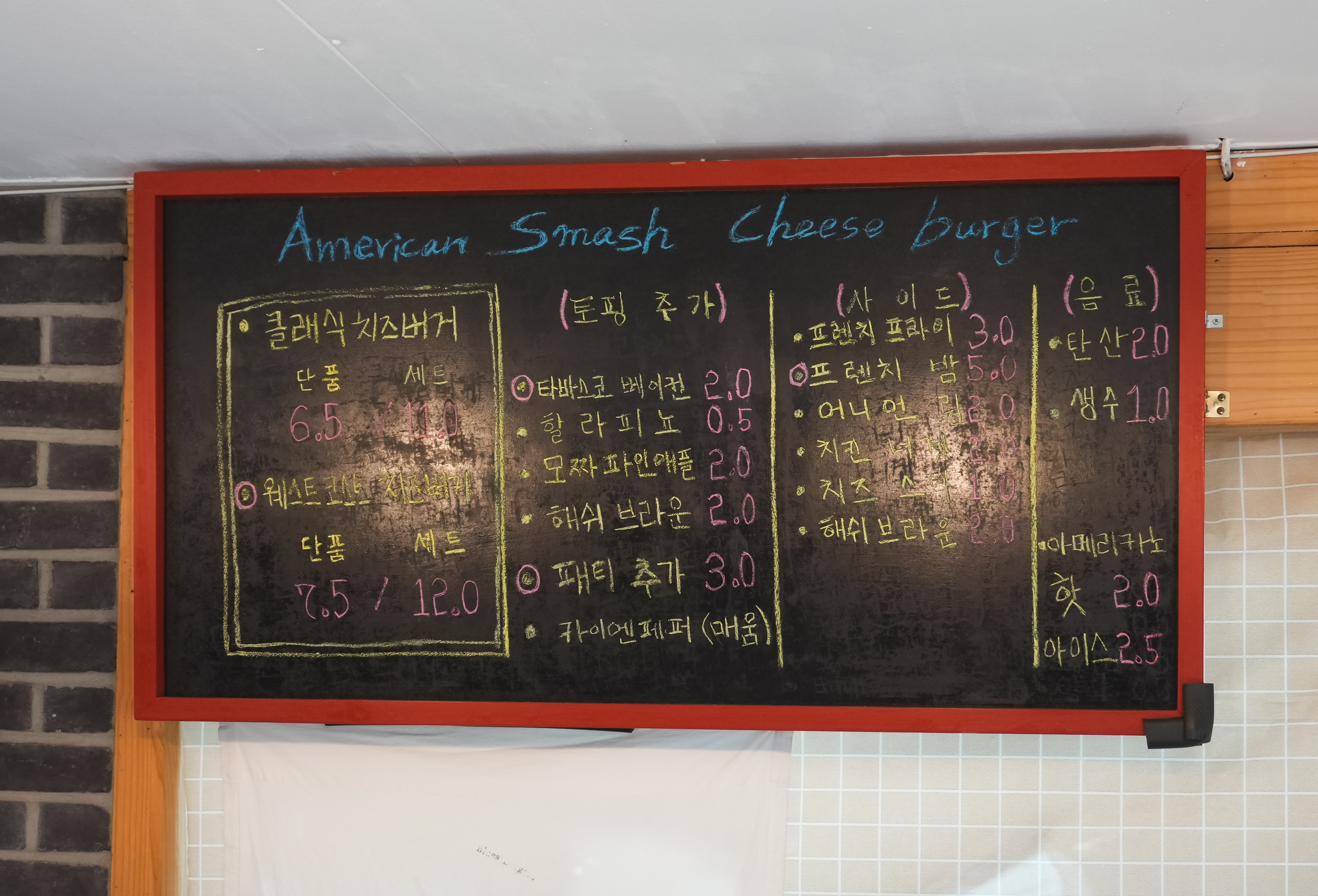 블루스버거스는 단돈 6,500원에 수제버거를 만들어 판매하는 가게로, 강화 블루스버거스는 부담 없는 가격에 직접 만든 수제버거를 먹을 수 있어서 종종 이용하는 가게입니다. 메뉴도 단순해서 고민할 일이 거의 없는 가게였습니다.