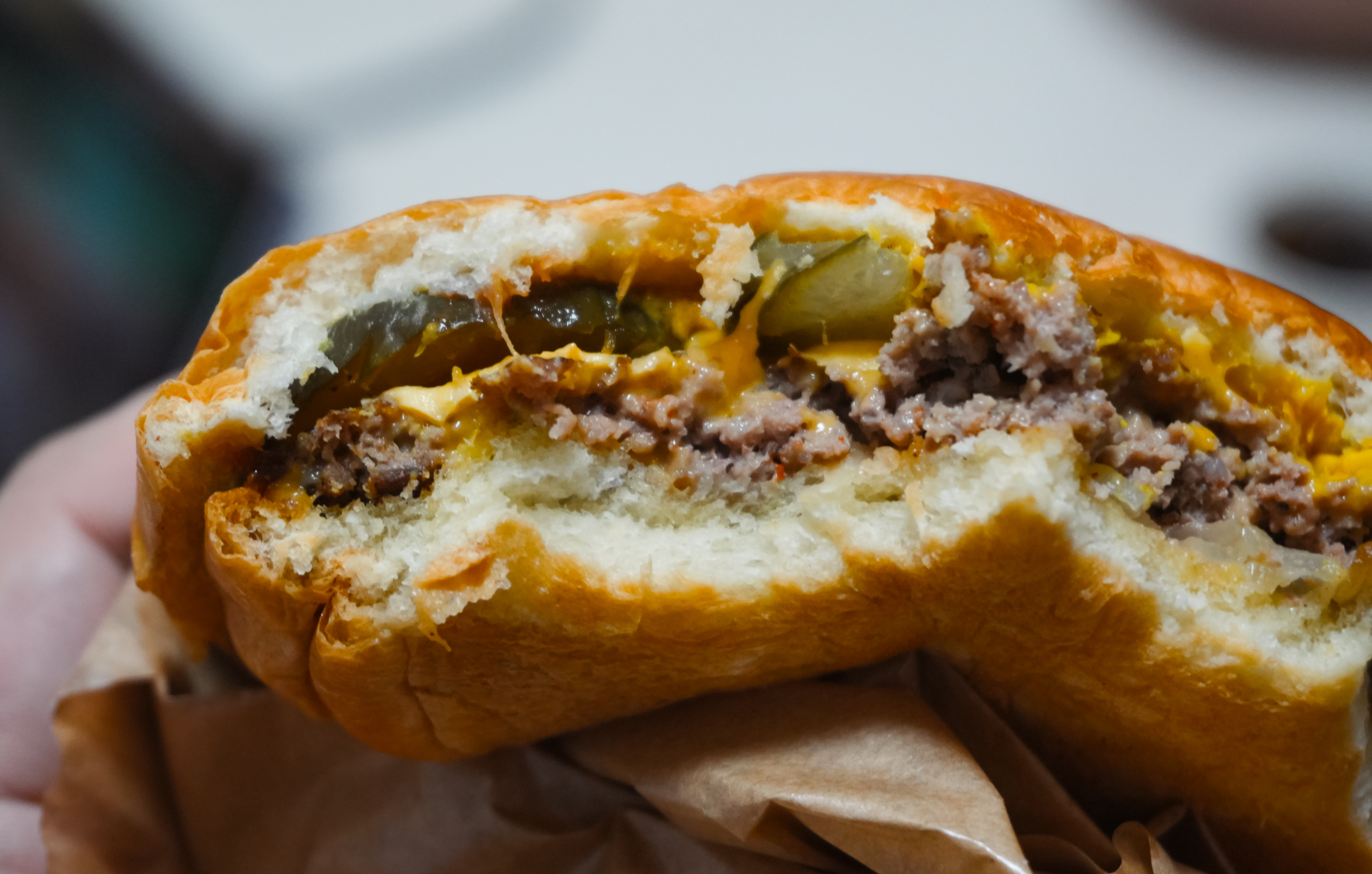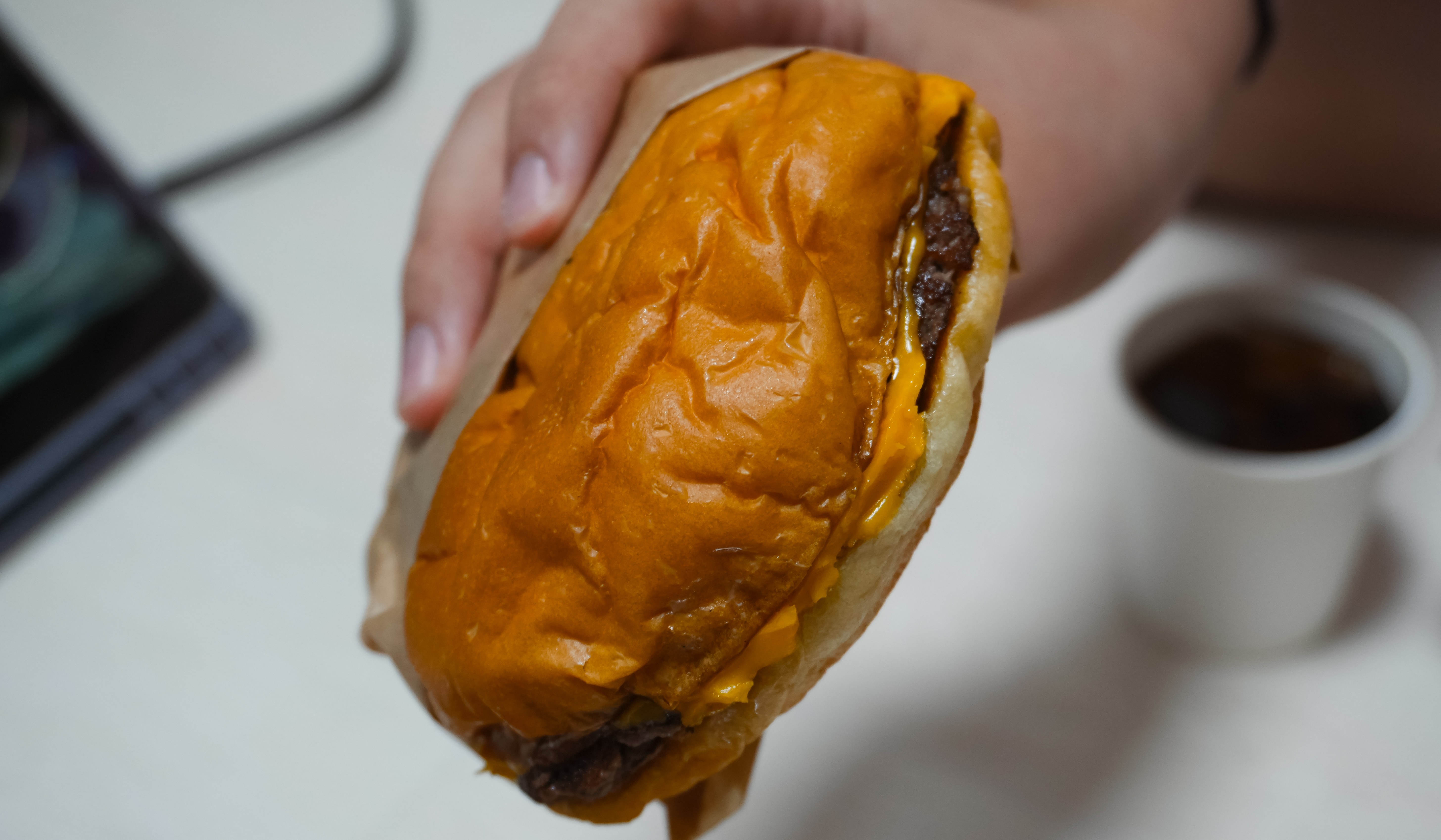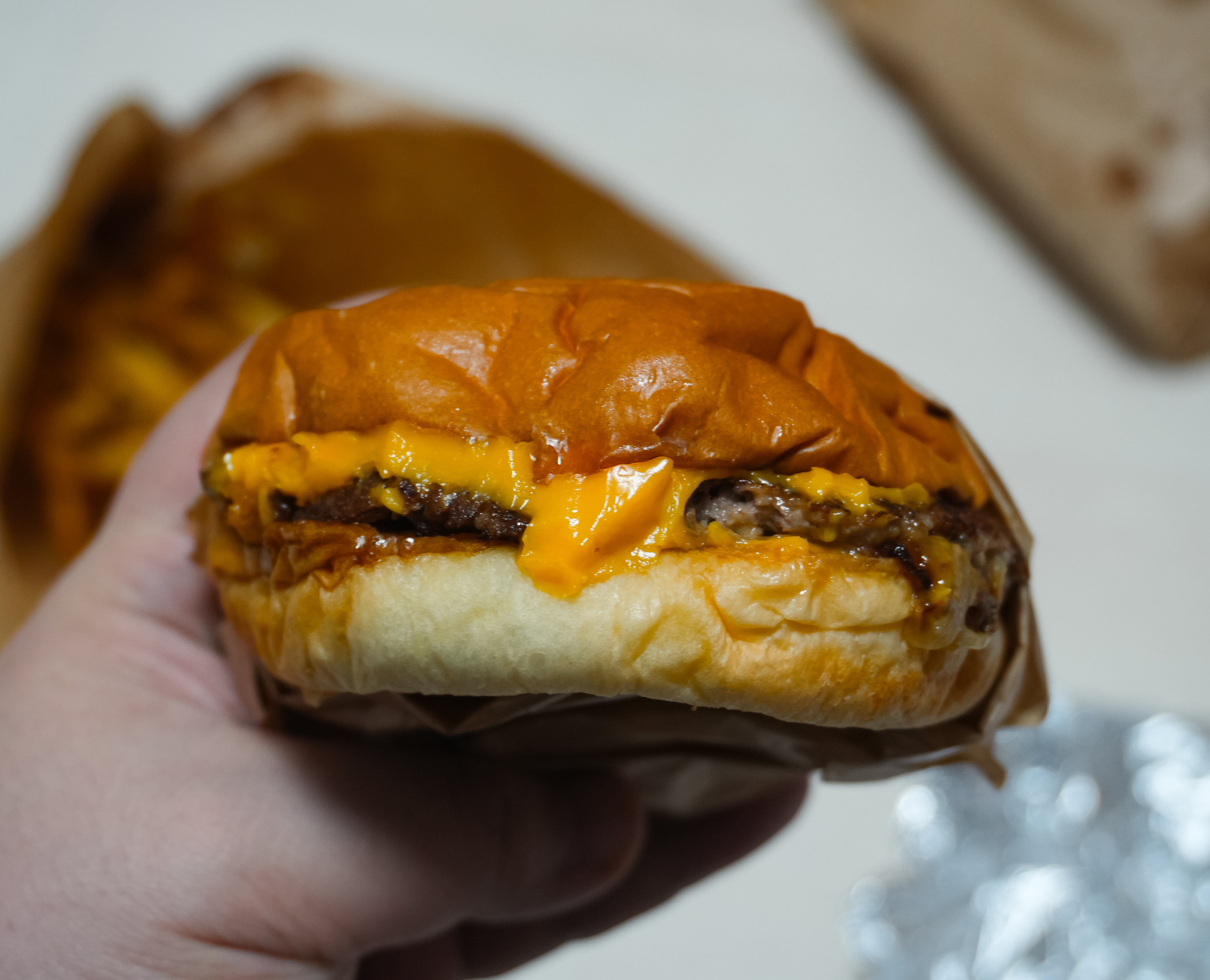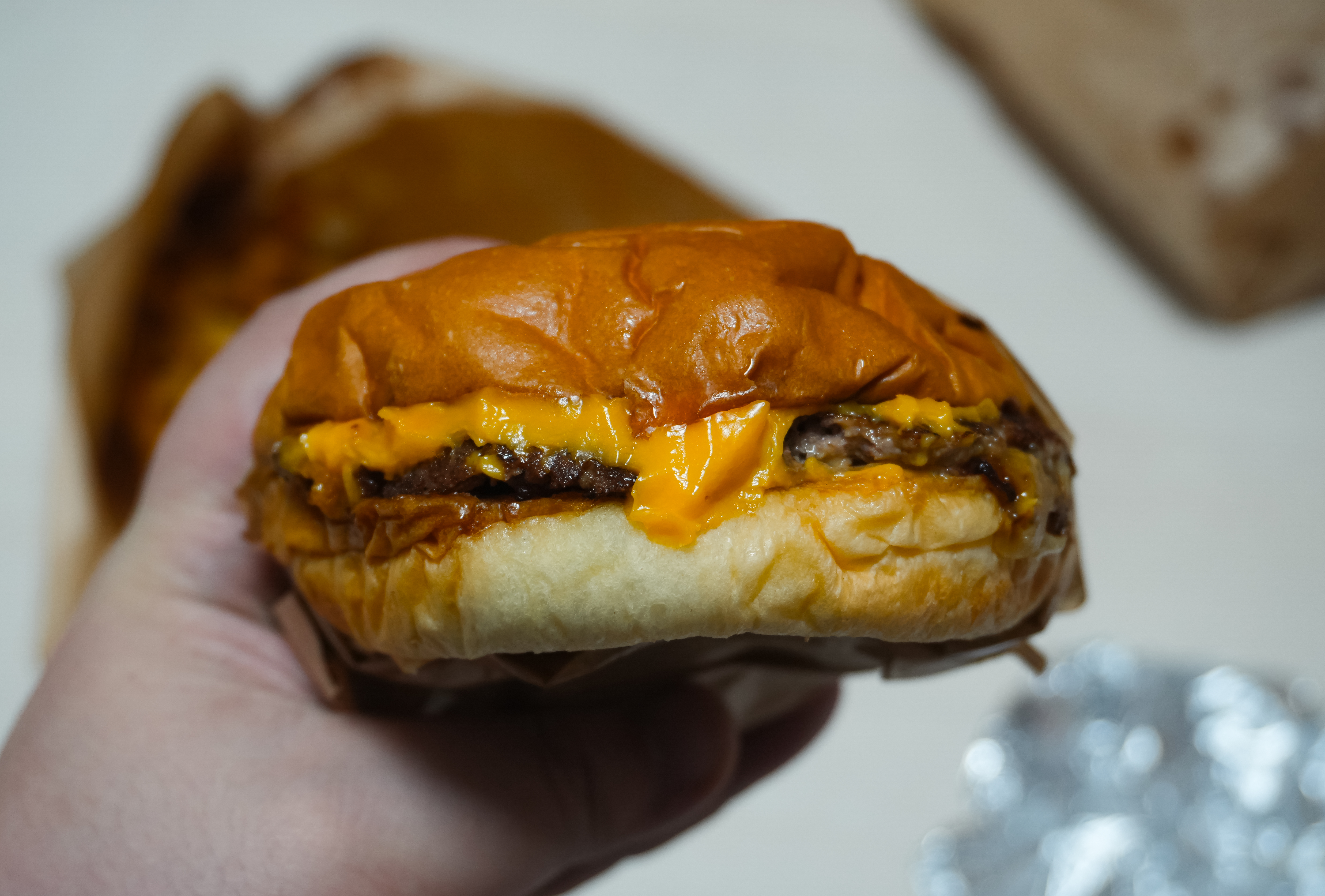 블루스버거스의 메뉴는 위와 같이 종이봉투에 담아 제공하고 있었습니다. 지난 포스팅에서도 소개하였지만, 이 블루스버거스의 스매시버거는 패티를 얇게 눌러 육즙을 포기하고 고기 맛을 극대화 하였다고 합니다.