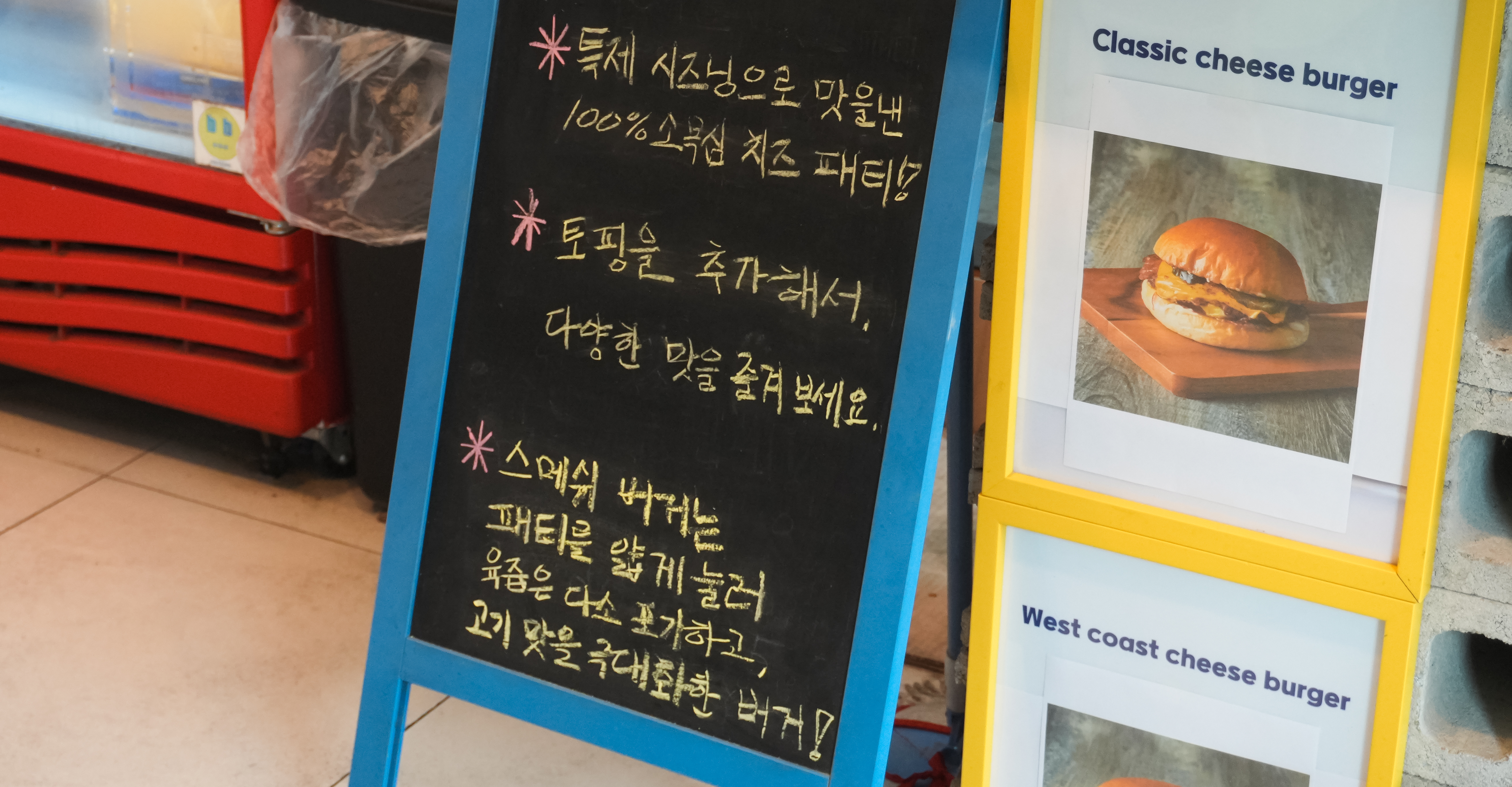 블루스버거스는 단돈 6,500원에 수제버거를 만들어 판매하는 가게로, 강화 블루스버거스는 부담 없는 가격에 직접 만든 수제버거를 먹을 수 있어서 종종 이용하는 가게입니다. 메뉴도 단순해서 고민할 일이 거의 없는 가게였습니다.