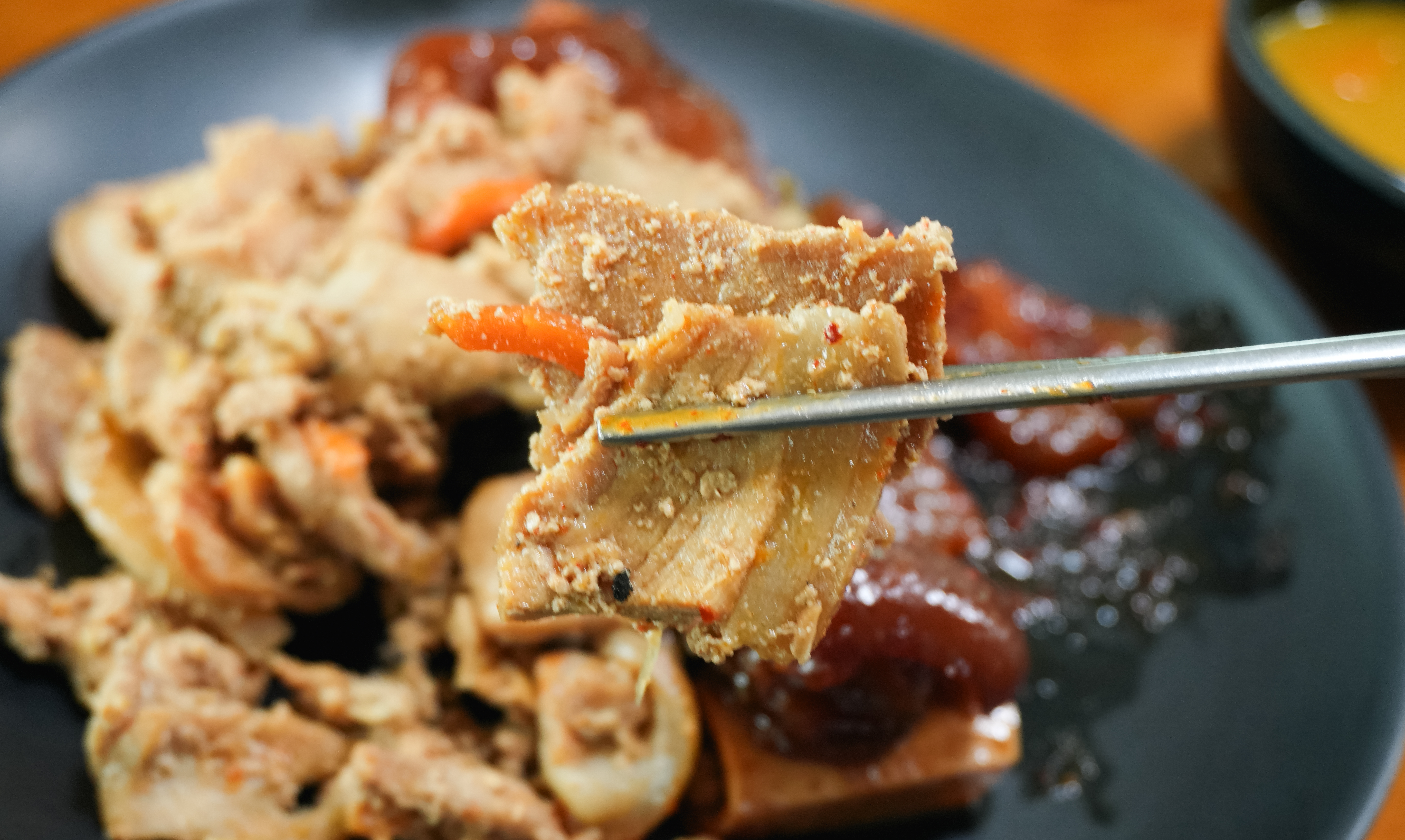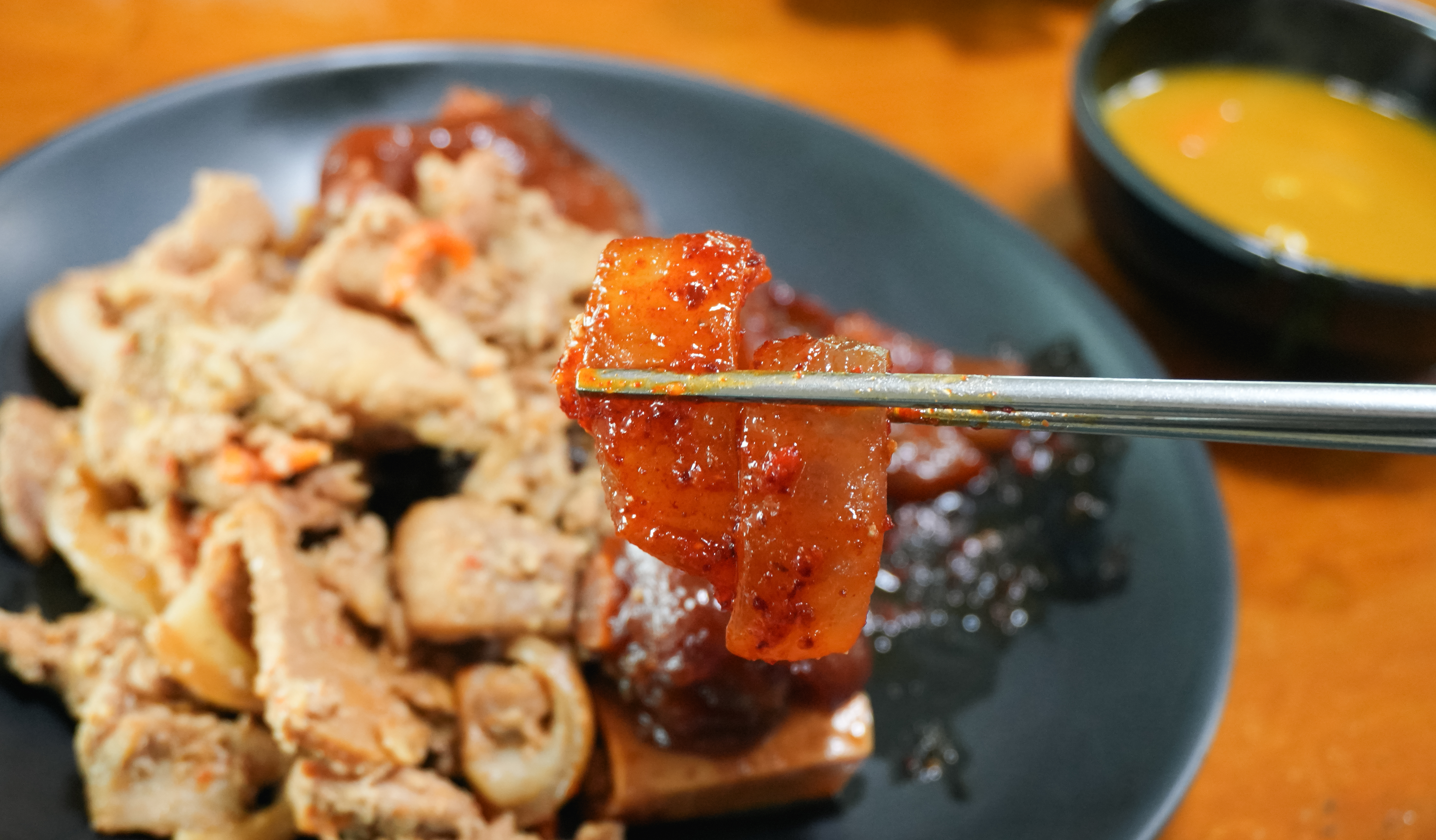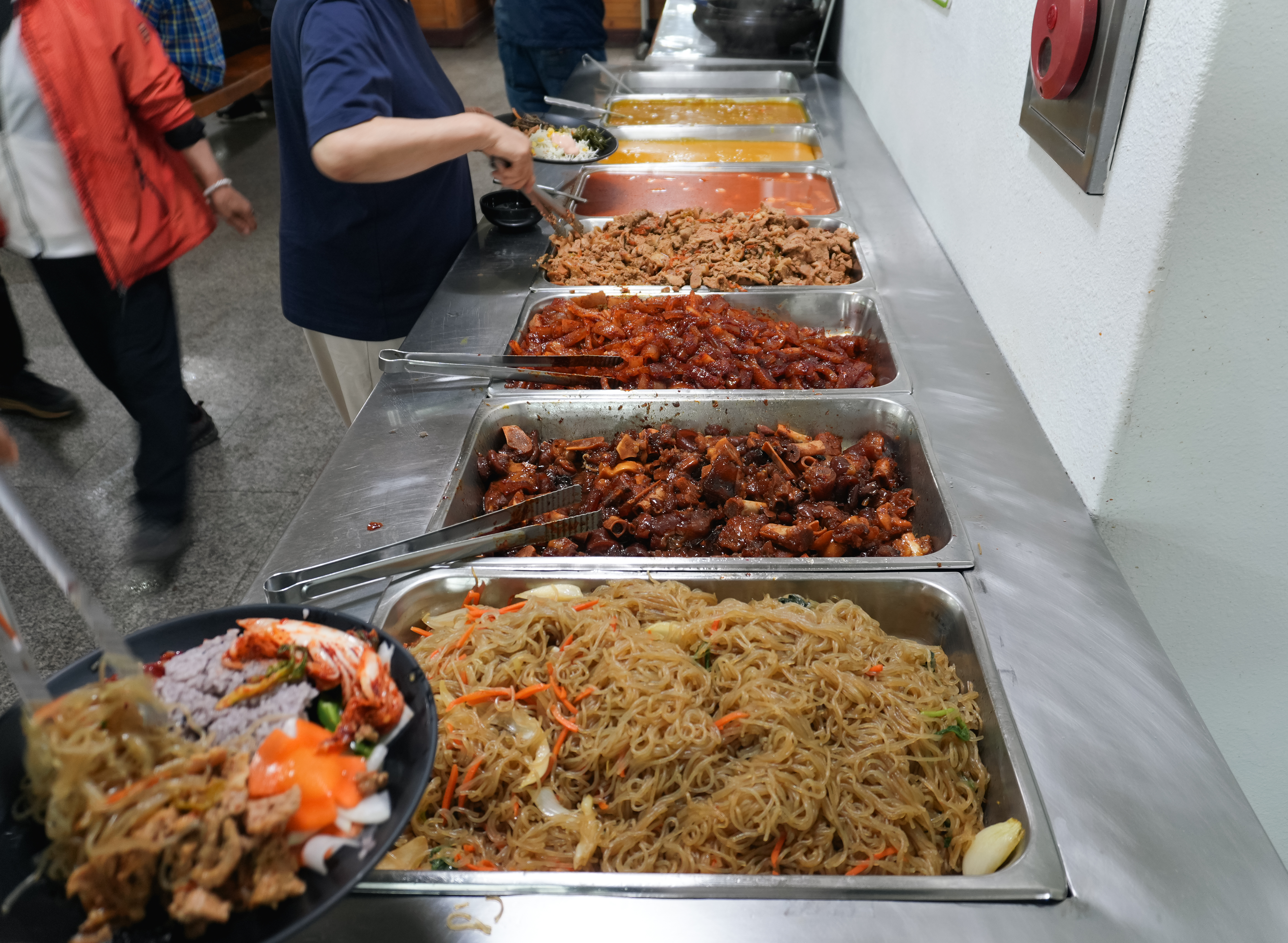 특히 고기 반찬이 있는 코너에는 손님들이 항상 붐비는데요. 족발과 껍데기, 제육볶음, 잡채같은 메뉴들은 대부분 호불호없이 많이들 좋아하시는 것 같더라고요. 저도, 이곳에서 반찬을 많이 담아왔습니다.