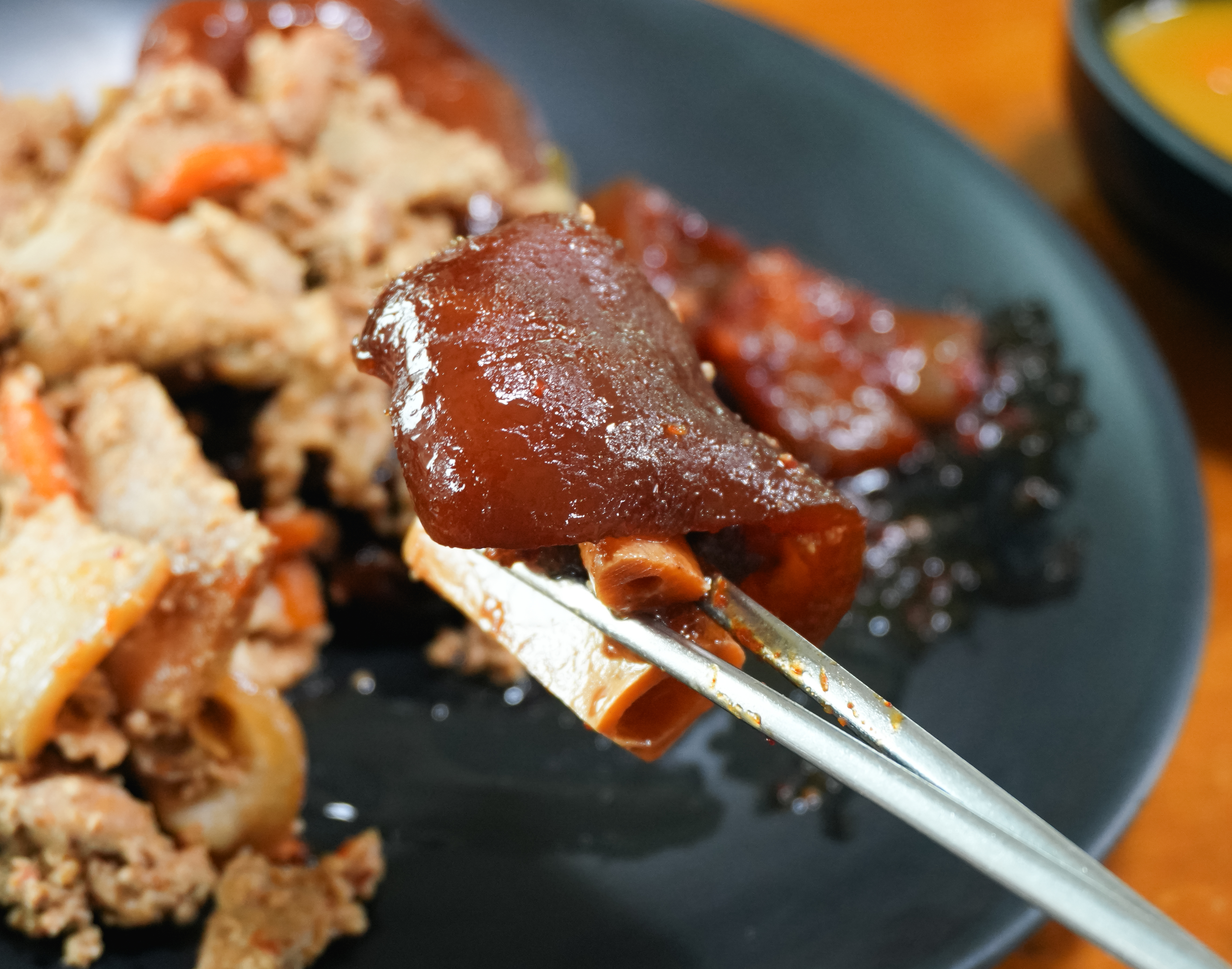 특히 고기 반찬이 있는 코너에는 손님들이 항상 붐비는데요. 족발과 껍데기, 제육볶음, 잡채같은 메뉴들은 대부분 호불호없이 많이들 좋아하시는 것 같더라고요. 저도, 이곳에서 반찬을 많이 담아왔습니다.