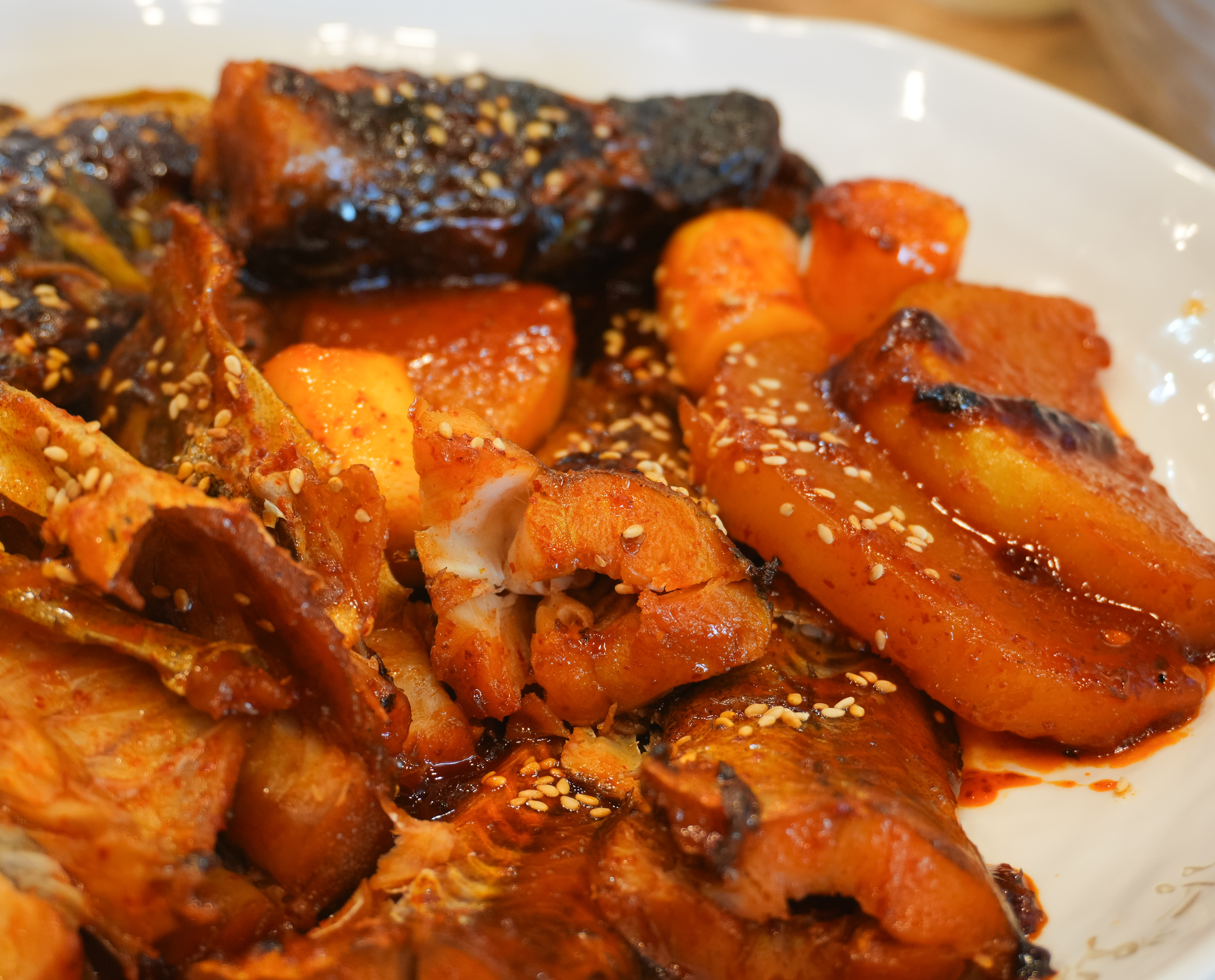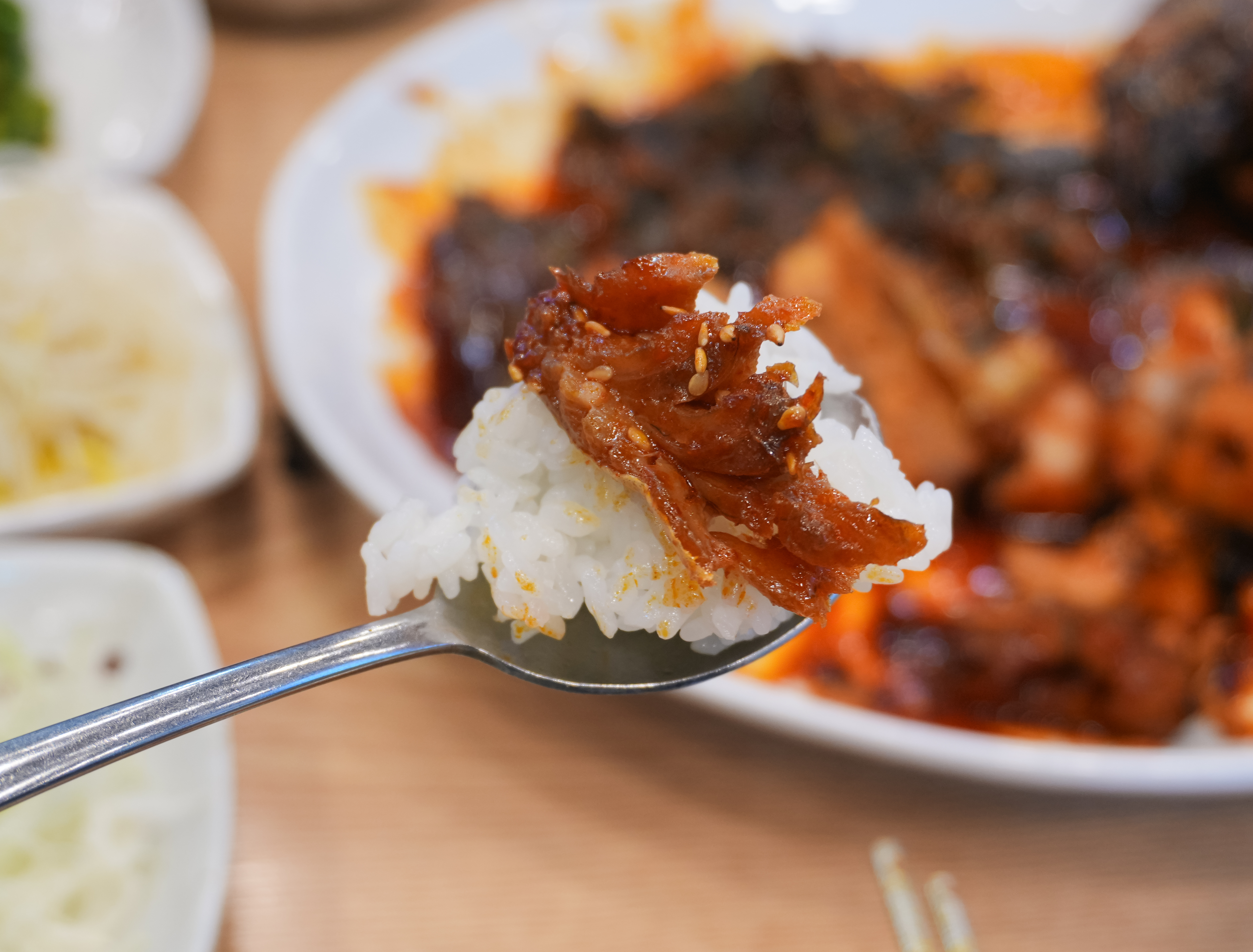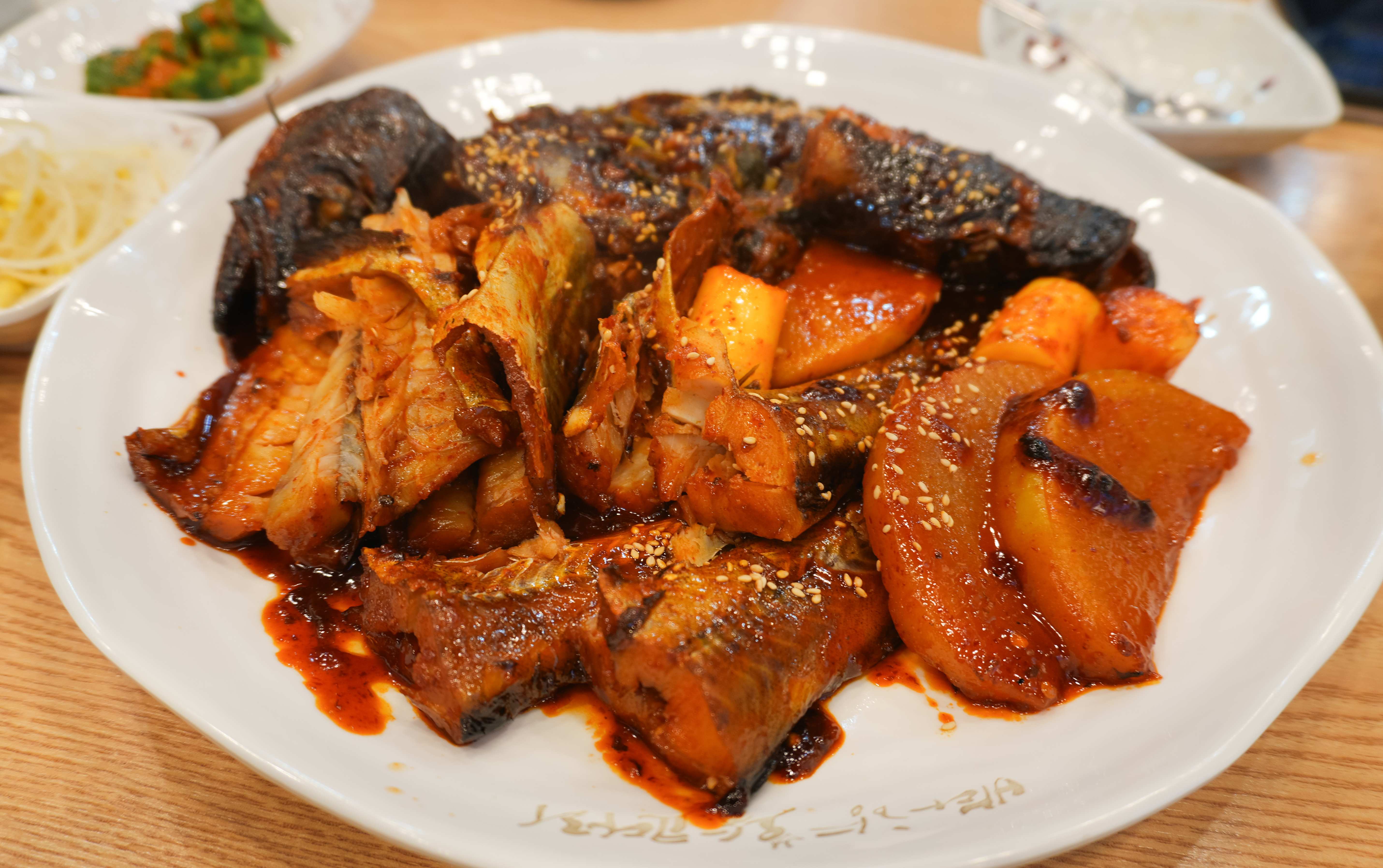 코다리조림에는 가장 기본인 반건조명태(코다리)에 떡과 무가 들어있어 매콤 달콤한 맛에 감칠맛도 있었고, 코다리의 식감이 쫄깃하면서도 꼬들한 식감이 있어서 먹기 좋았습니다.
