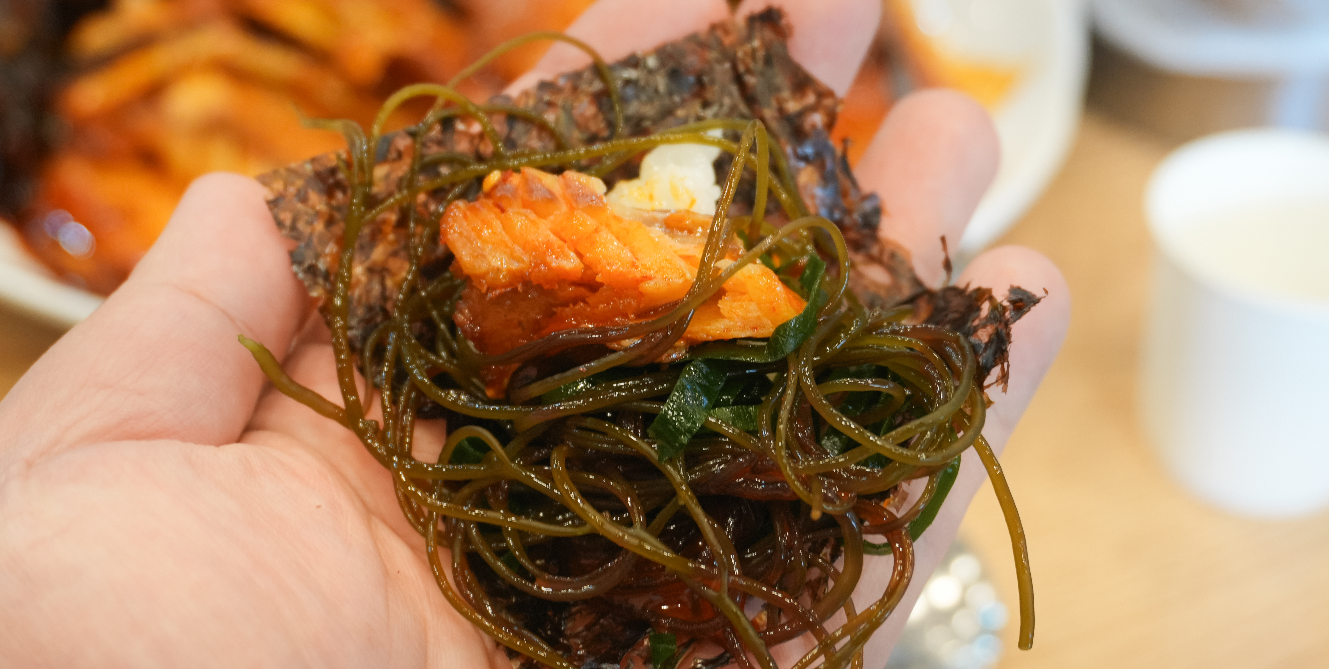 코다리조림 맛있게 먹는 방법이라고, 가게에 붙어있던 게시글이 있는데요. ➊ 따끈한 밥 또는 시래기, 콩나물을 김 위에 얹고, ➋ 코다리 살에 양념을 묻혀 같이 올립니다. ➌ 기호에 맞게 해조류를 추가하여 먹으면 된다고 합니다. 대략 위 사진과 같이 먹으면 된다고 보시면 되겠습니다.