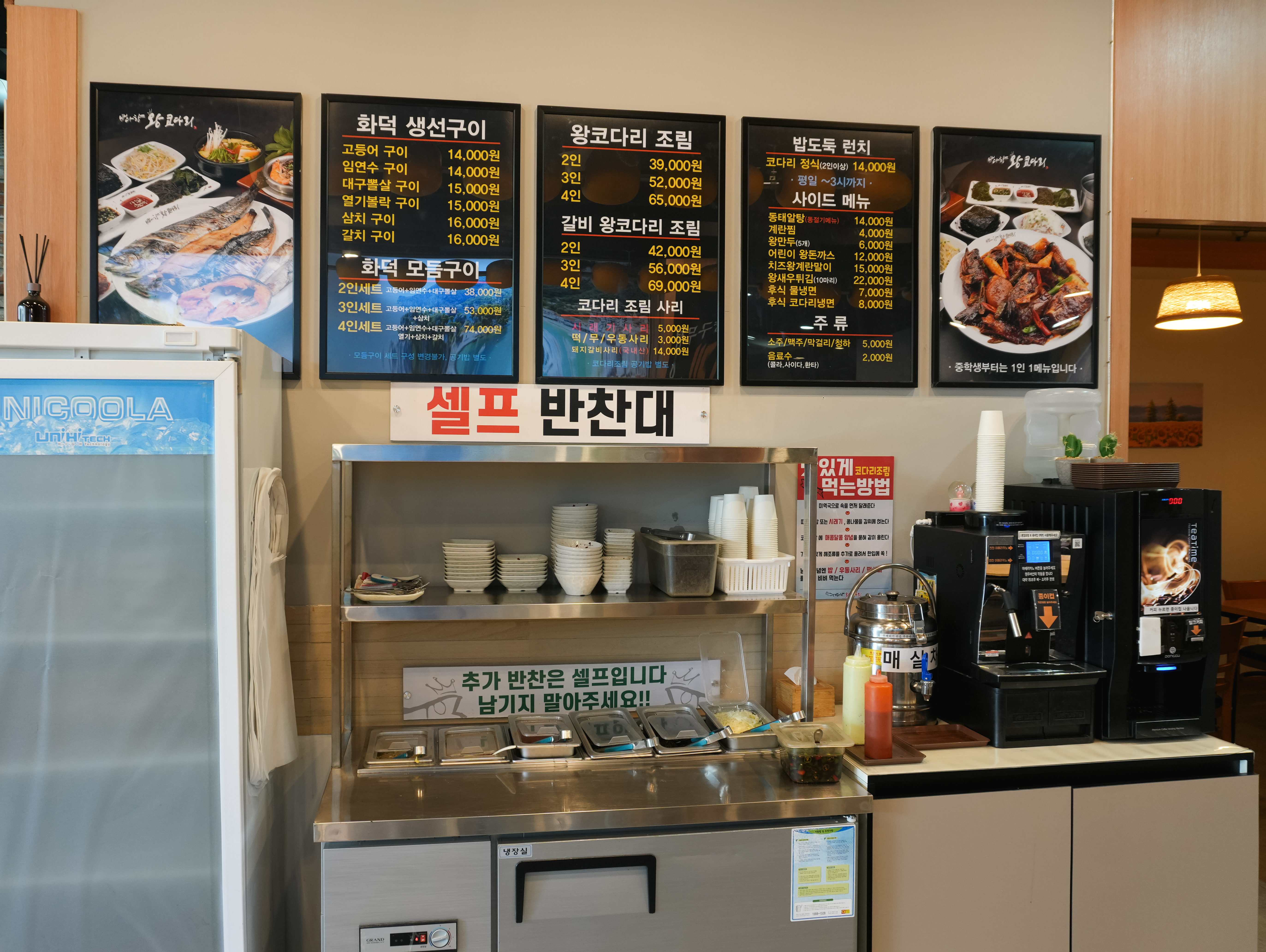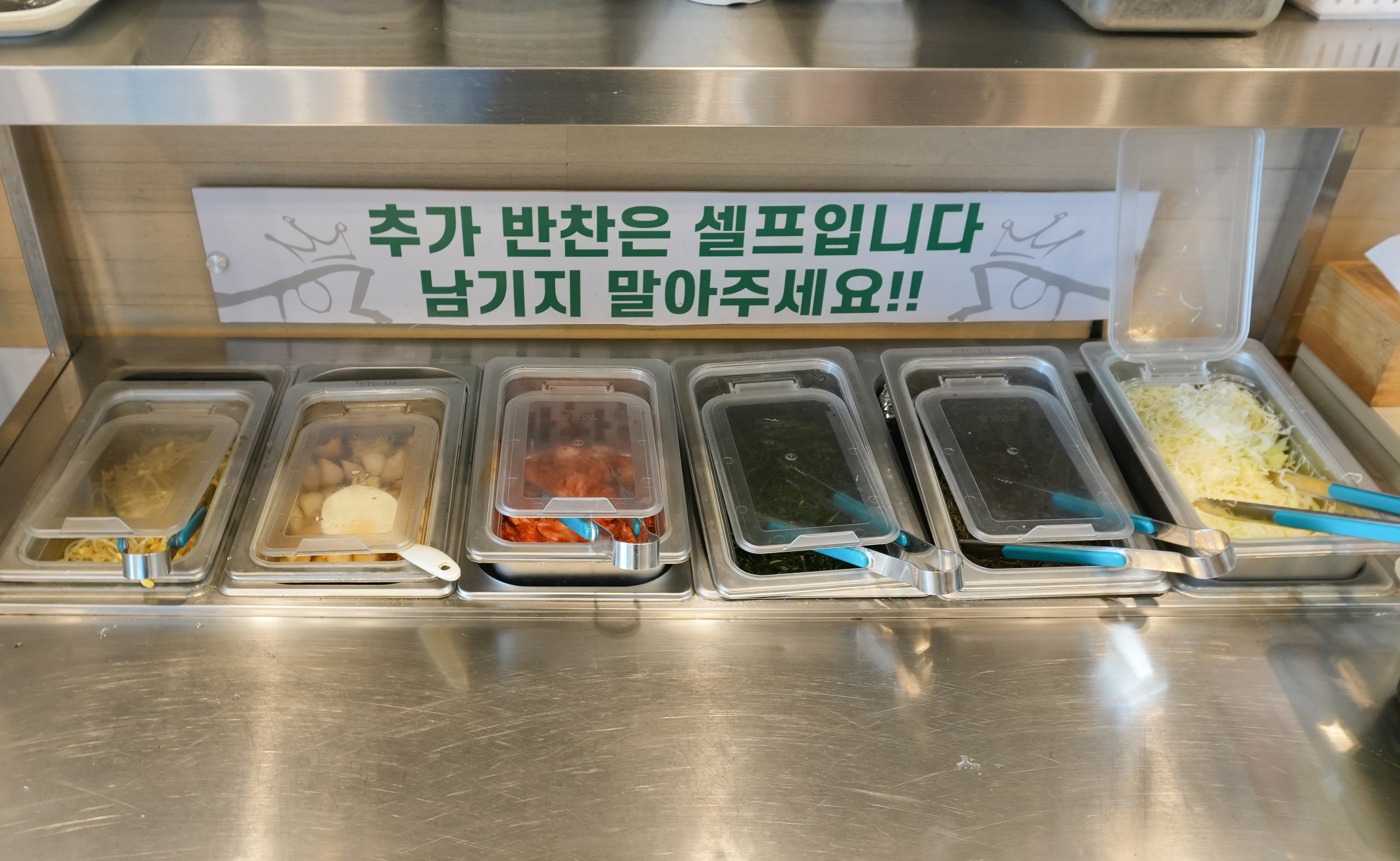 기본 반찬은 가게에서 직접 제공하고 있었으나, 추가 반찬은 직접 가져다 먹을 수 있도록 하고 있었습니다. 반찬 종류는 아래 바다향왕코다리의 메뉴소개를 통해 확인해 보겠습니다.