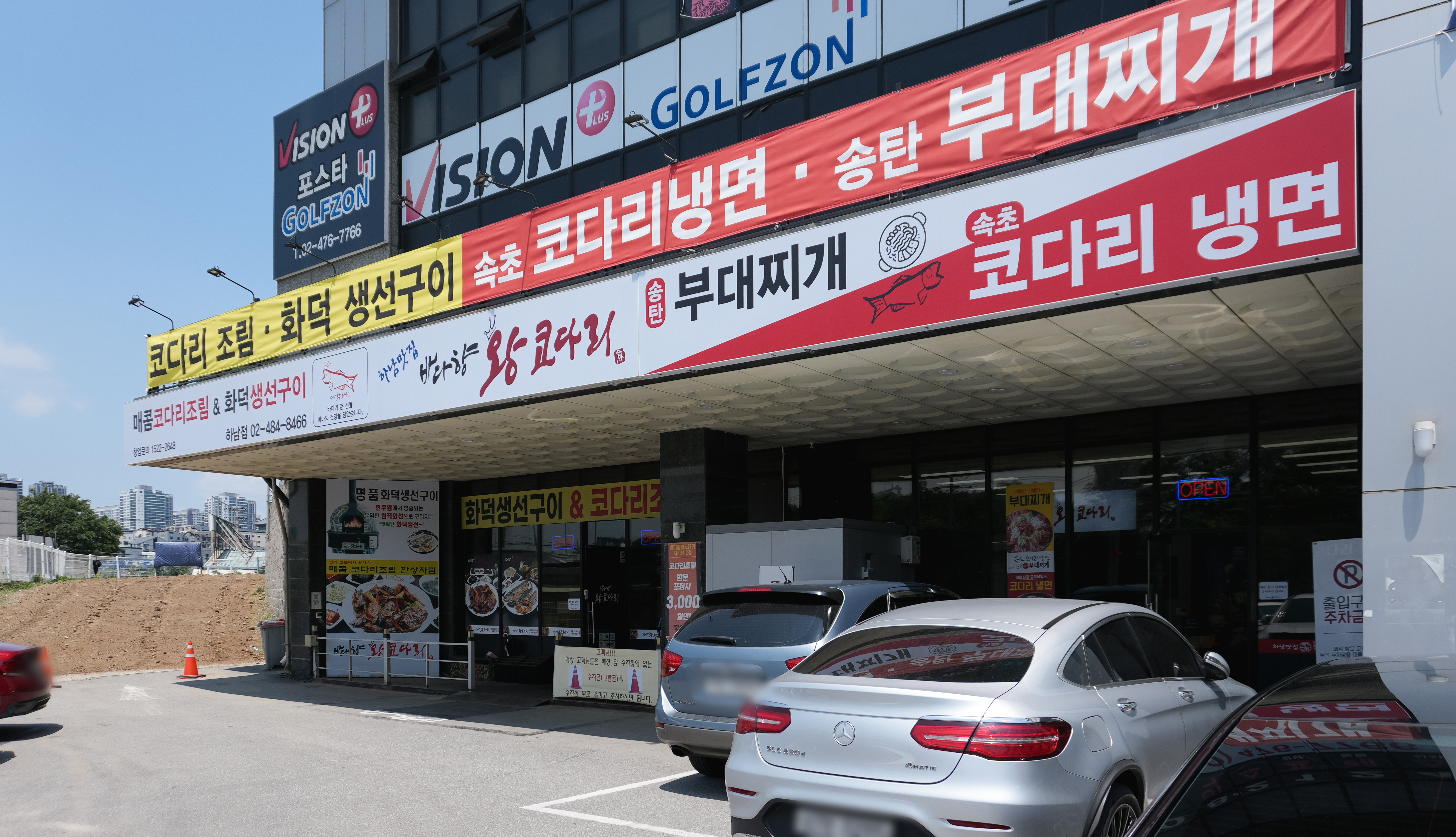 바다향왕코다리는 경기 하남시 감북동 378-3, 1층에 위치한 가게입니다. 가게에 손님이 많아서 그런지 주차장이 거의 만차여서, 하마터면 주차를 못 할 뻔했는데, 다행히 주차를 도와주는 직원이 있어서 편하게 주차를 할 수 있었습니다.