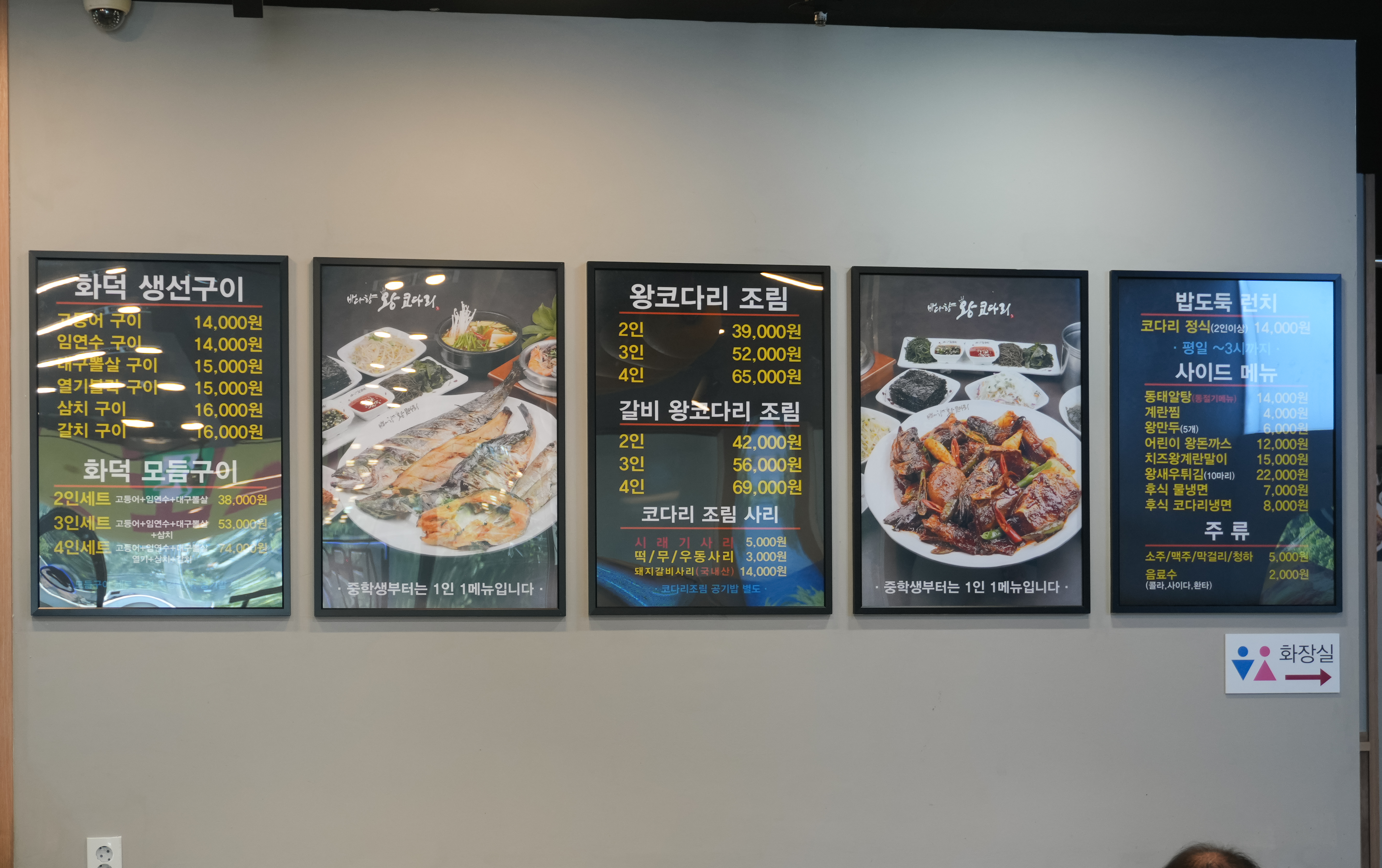 바다향왕코다리의 휴무일은 없었고, 영업시간은 11:00~21:00 이며, 월요일만 11:00~15:00 까지 영업하고 있었습니다. 가게는 꽤 널찍했고, 분위기도 깔끔했습니다.